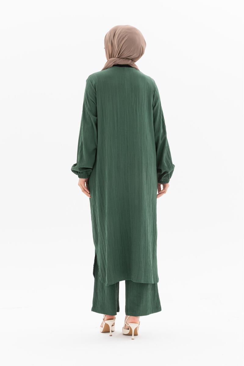 - Ürünümüz bürümcük kumaş olup yuvarlak yaka gizli fermuarlıdır. Bilek kısmı lastikli olup cep detayı bulunmaktadır. Boy uzunluğu hac ve umre ziyaretleri için uygundur. Pantolon beli lastiklidir. Hava alabilen kumaş özelliğine sahip olan takımımız hac umre ziyaretlerinizde size rahat kullanım sağlar. Tercihen günlük kullanımada uygundur.