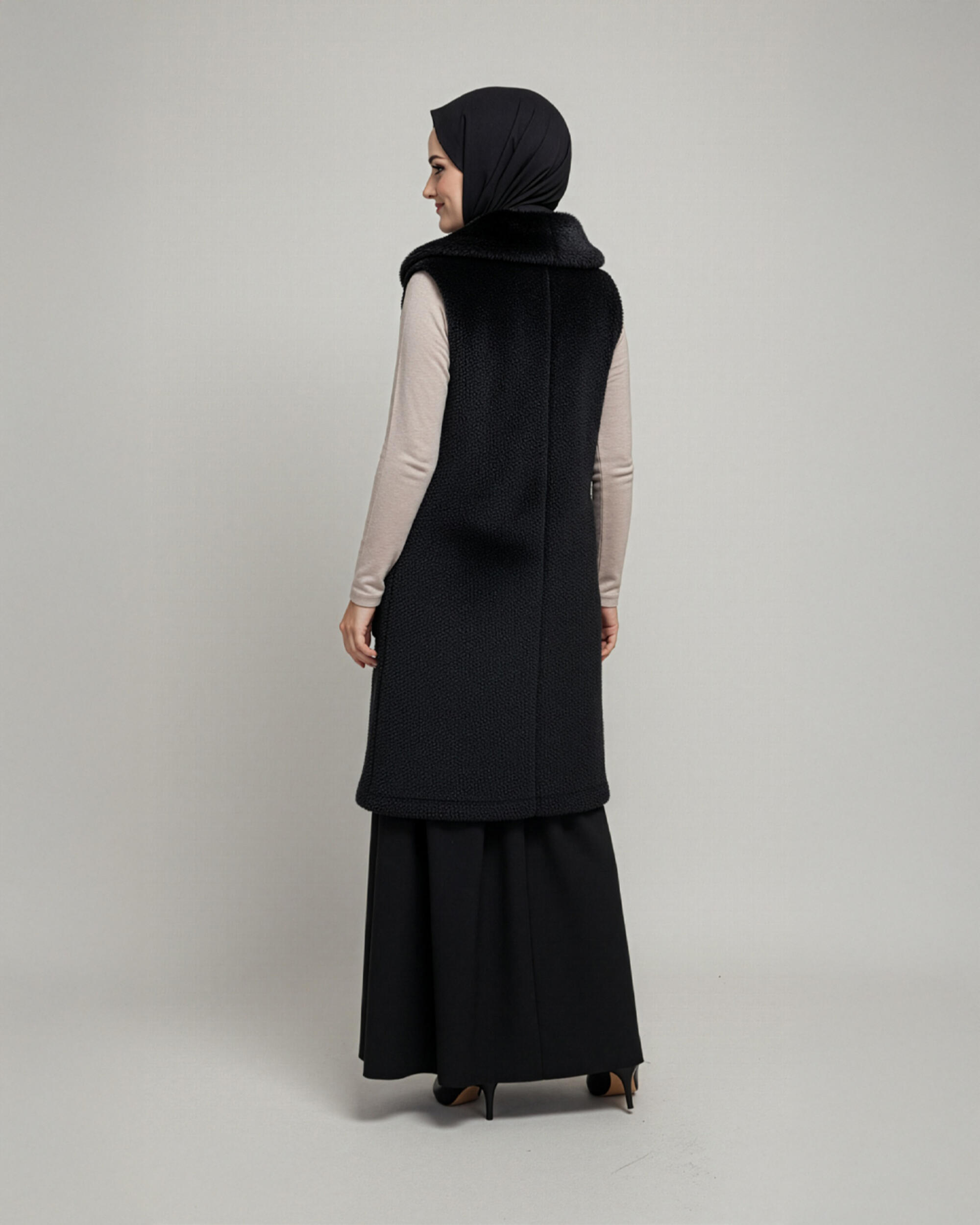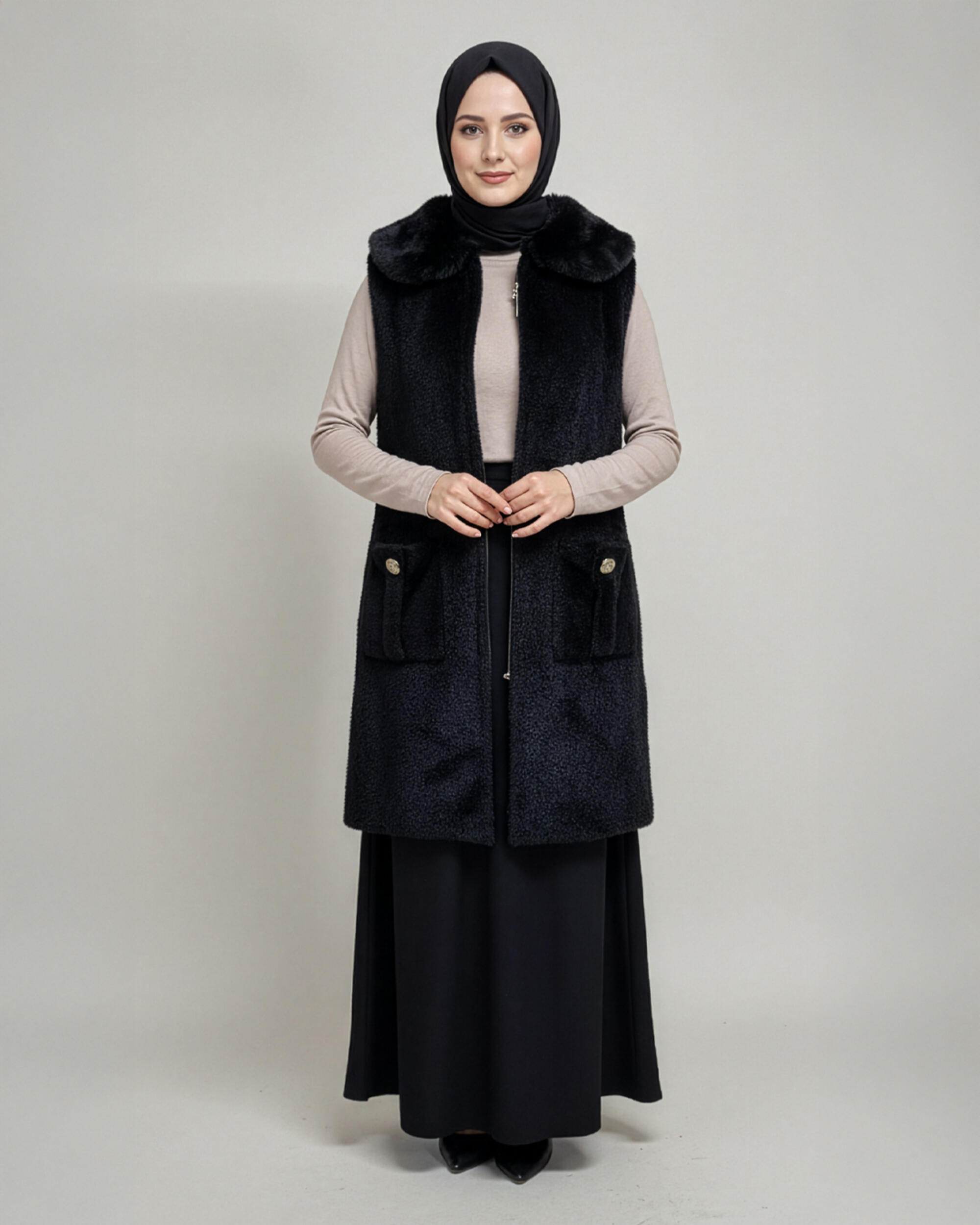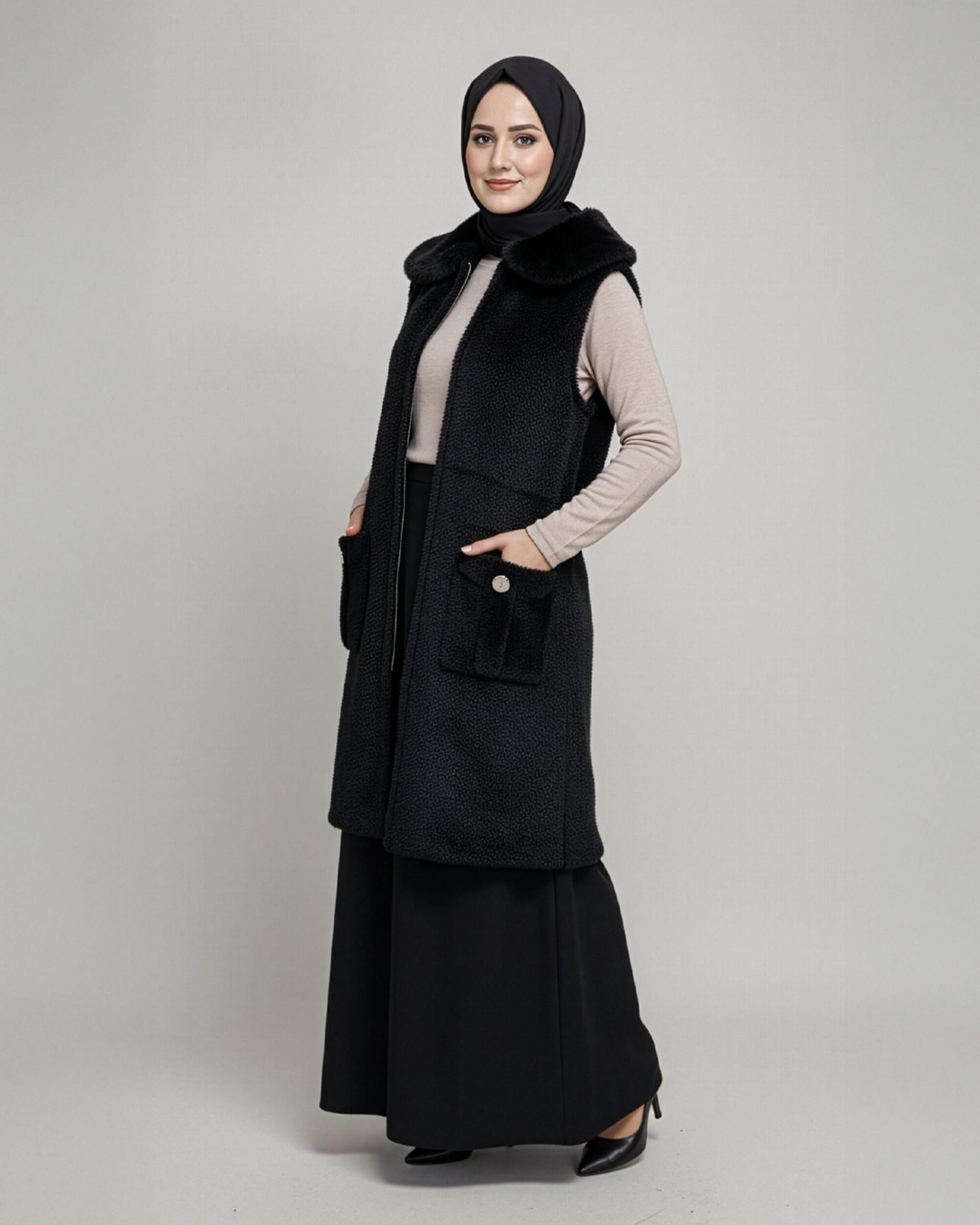 CEPLİ KÜRK YAKALI ANGORA YELEK