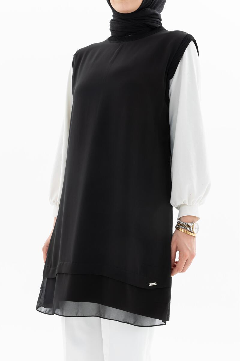 - Bisiklet yaka tasarımı ile zarif bir boyun hattı oluştururken, rahat hareket etme özgürlüğü tanır