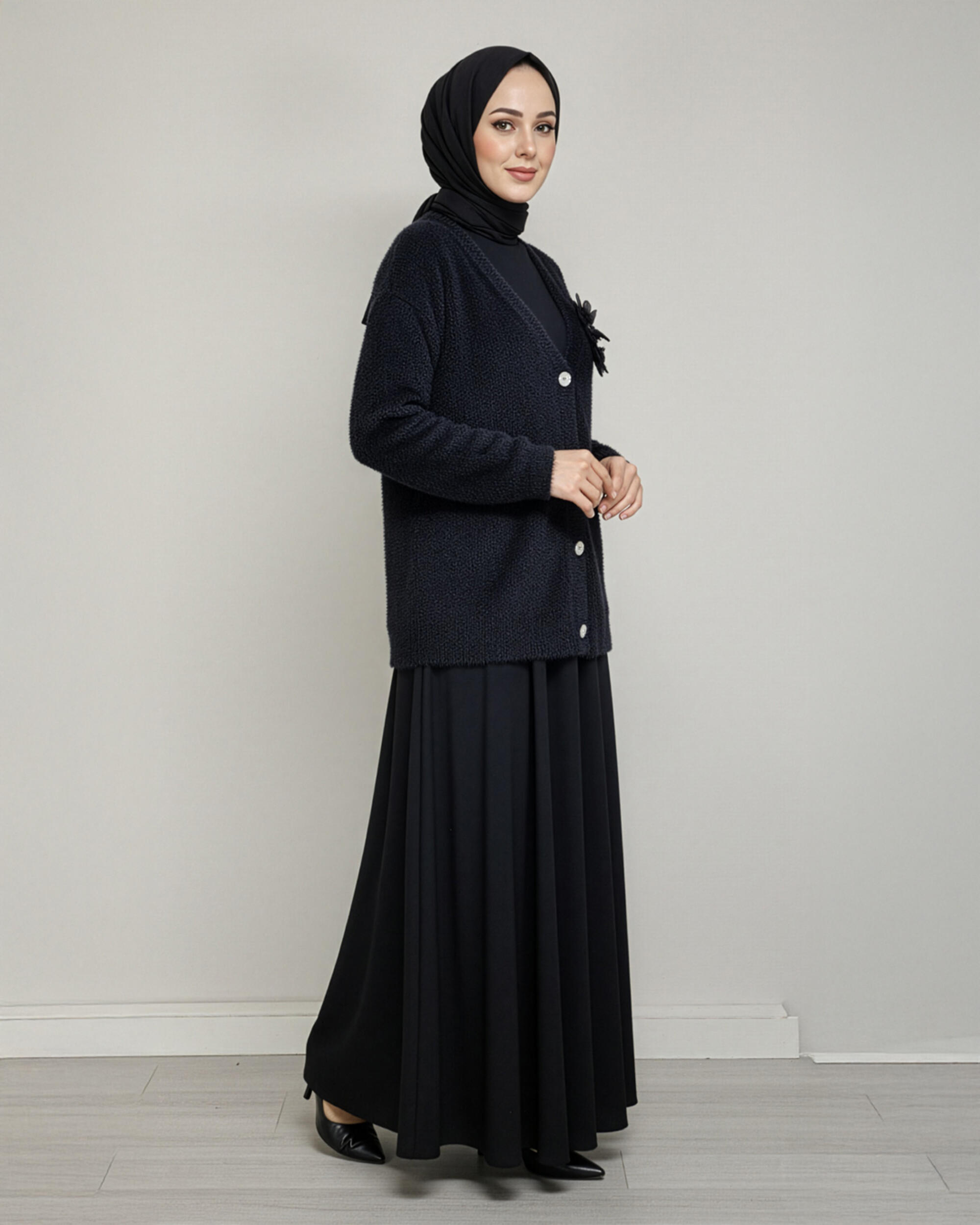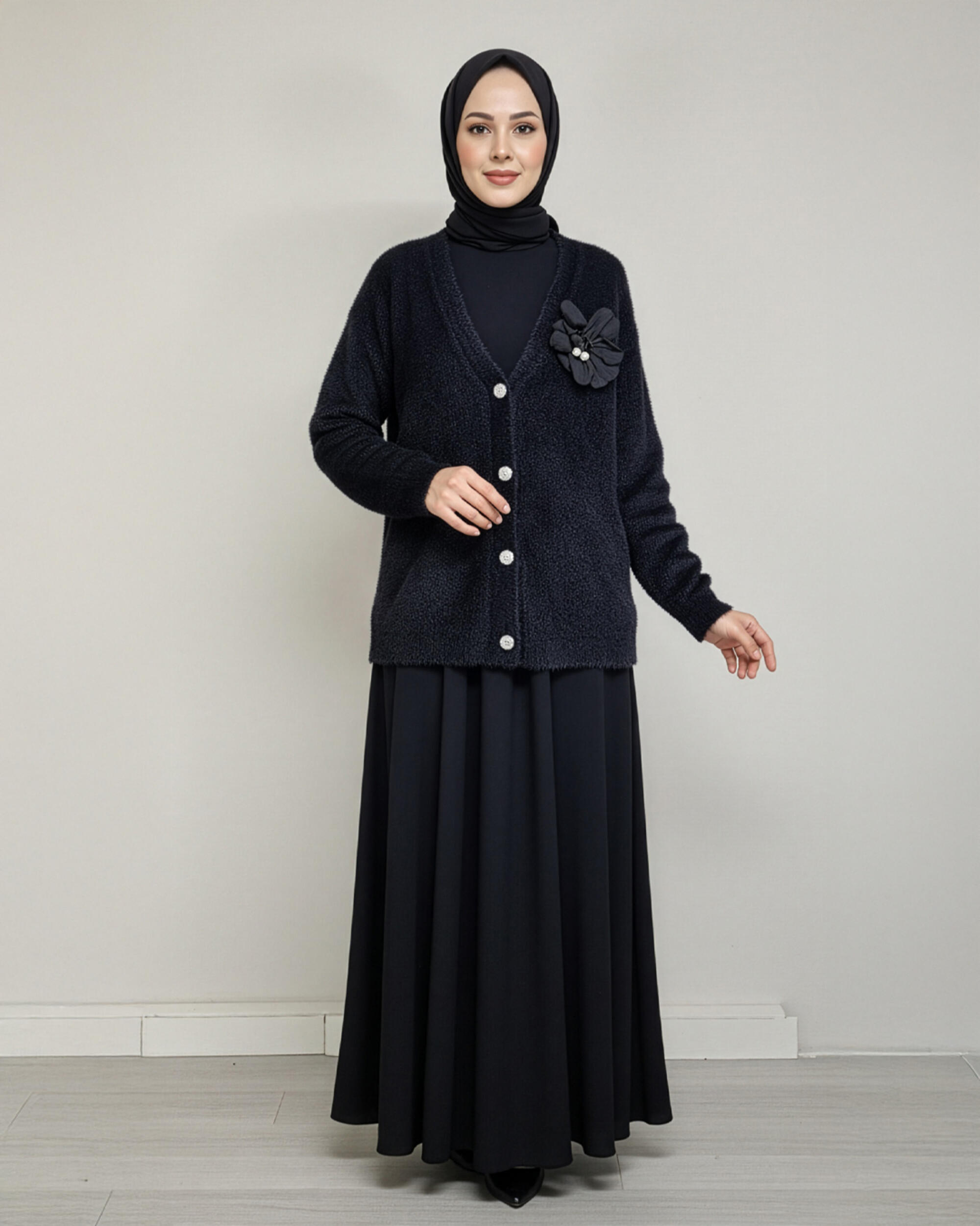 GÜL DETAYLI DÜĞMELİ ANGORA HIRKA