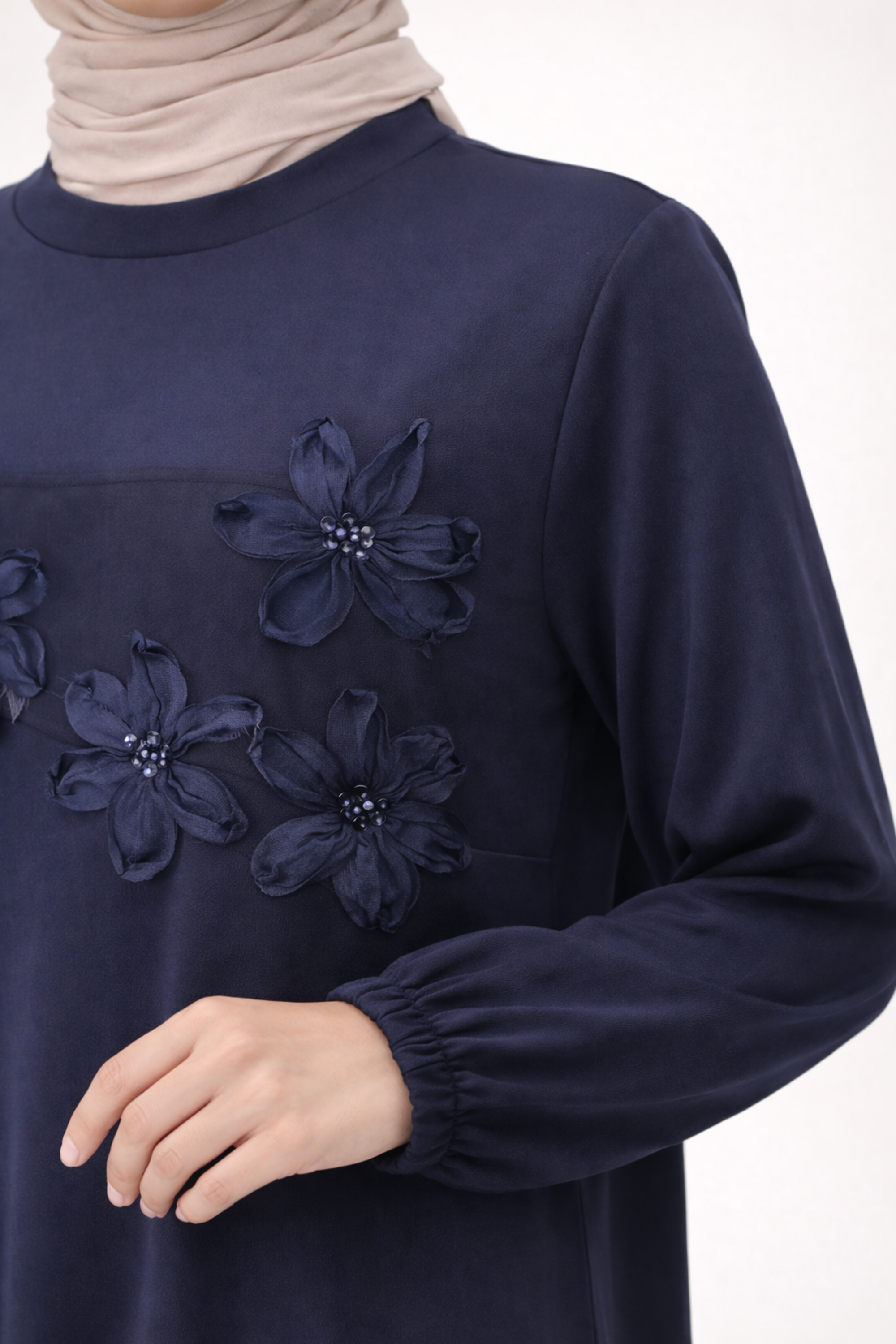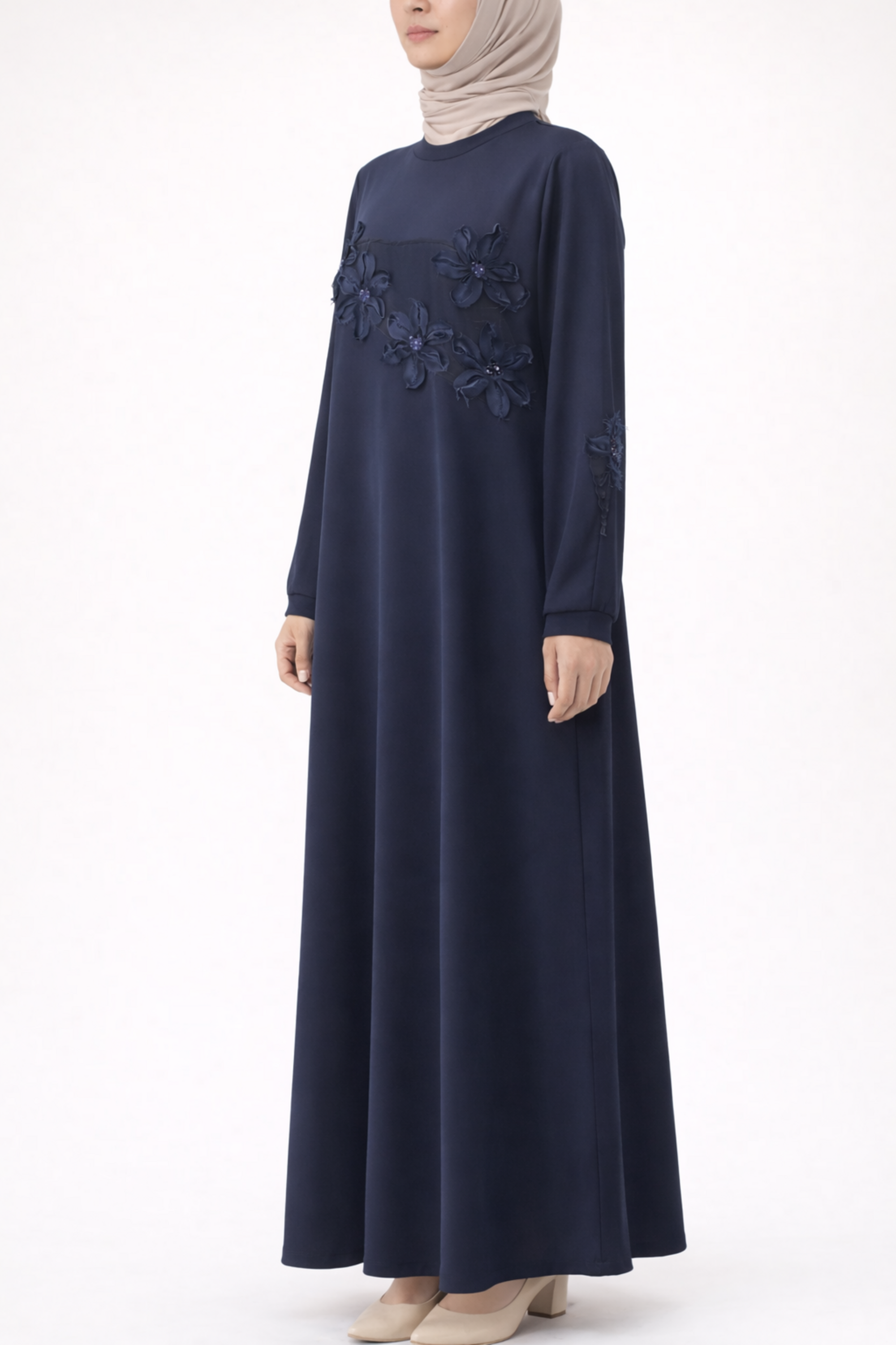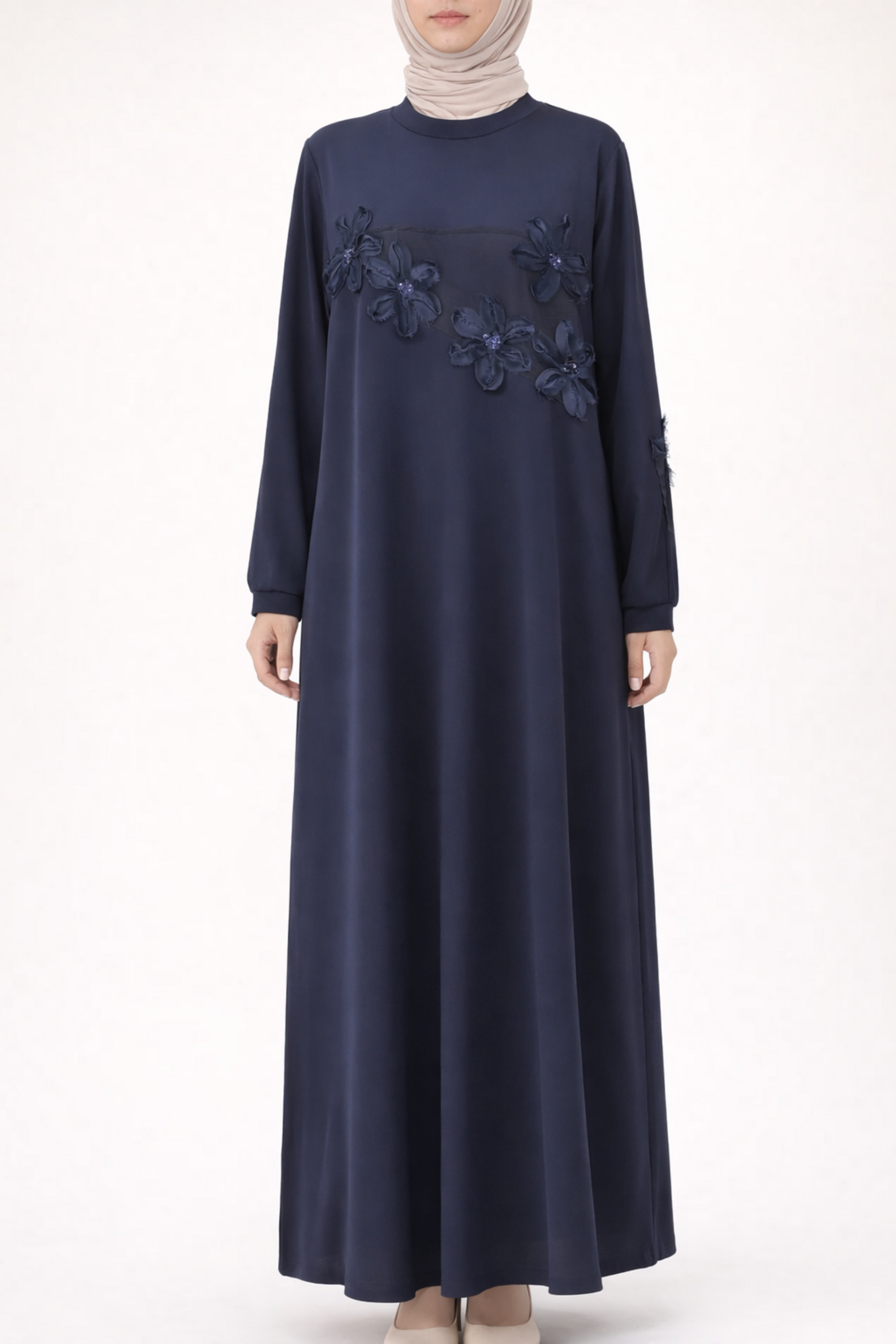 *LAZER KESİM ÇİÇEKLİ ELBİSE