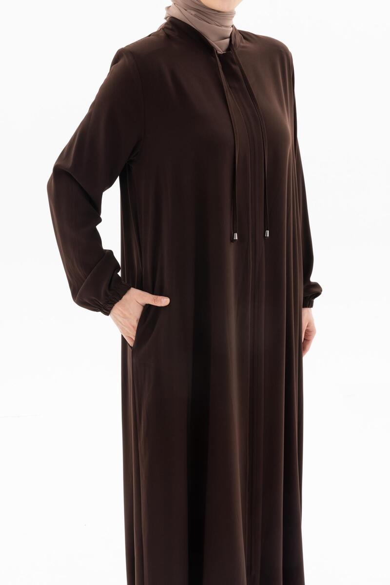 - Siyah rengin asaletini yansıtan bu ferace, her kombininize kolayca uyum sağlar.