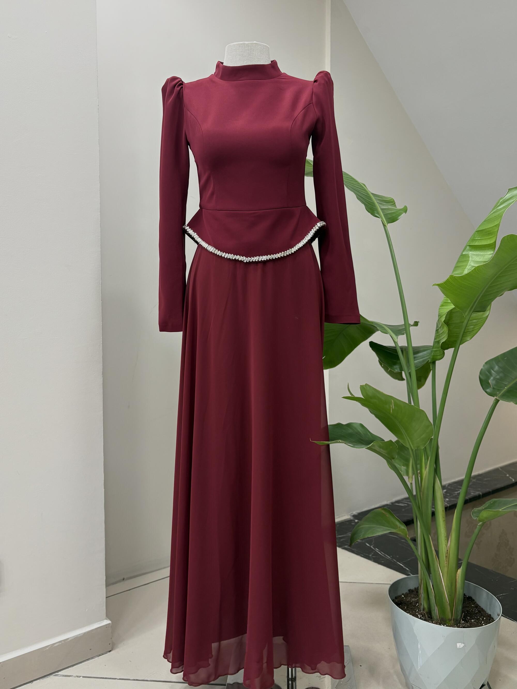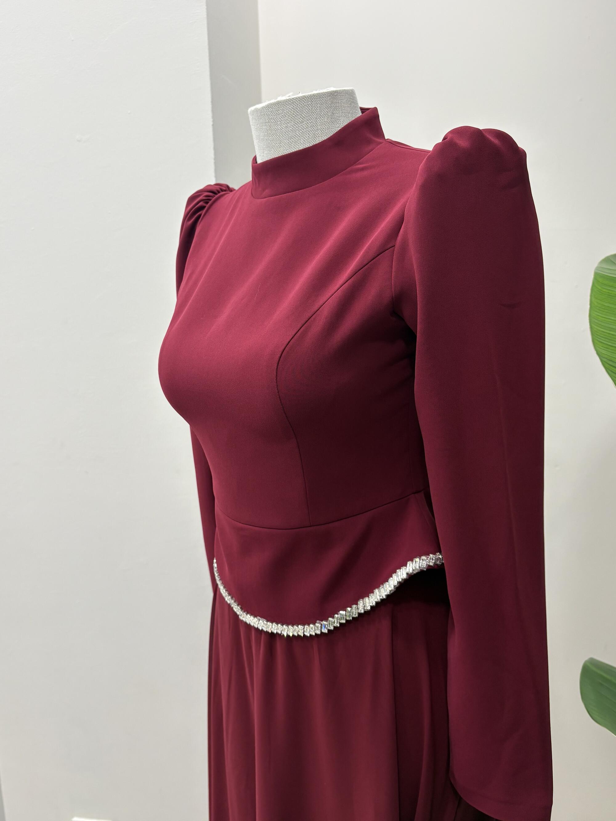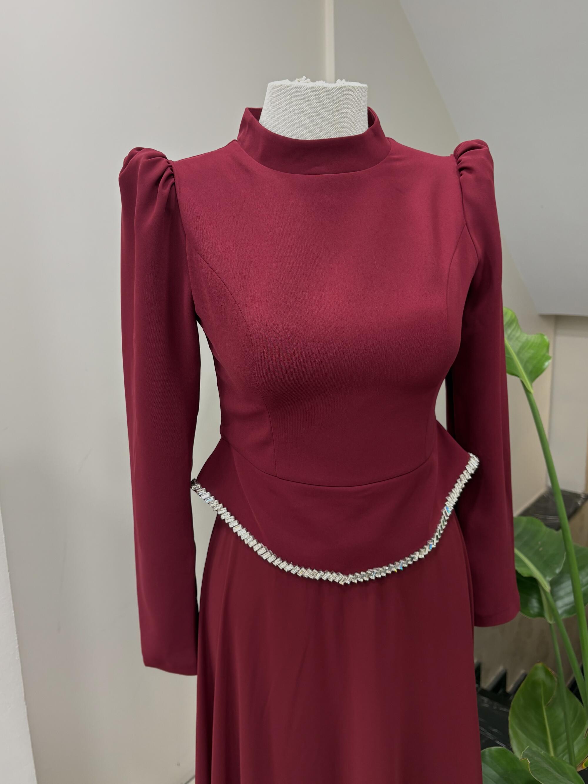 BELDEN OTURTMALI TAŞ DETAYLI NAZ ELBİSE