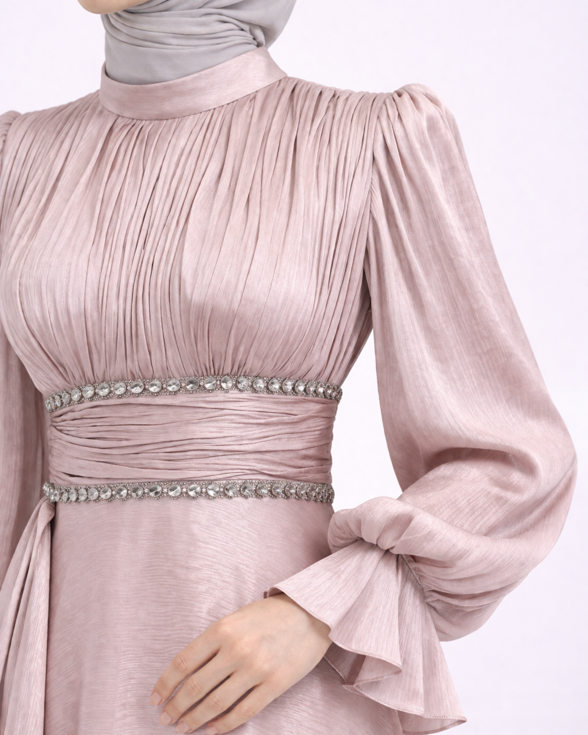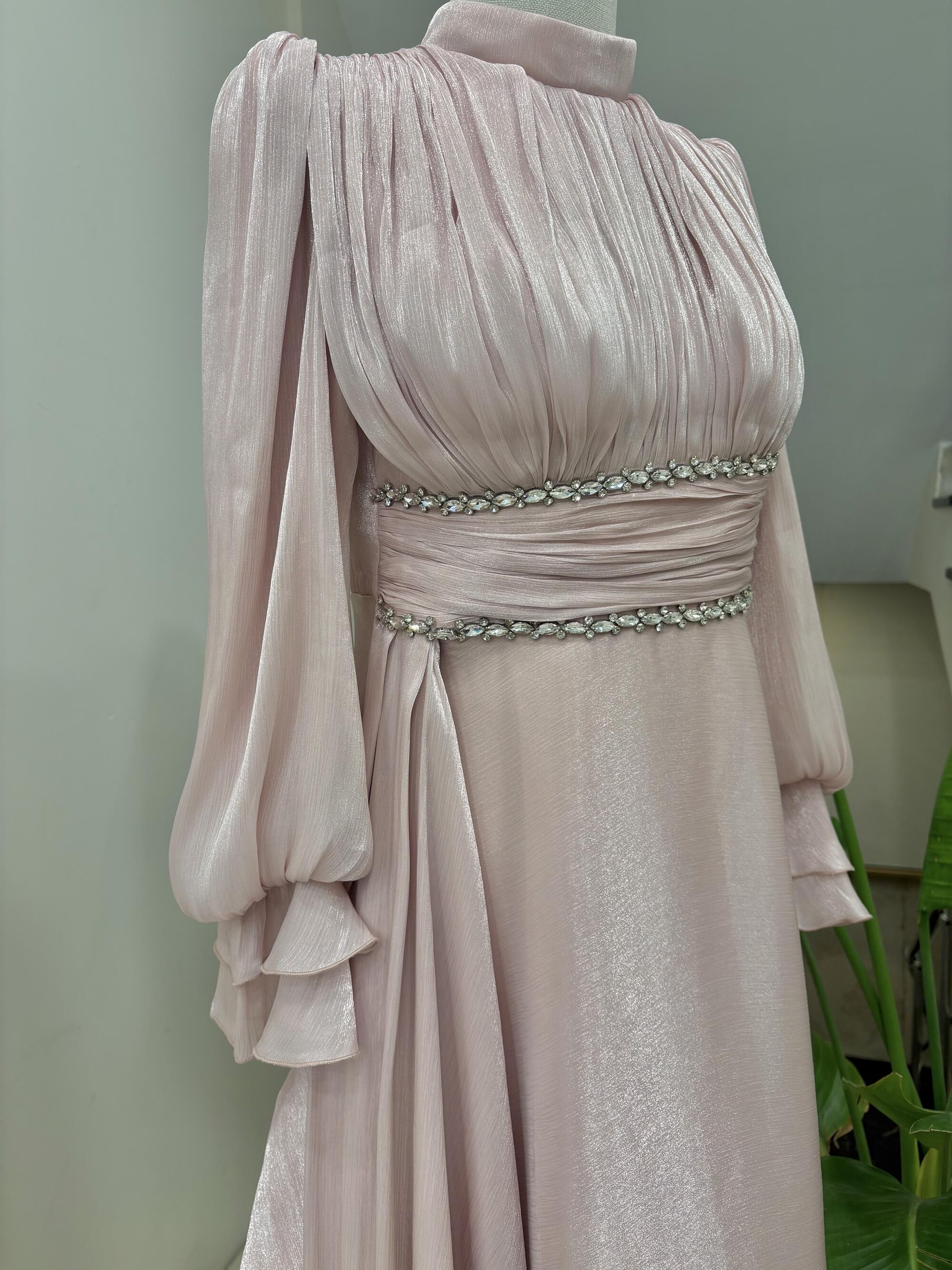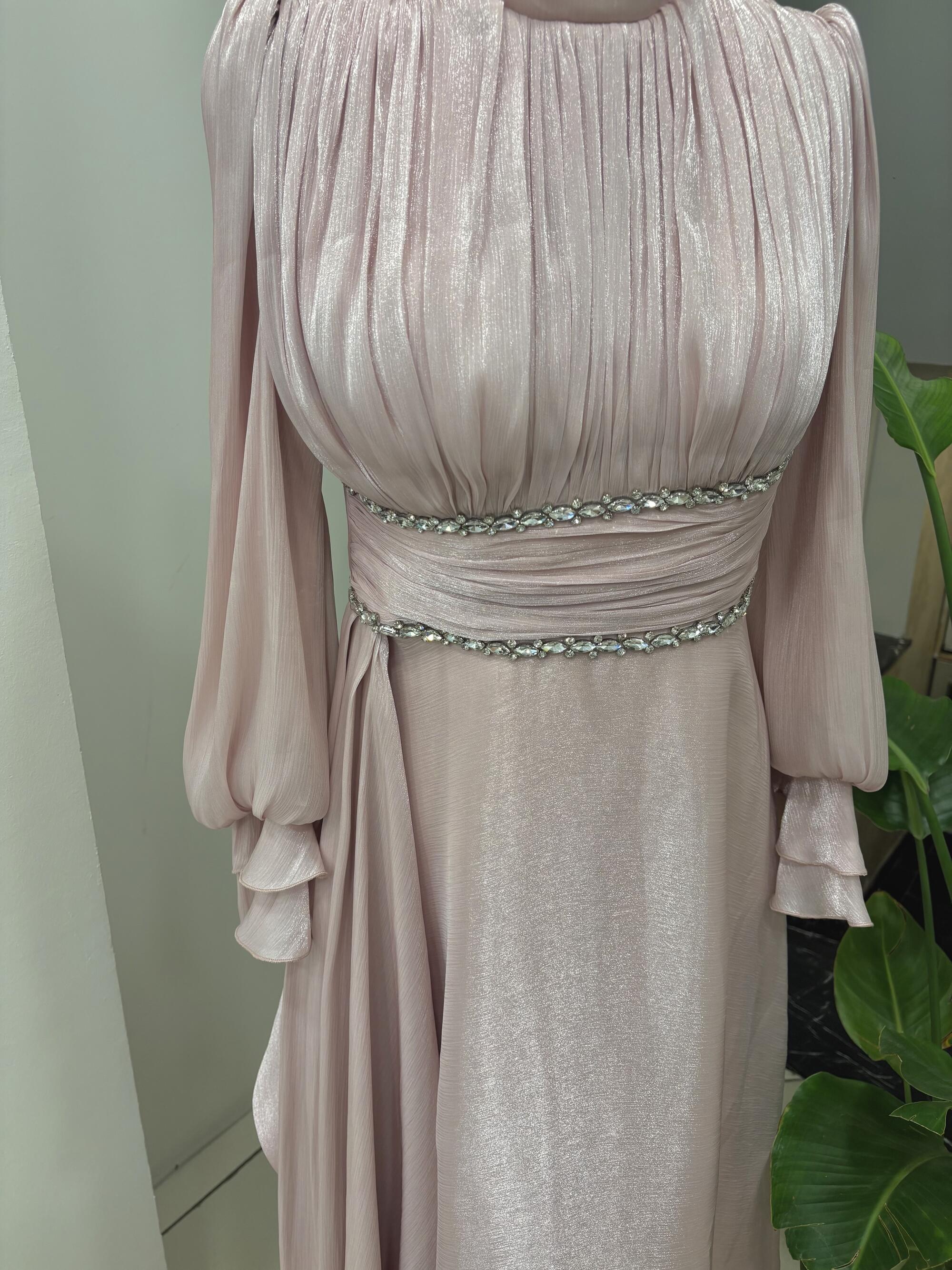 BELİ TAŞLI VOLANLI ALİZE ELBİSE