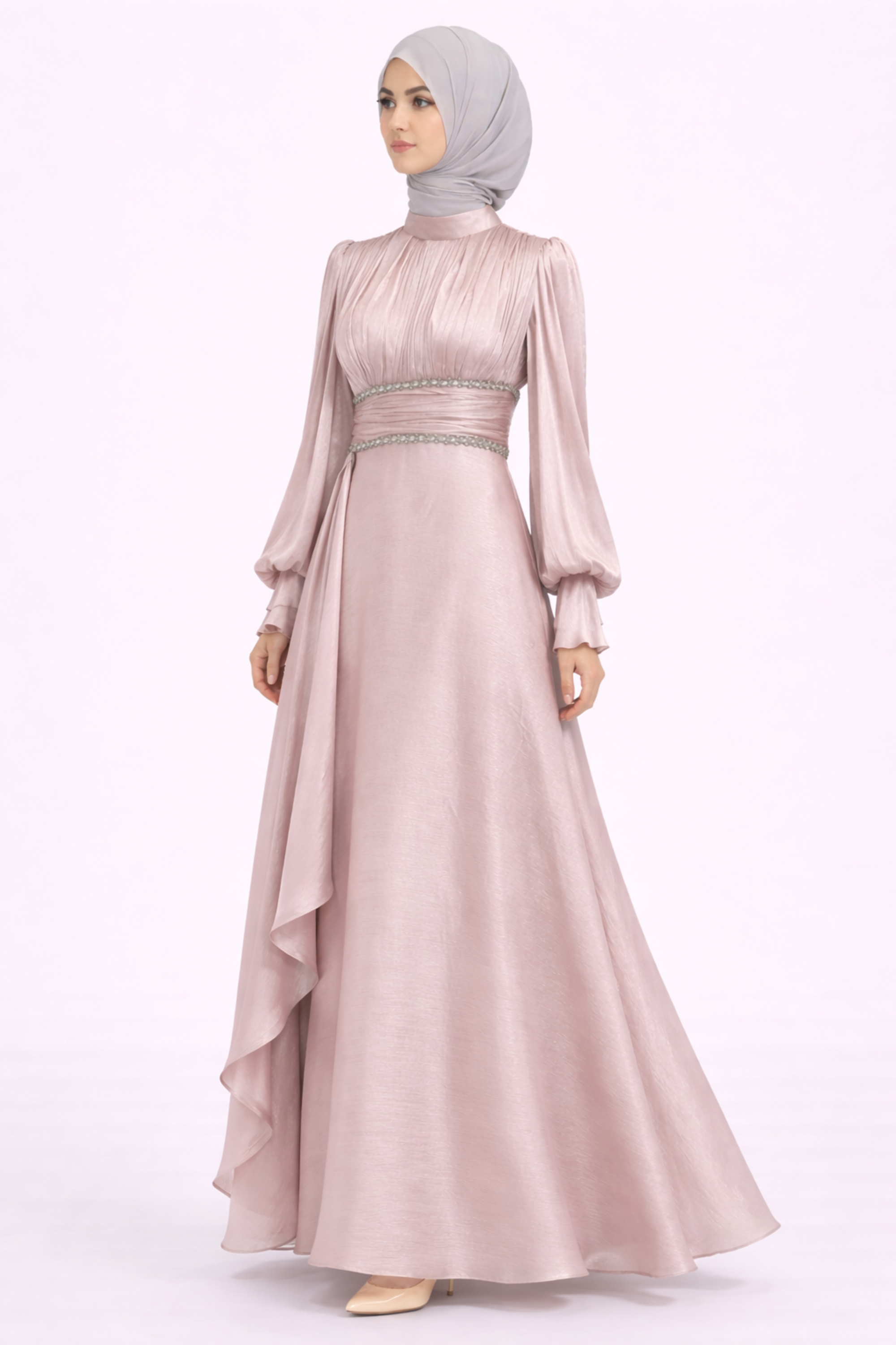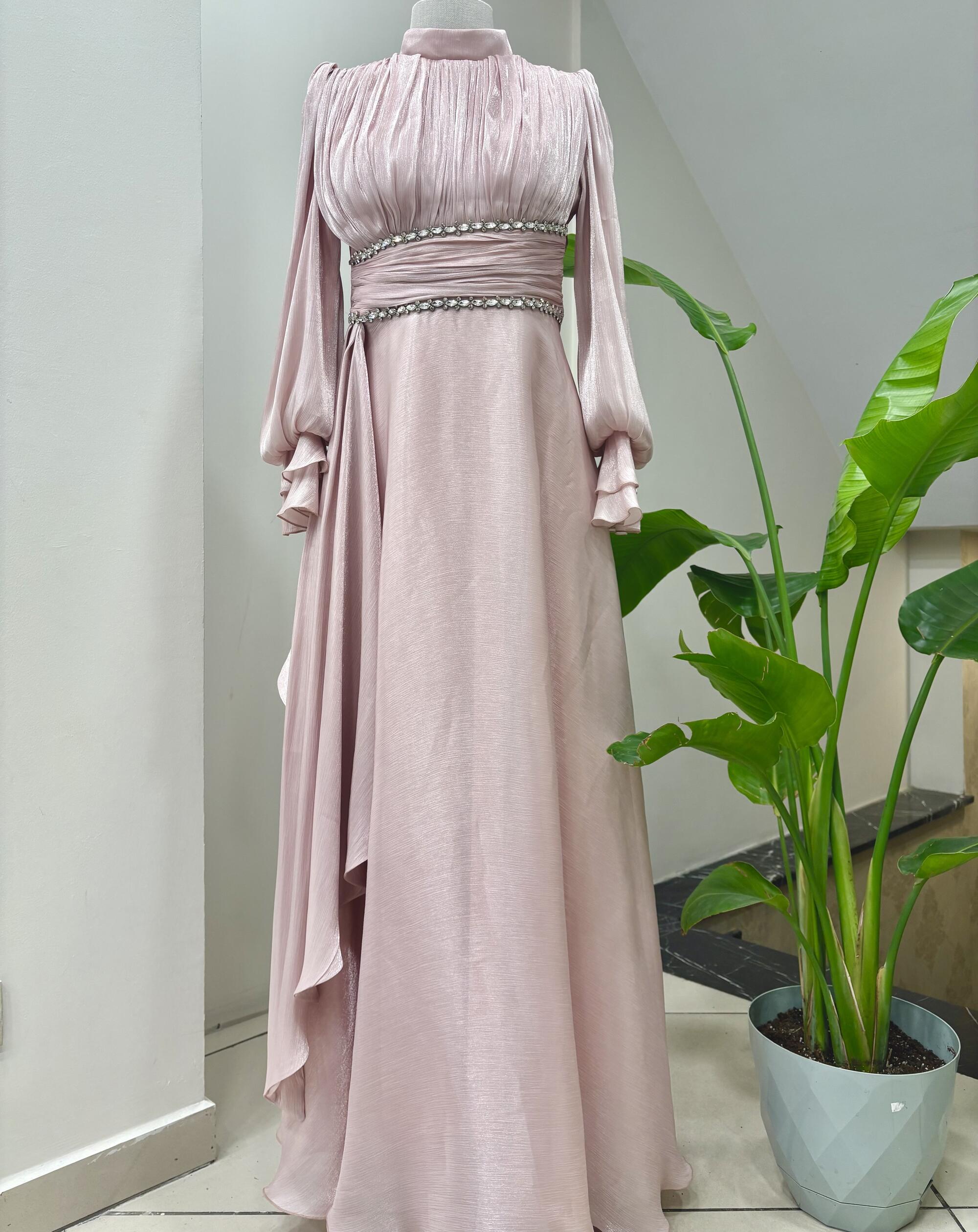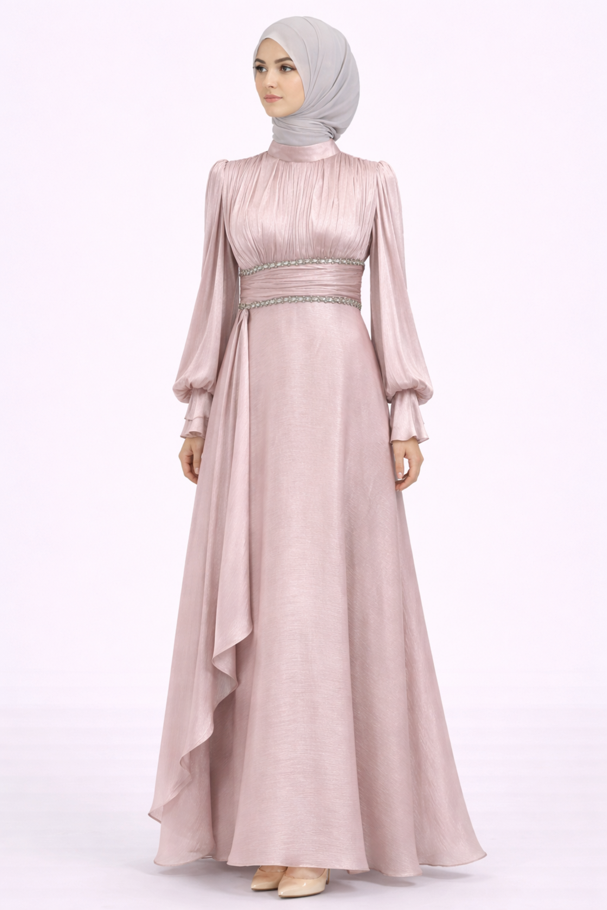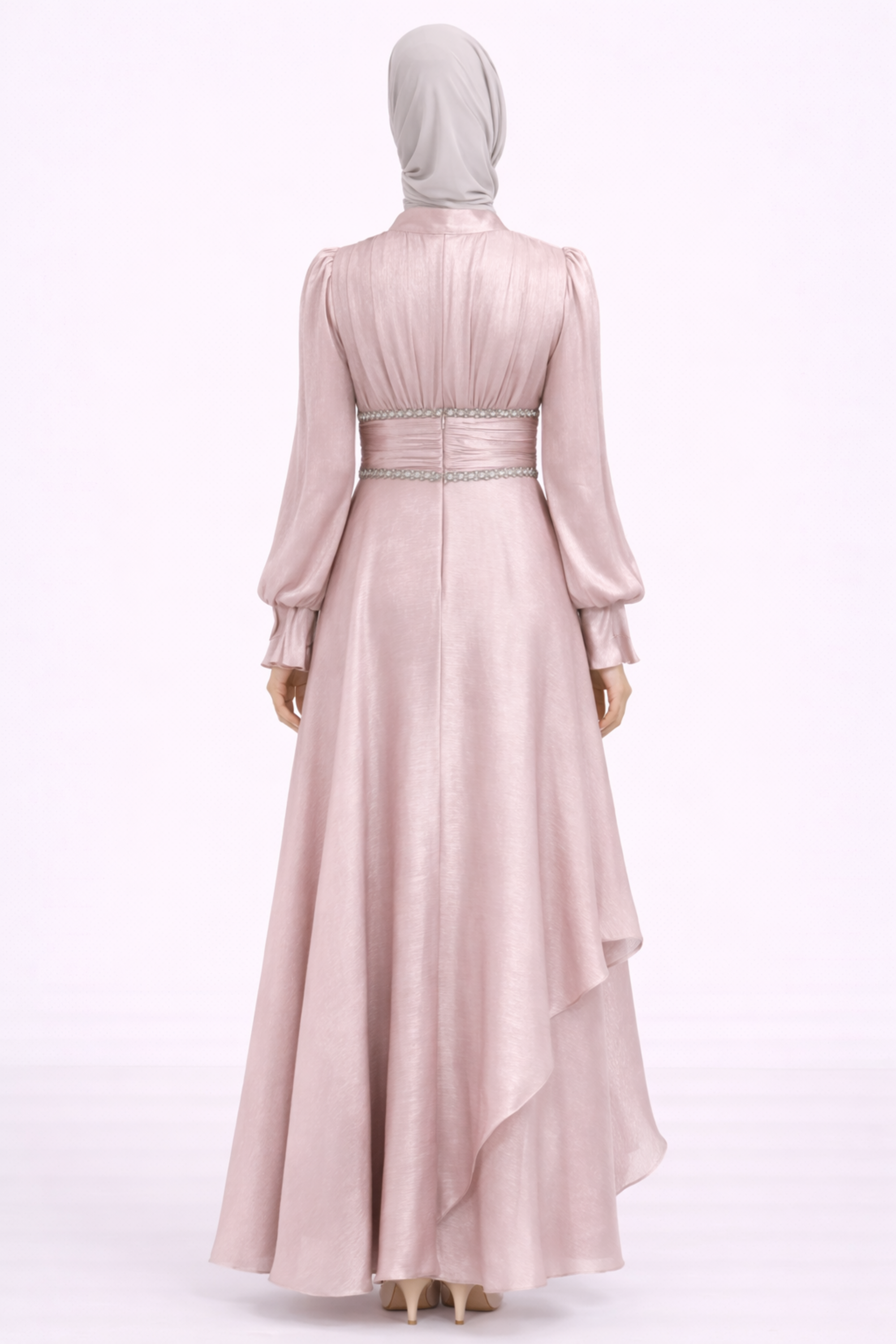 BELİ TAŞLI VOLANLI ALİZE ELBİSE