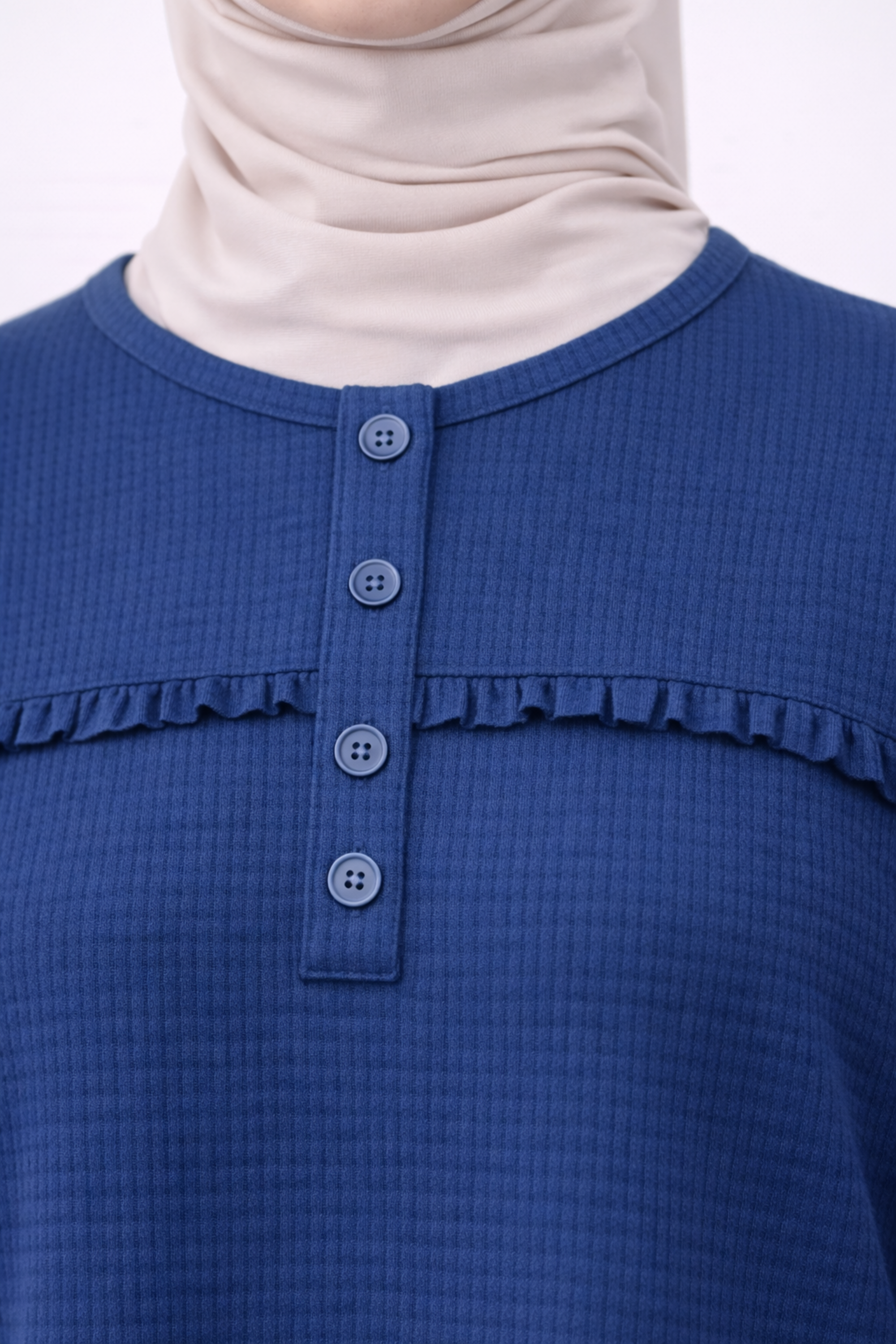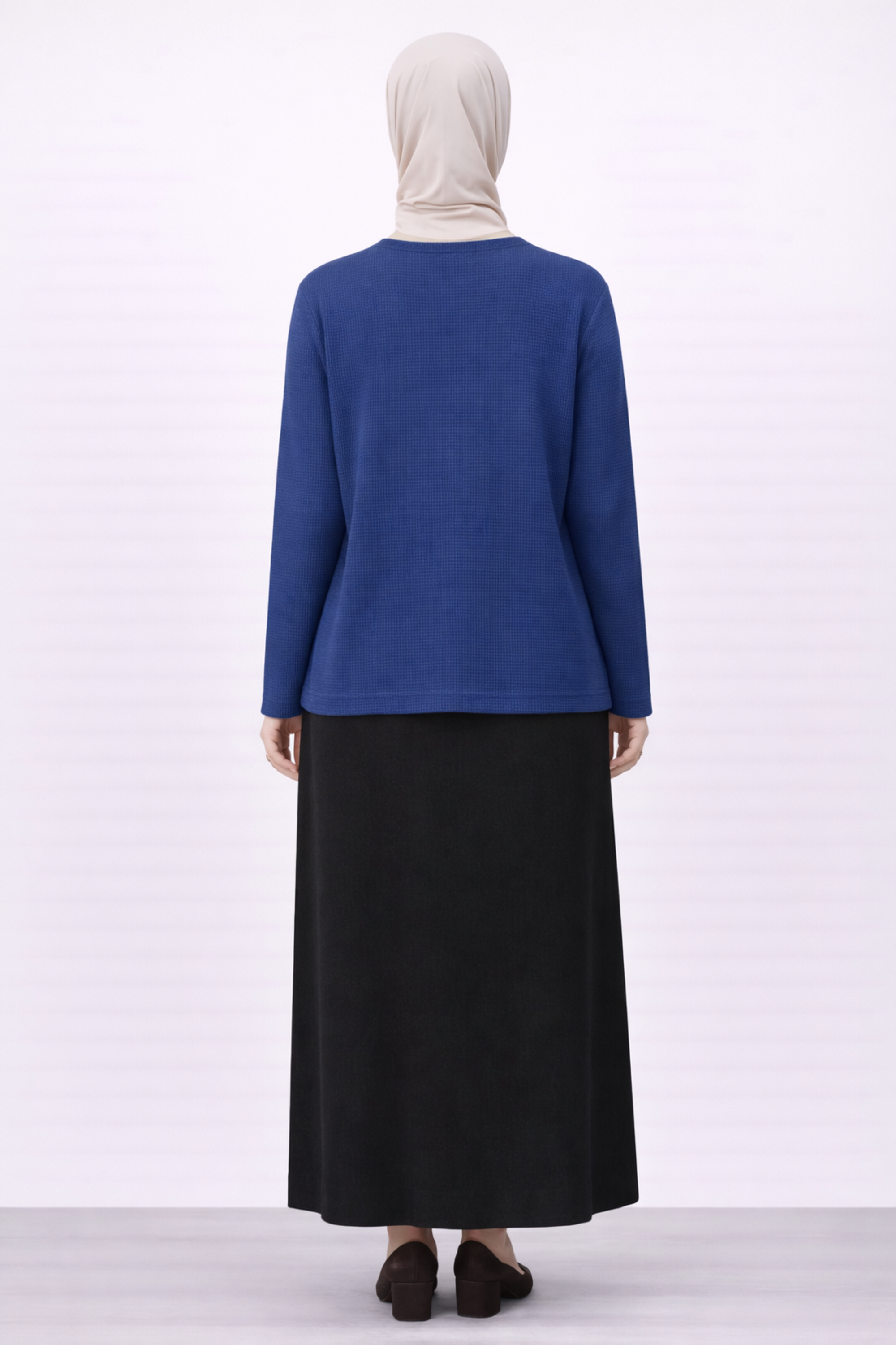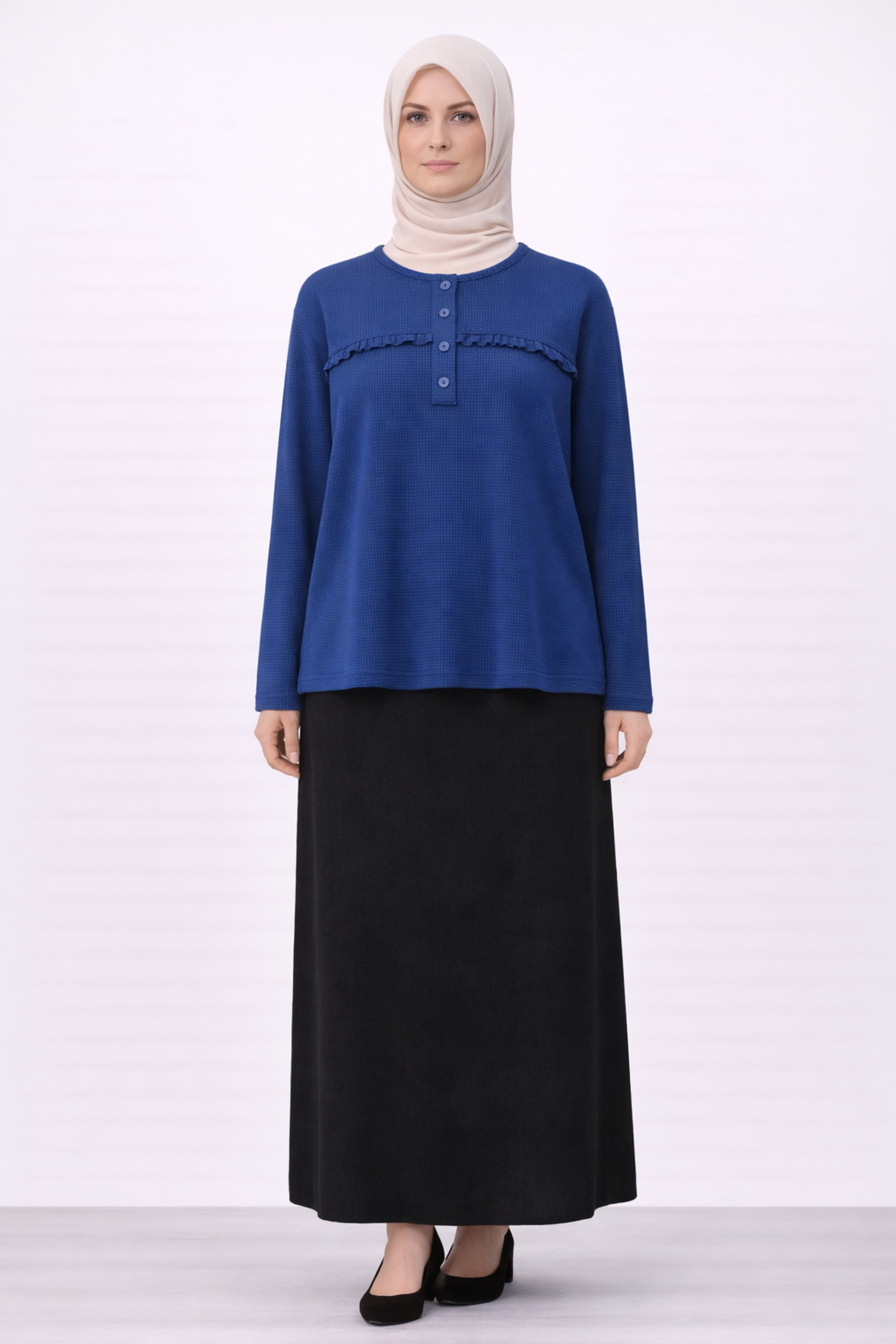 BİSİKLET YAKA FİTİLLİ İŞLEMELİ BLUZ
