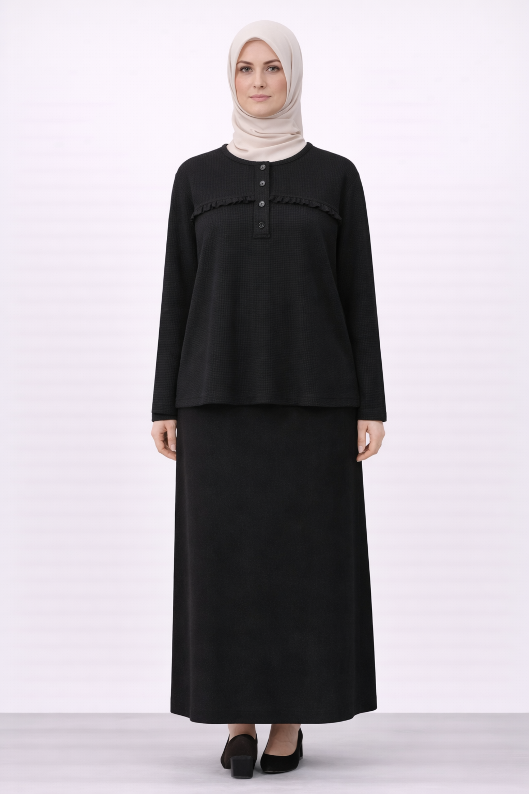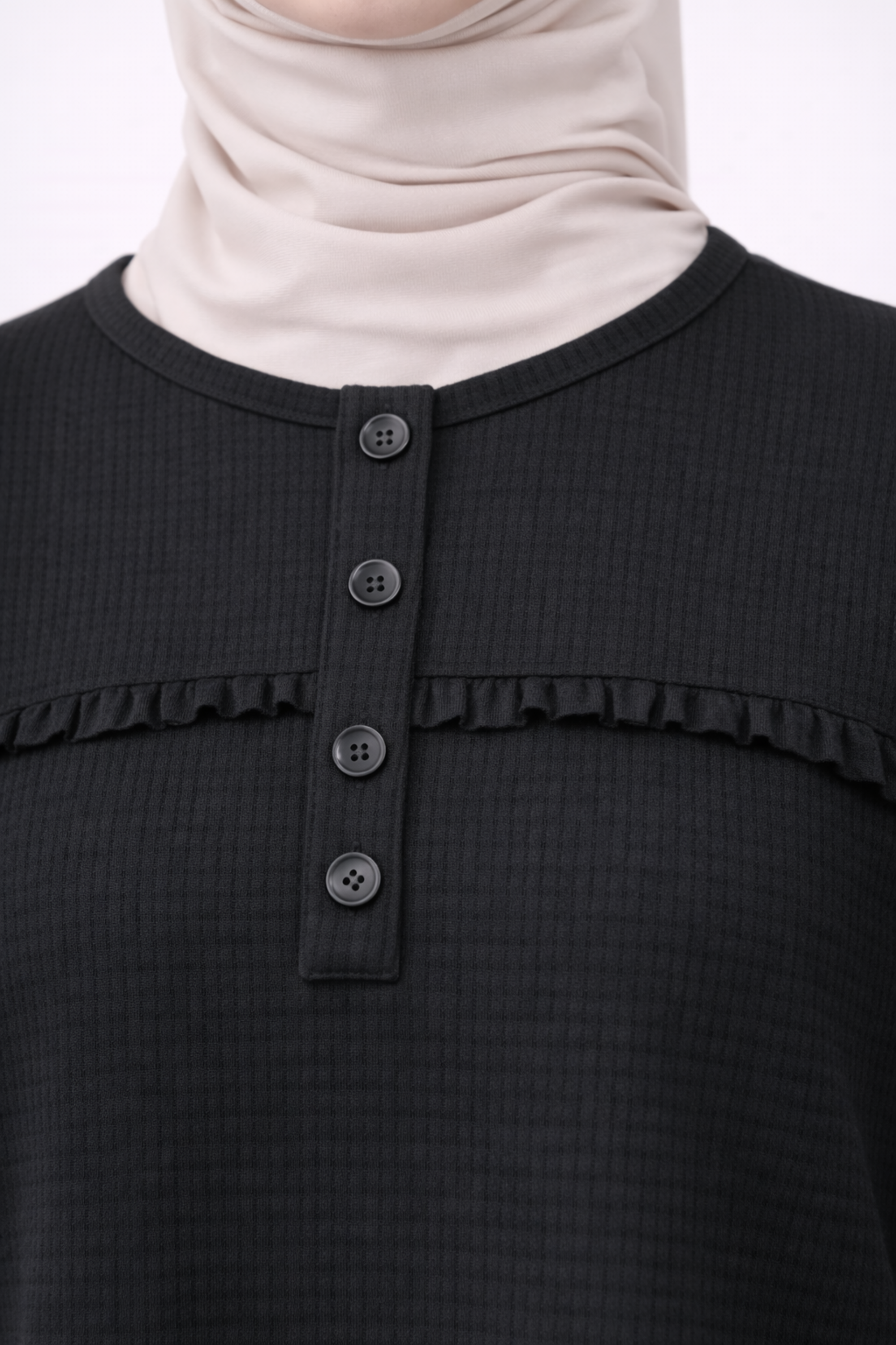 BİSİKLET YAKA FİTİLLİ İŞLEMELİ BLUZ