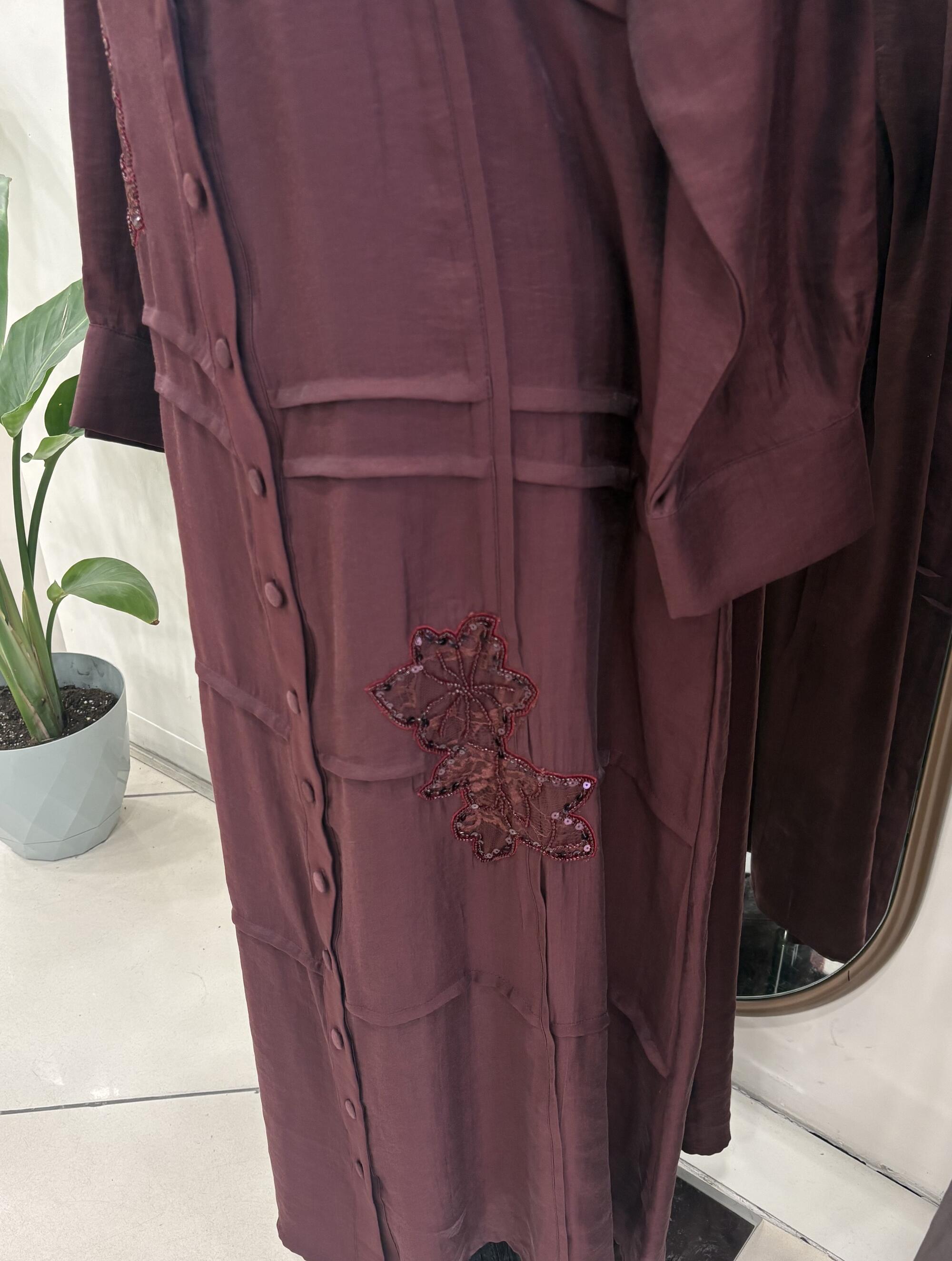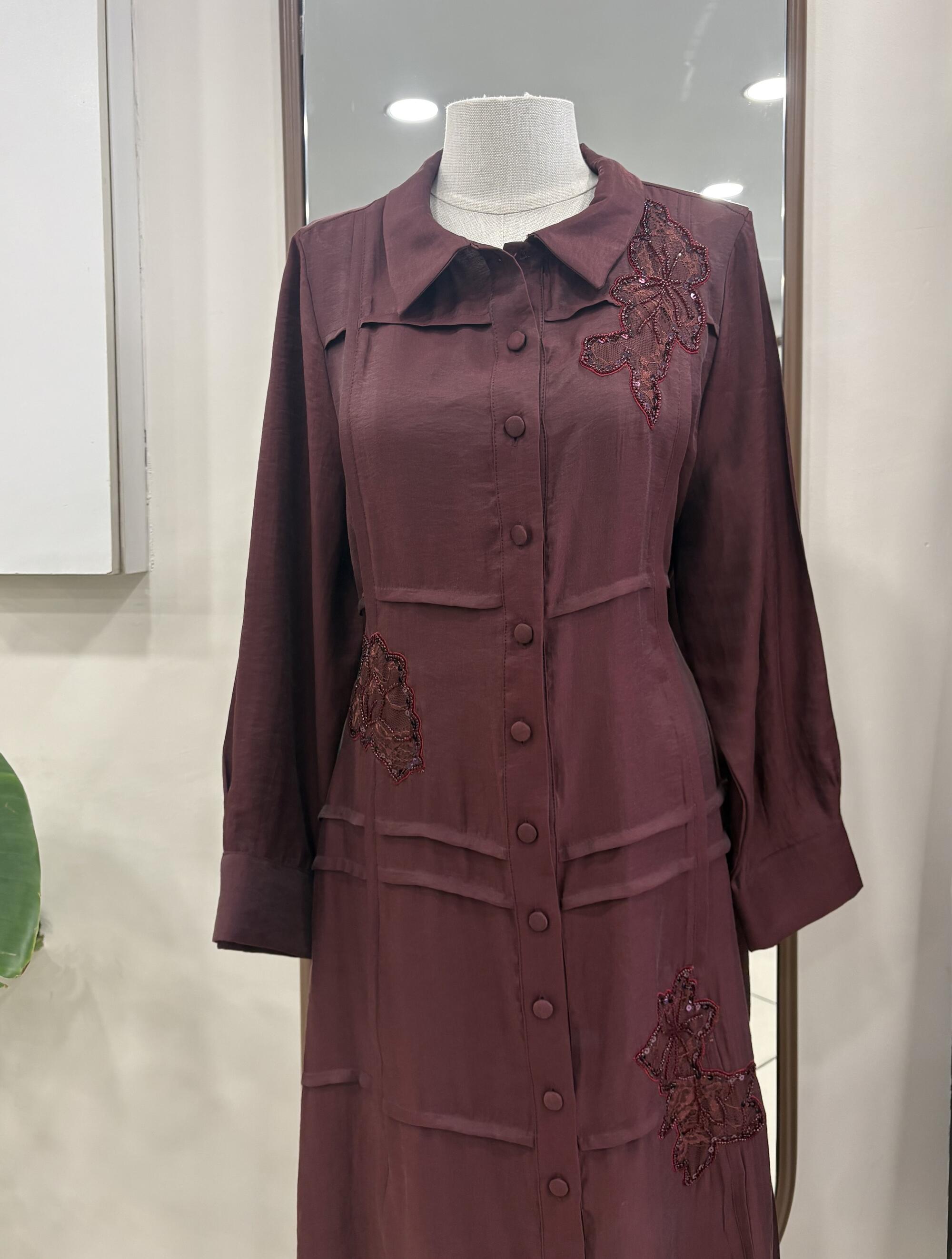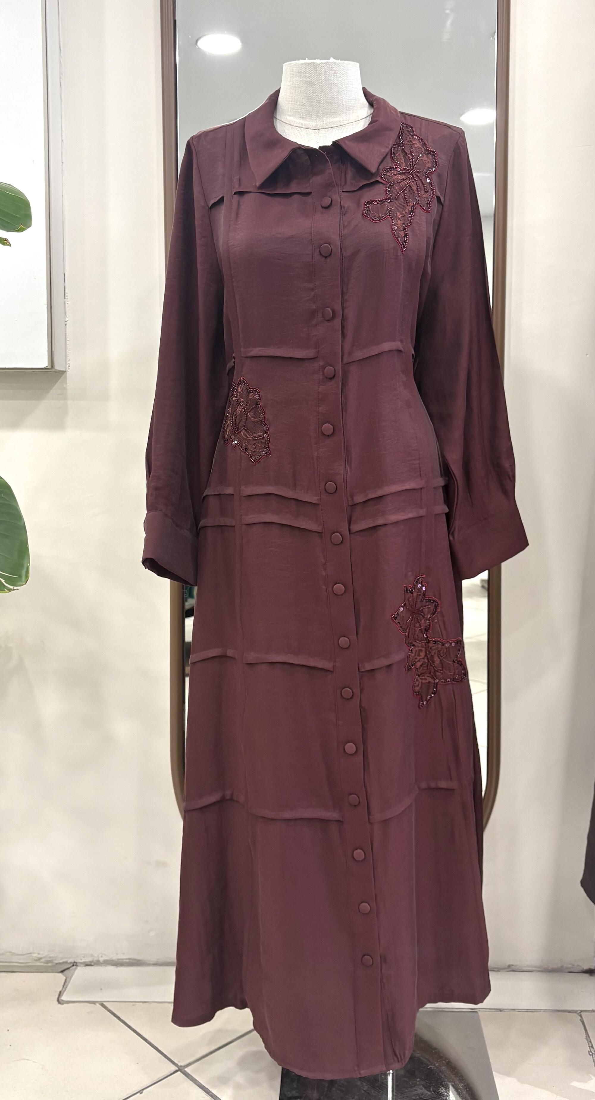 BİYE DETAYLI ÇİÇEK İŞLEMELİ ELBİSE