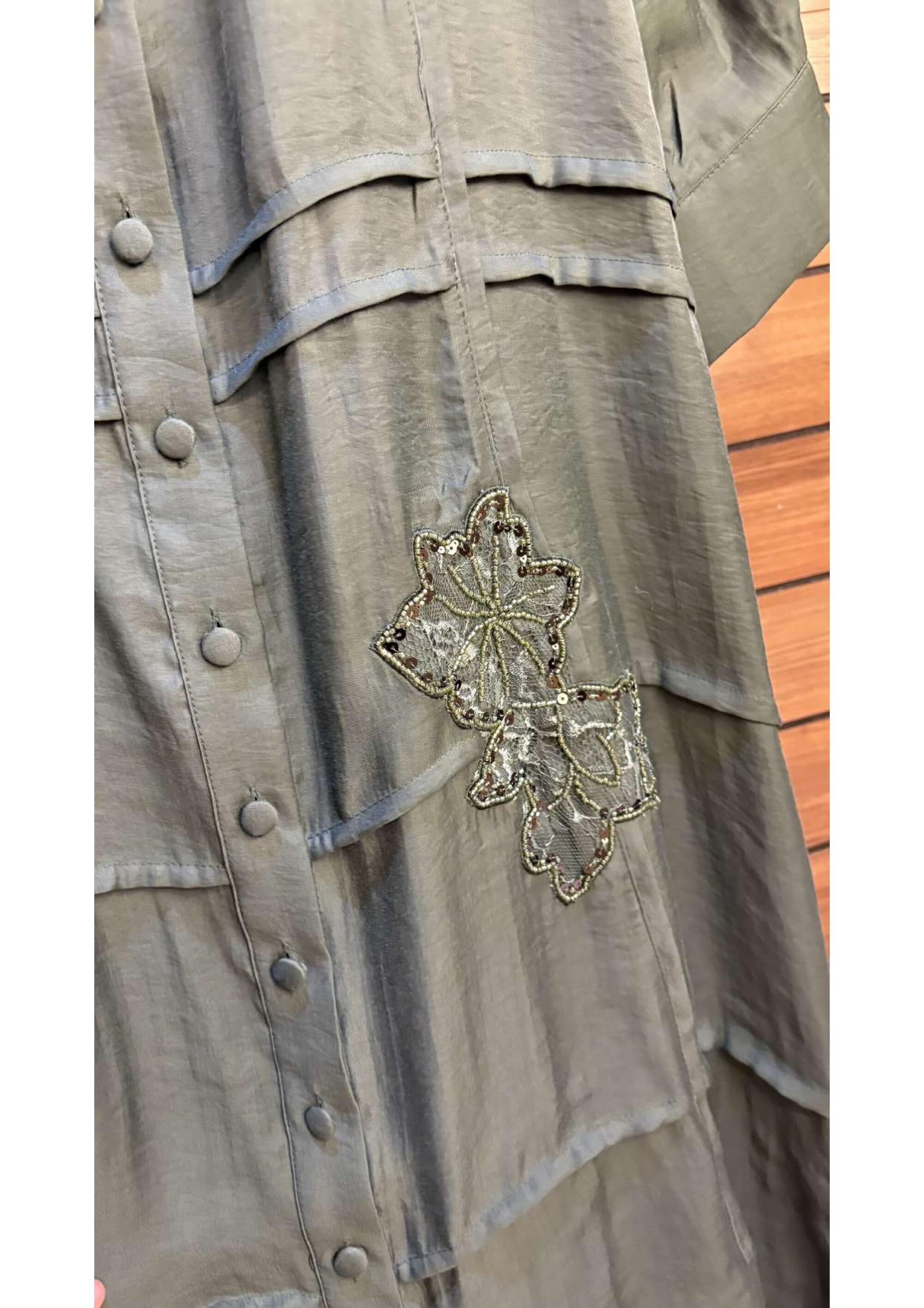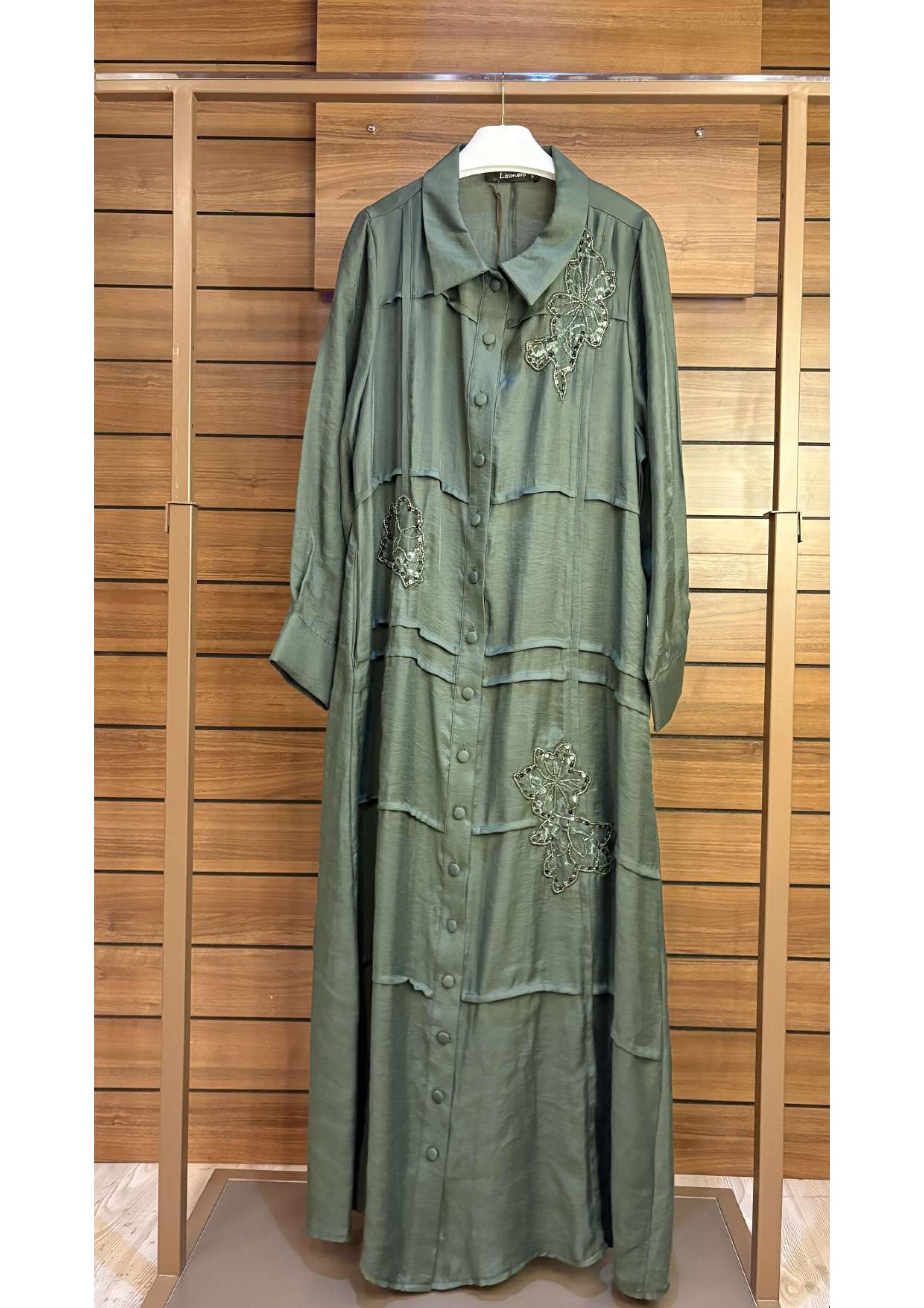 BİYE DETAYLI ÇİÇEK İŞLEMELİ ELBİSE