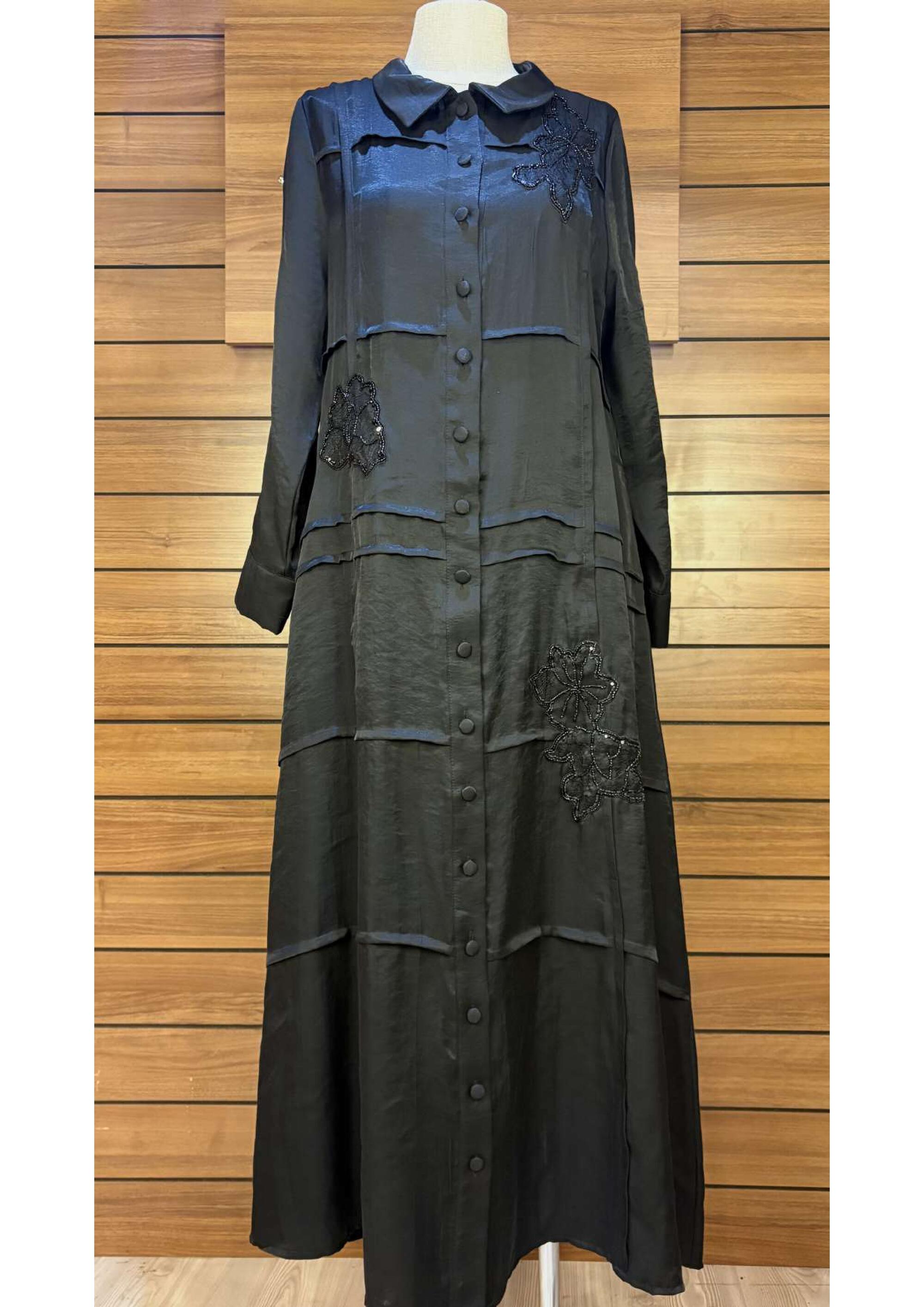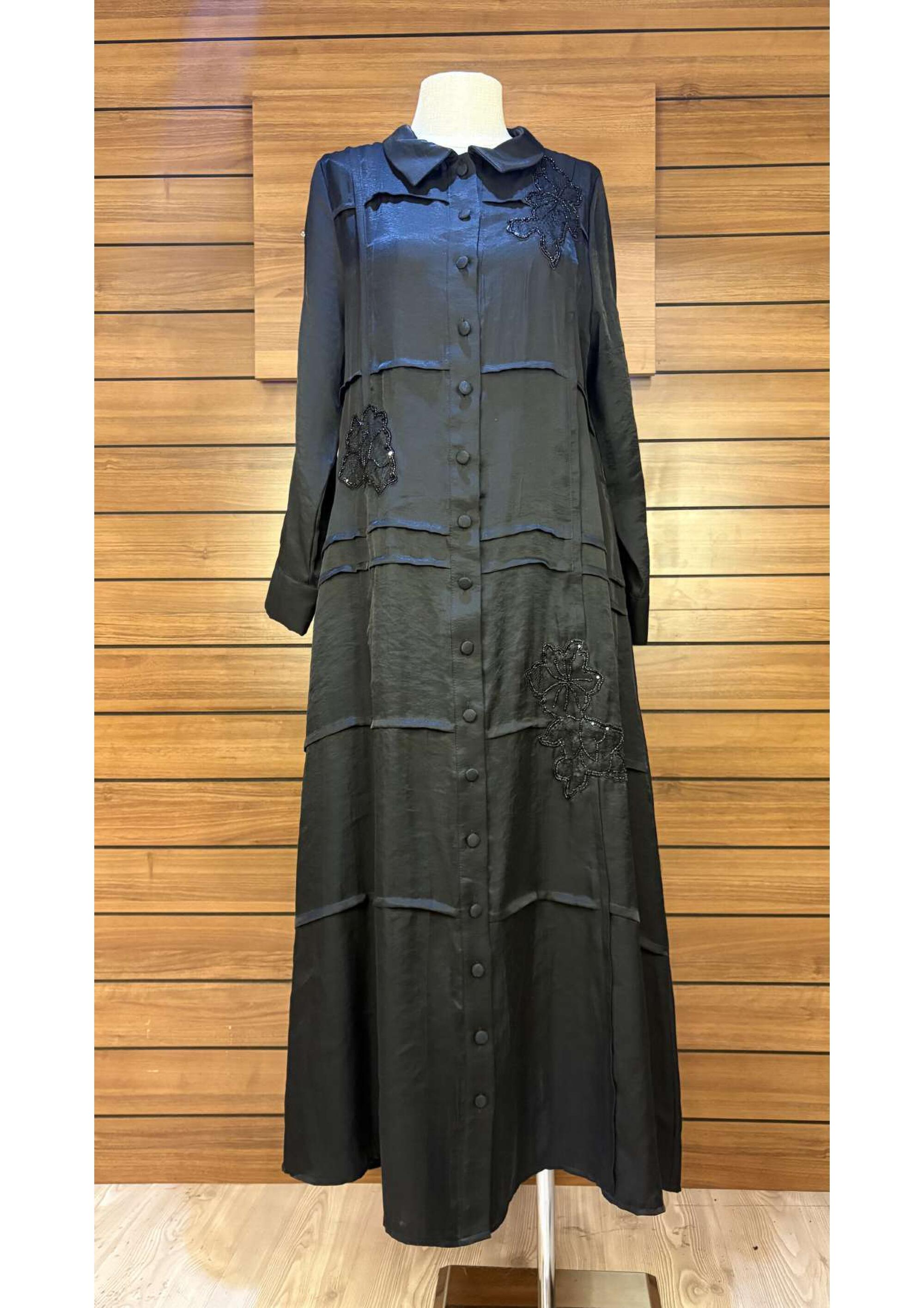 BİYE DETAYLI ÇİÇEK İŞLEMELİ ELBİSE