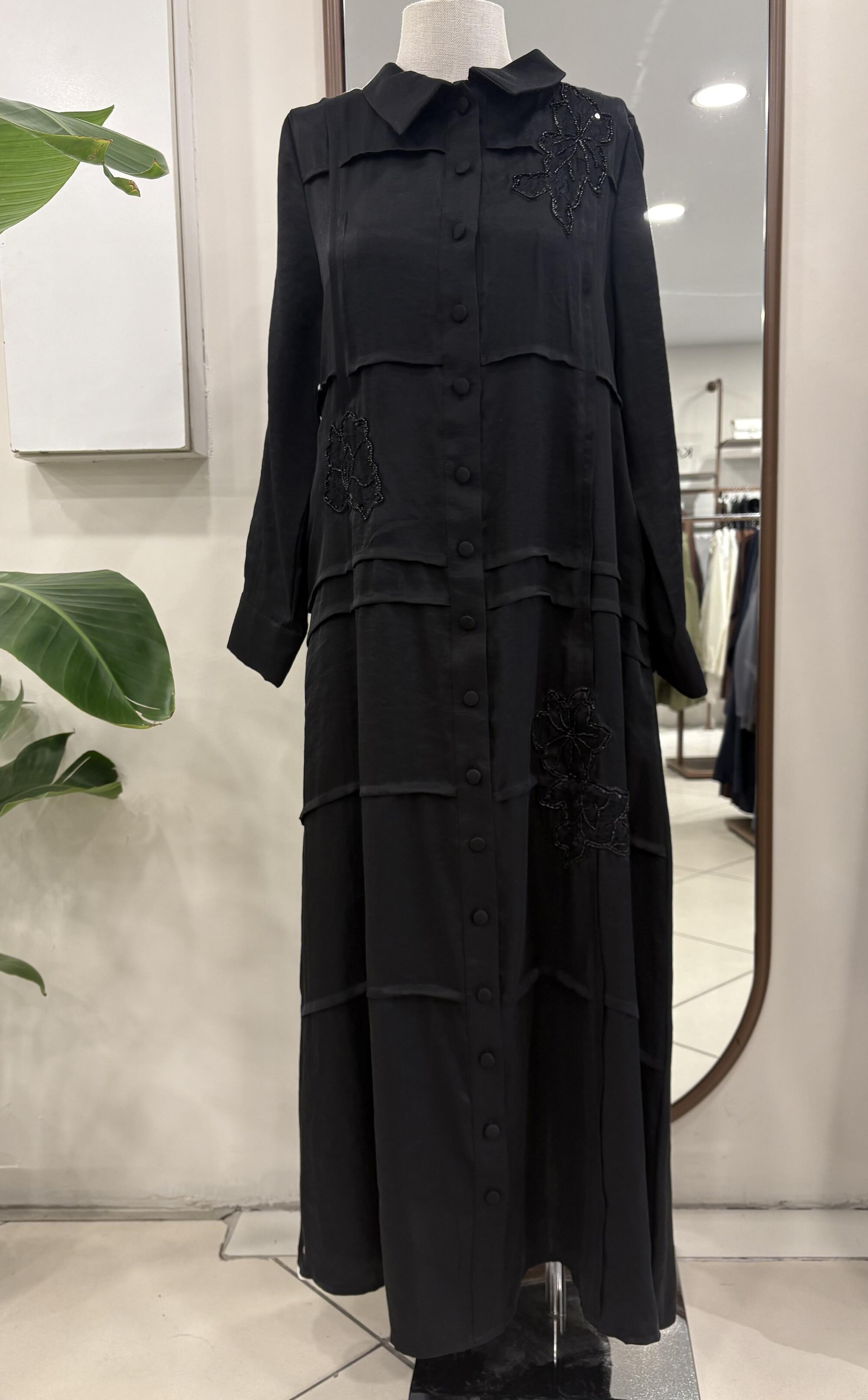 BİYE DETAYLI ÇİÇEK İŞLEMELİ ELBİSE