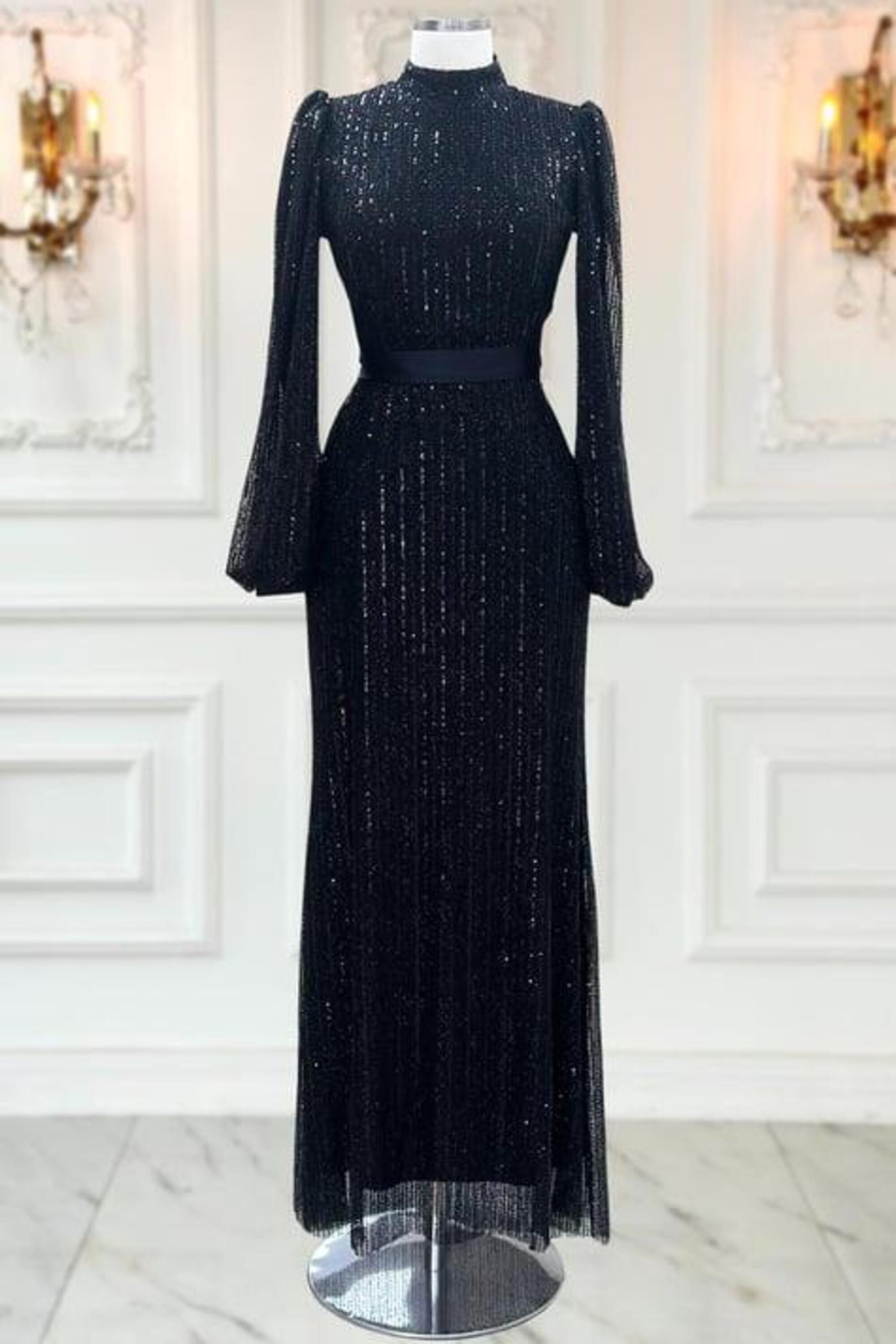 BONCUK PUL PAYET DETAYLI ELBİSE