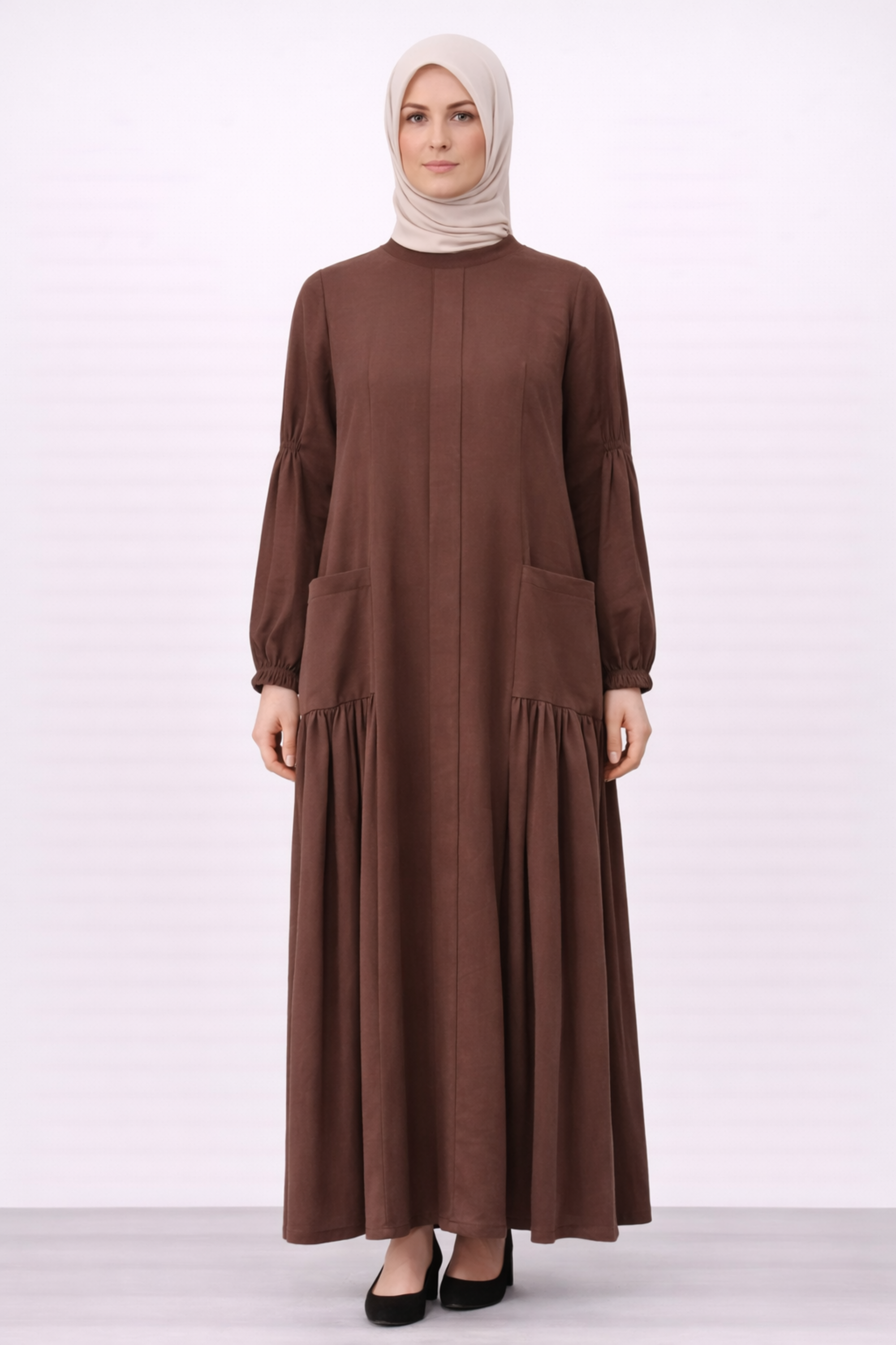 *CEP DETAYLI BÜZGÜLÜ ELBİSE