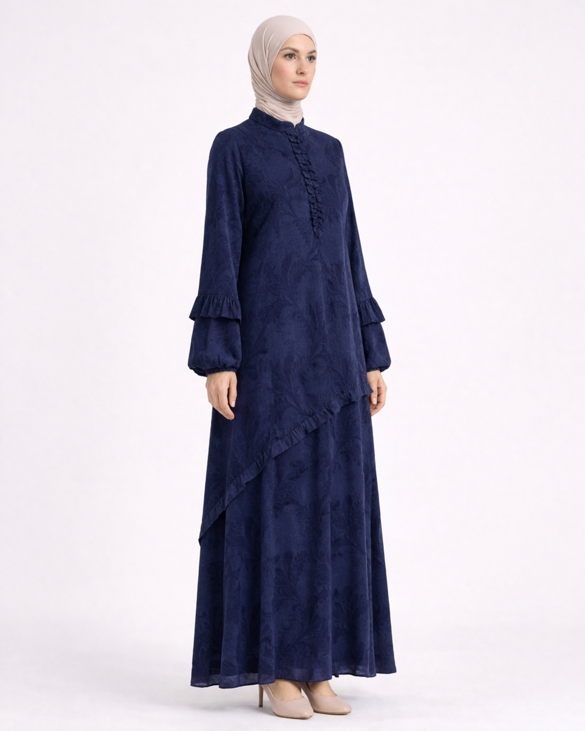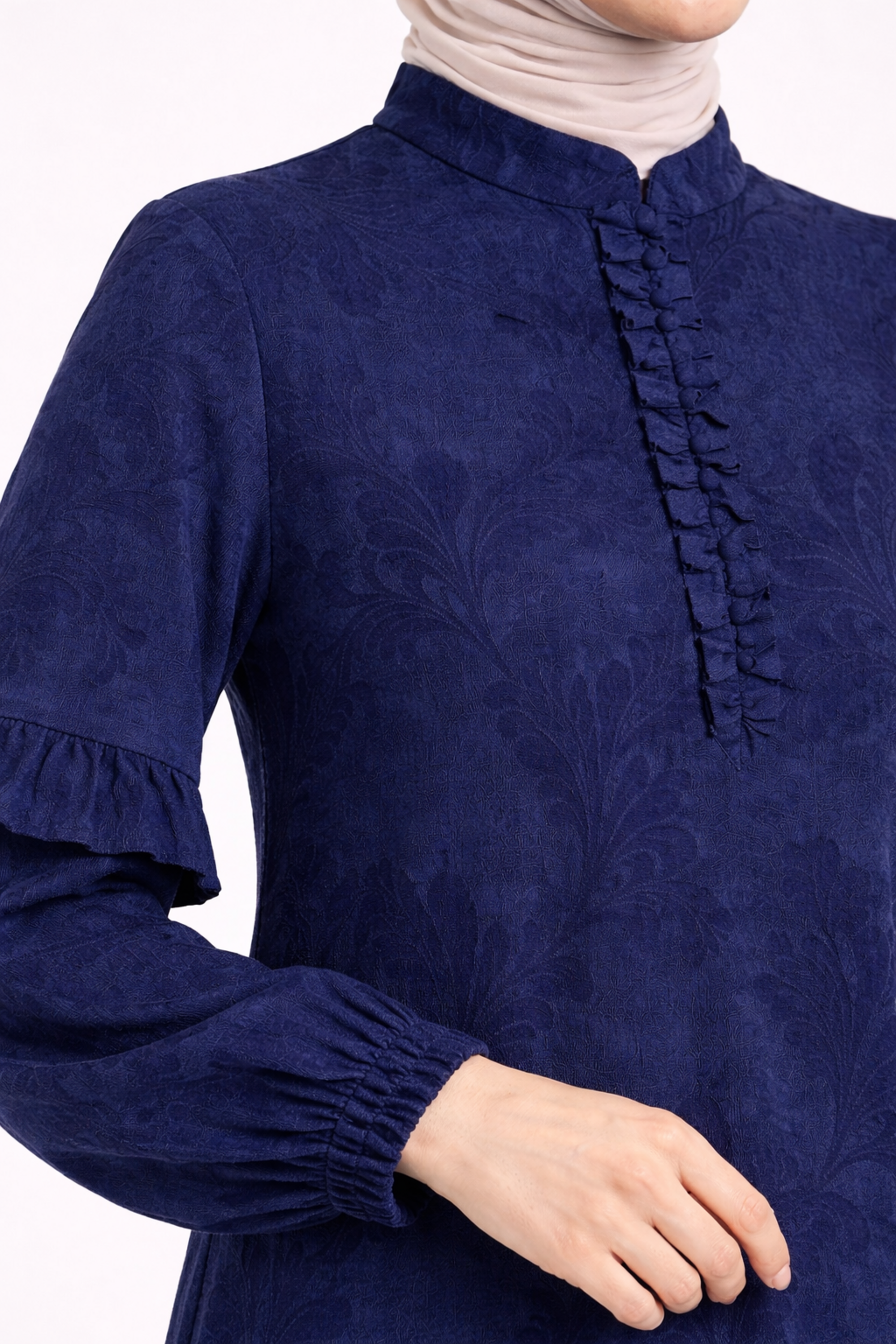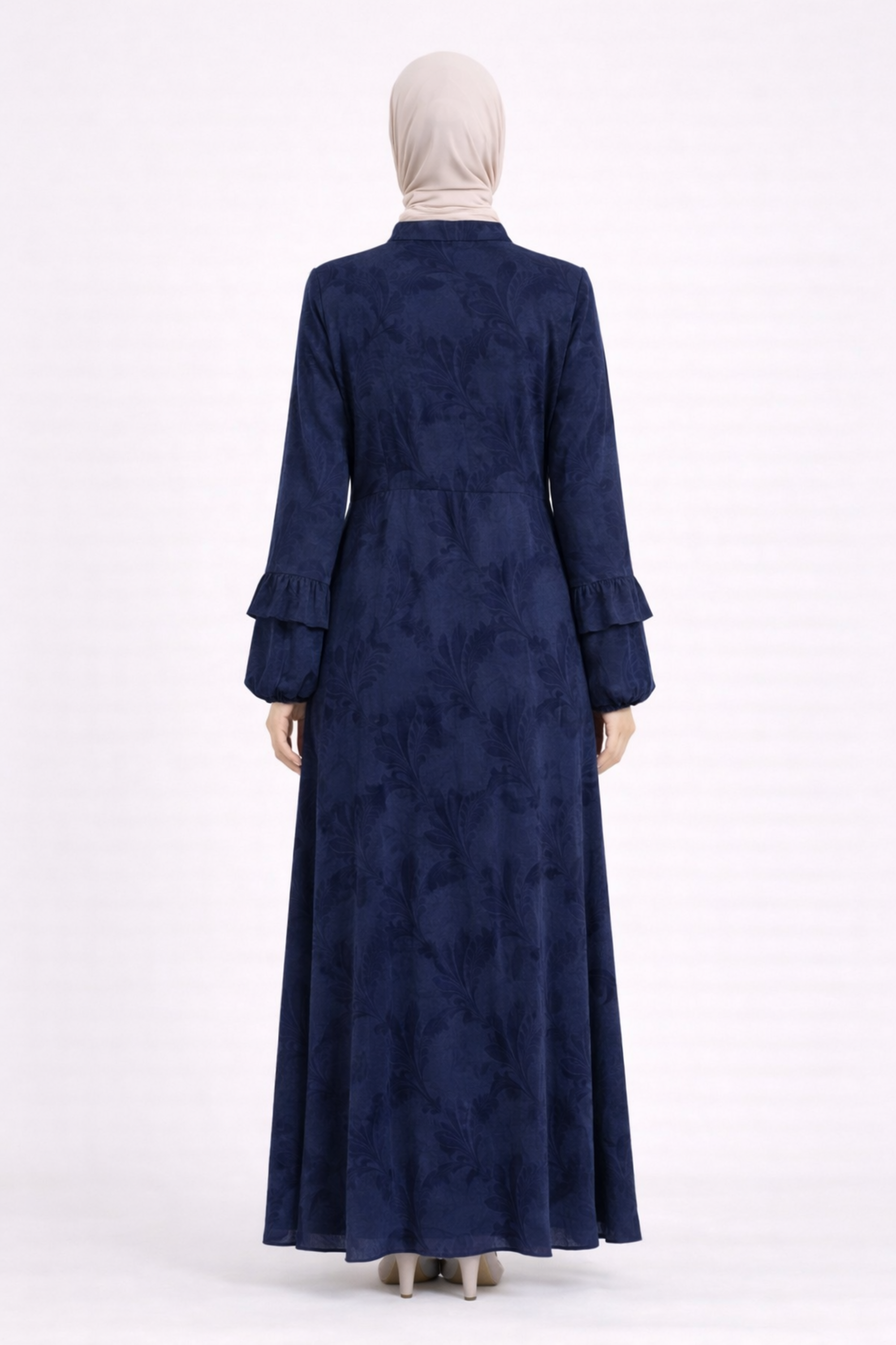 DESENLİ DÜĞMELİ KUPRA ELBİSE