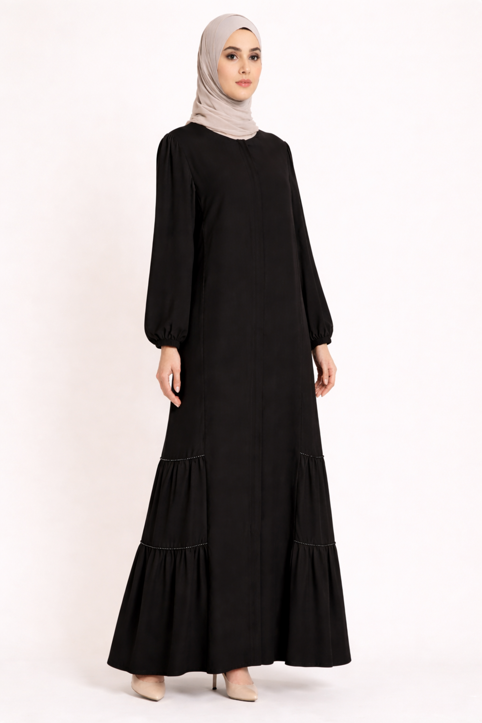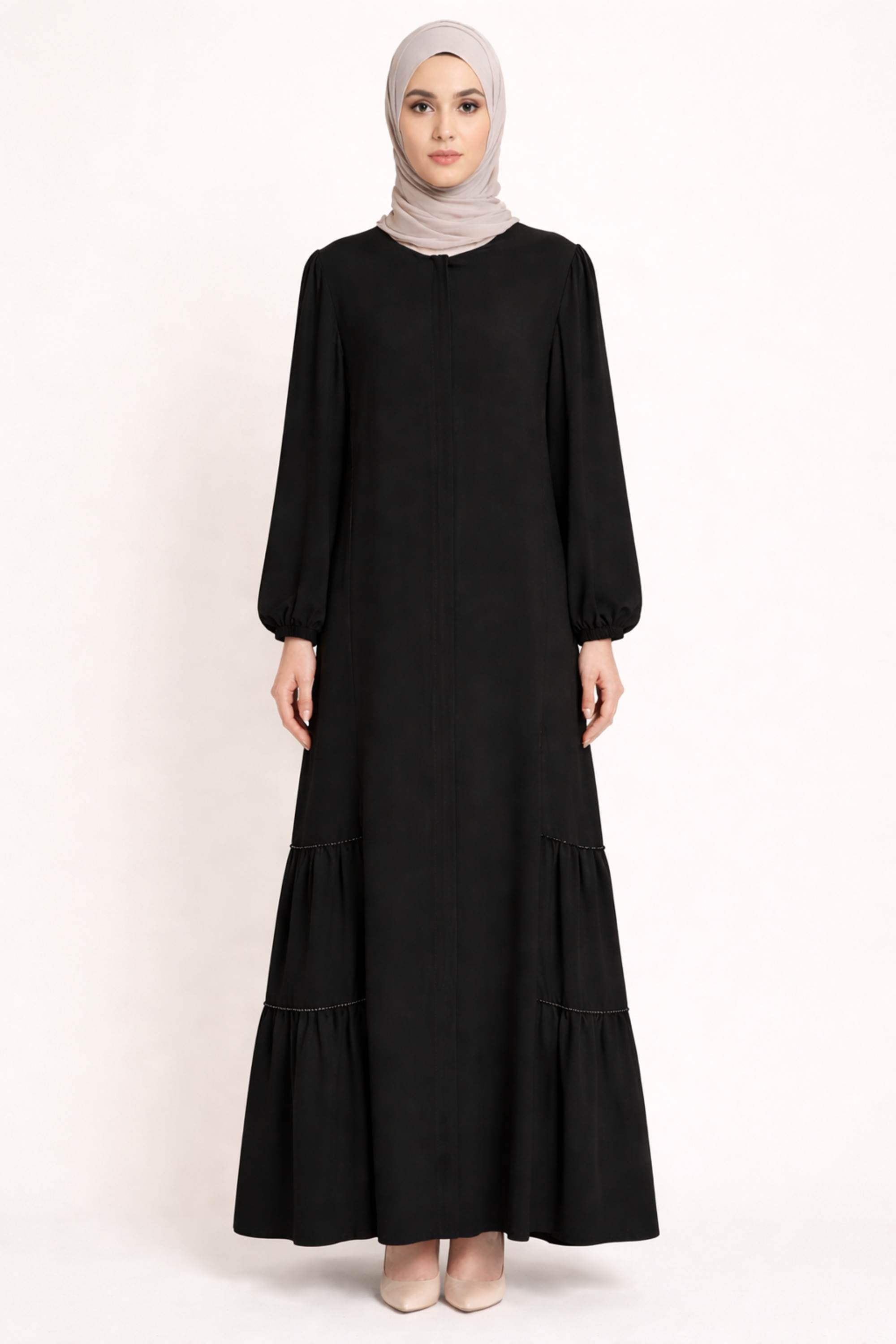 ETEĞİ BÜZGÜ TAŞ DETAYLI FERACE