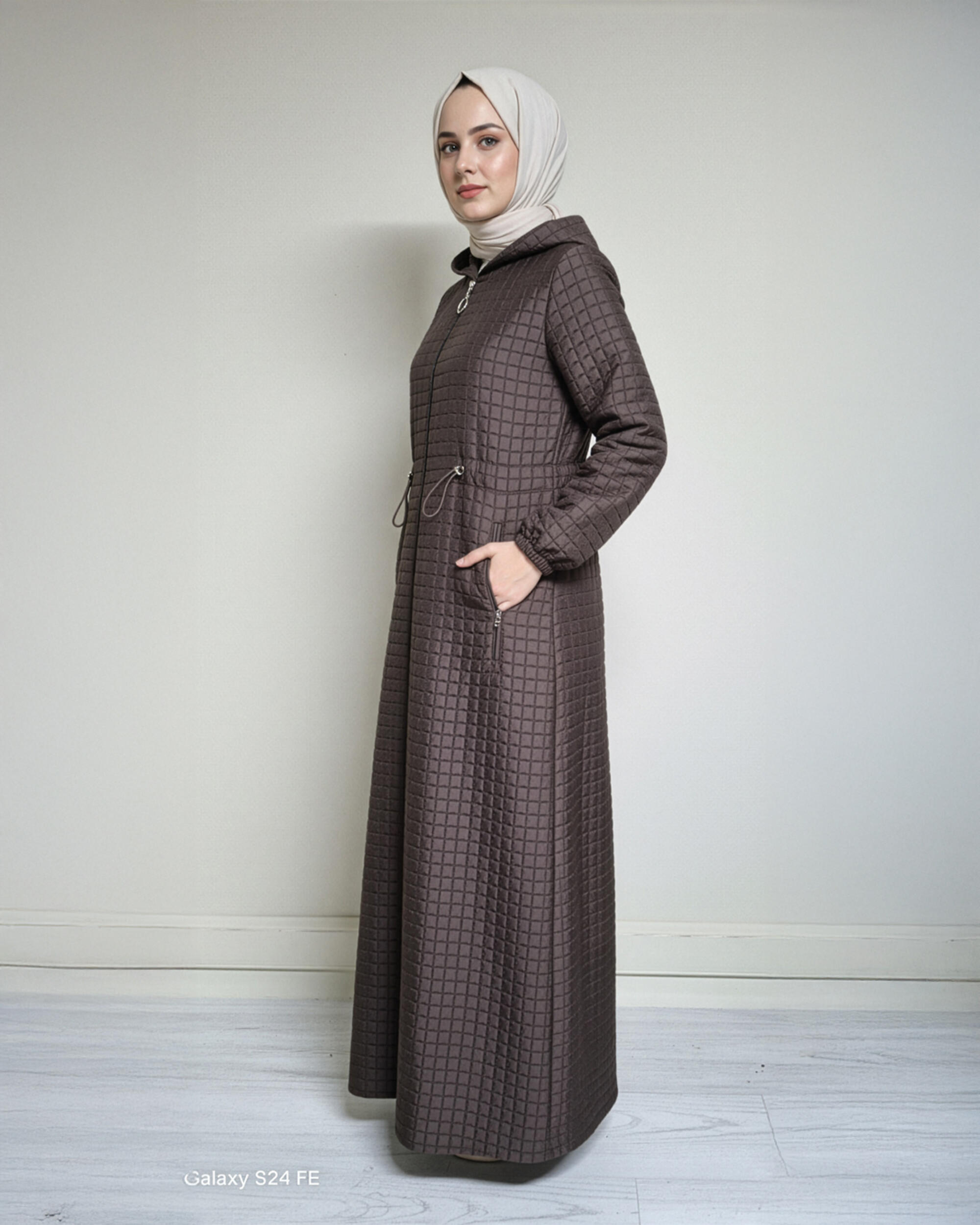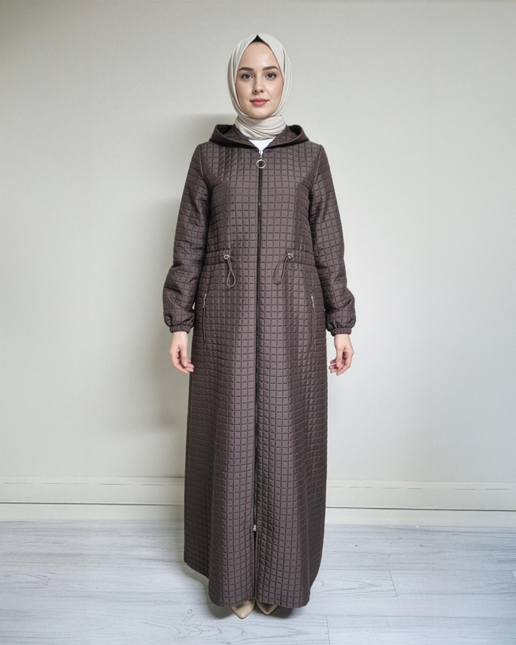 KAPŞONLU BEL BÜZGÜLÜ KAPİTONE MONT