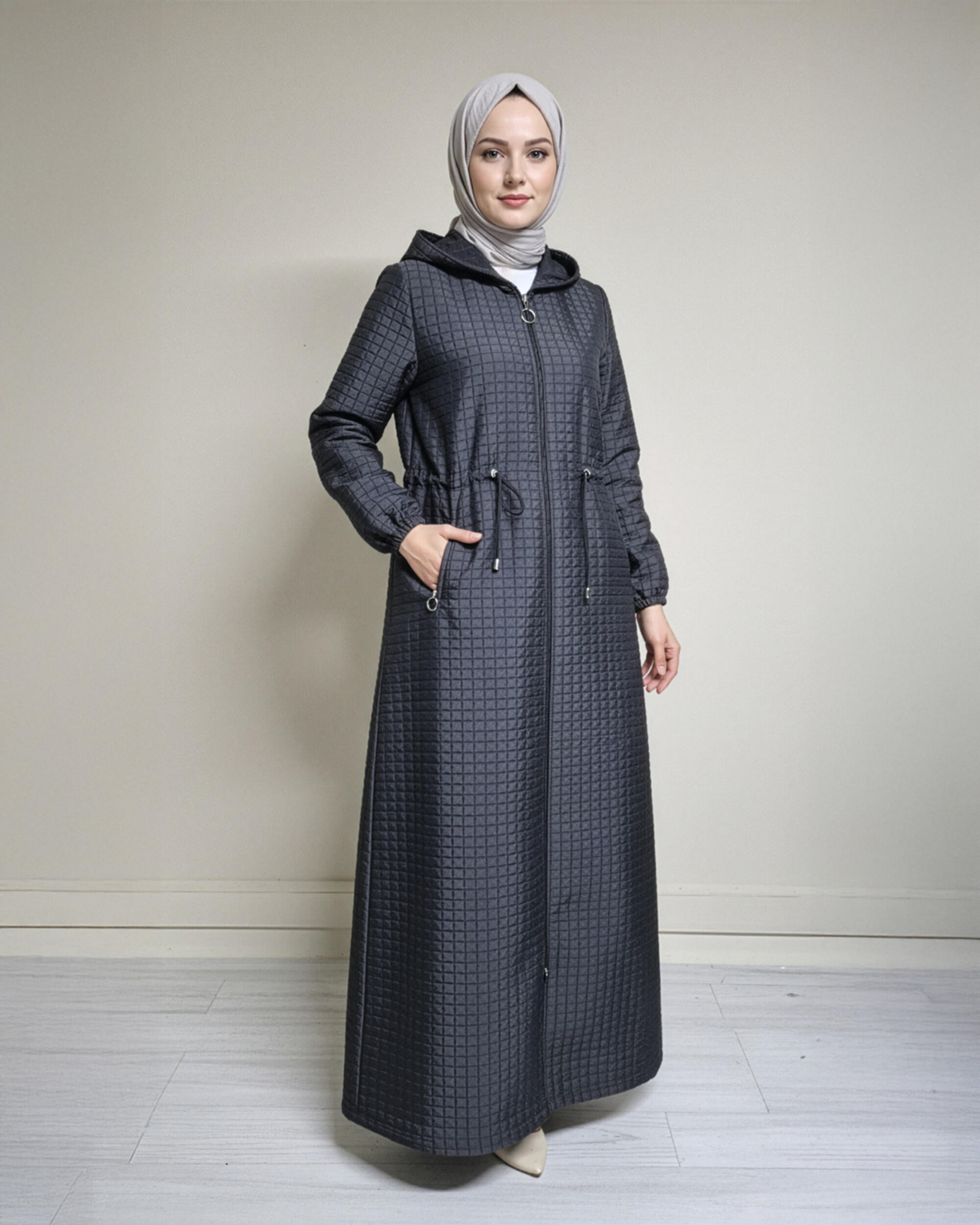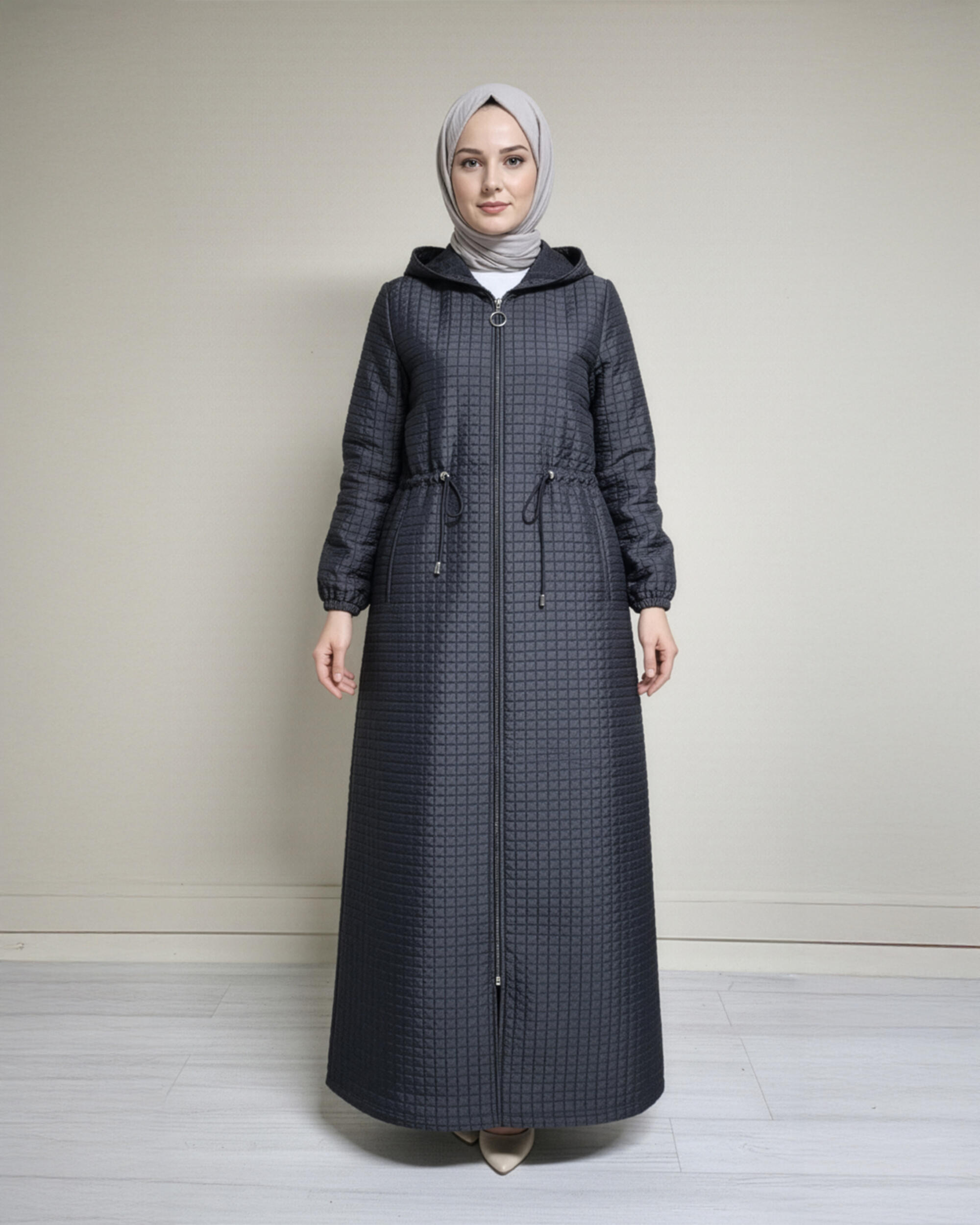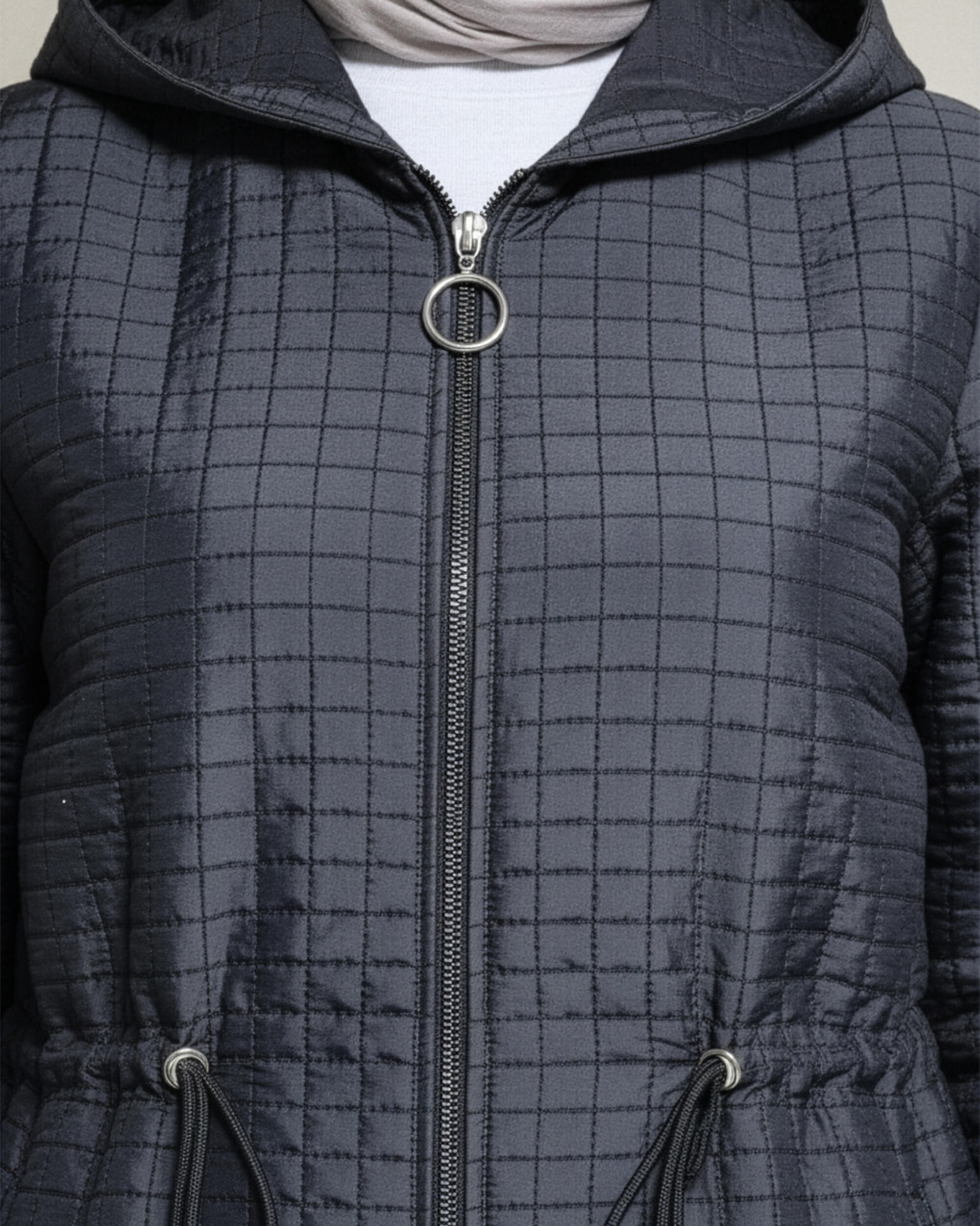 KAPŞONLU BEL BÜZGÜLÜ KAPİTONE MONT