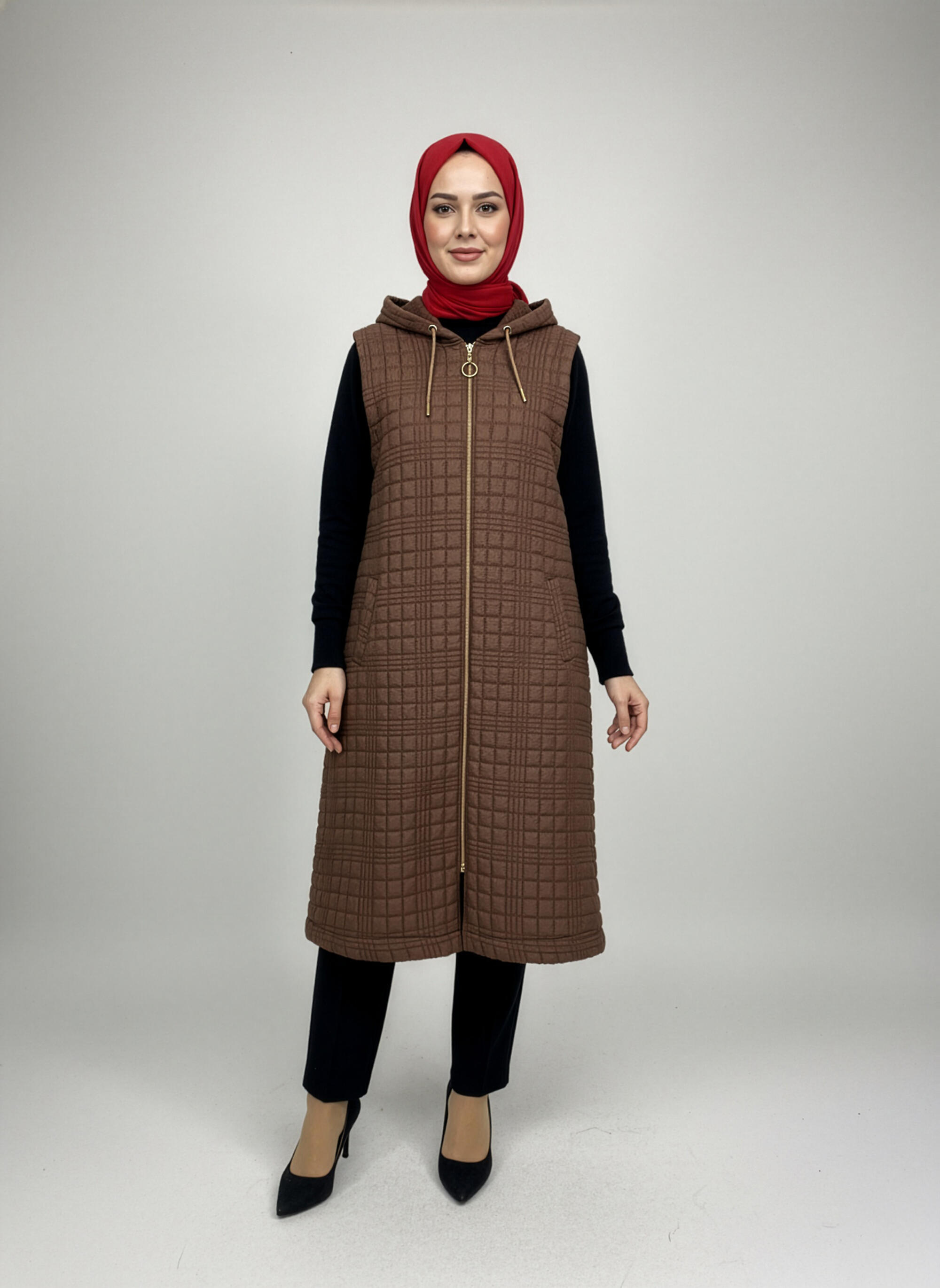 KAPŞONLU FERMUARLI KAPİTONE YELEK
