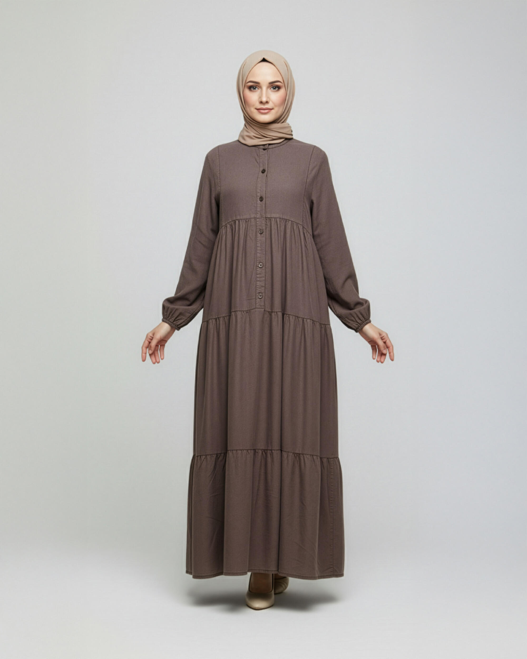 KATLI DÜĞMELİ TENCEL ELBİSE