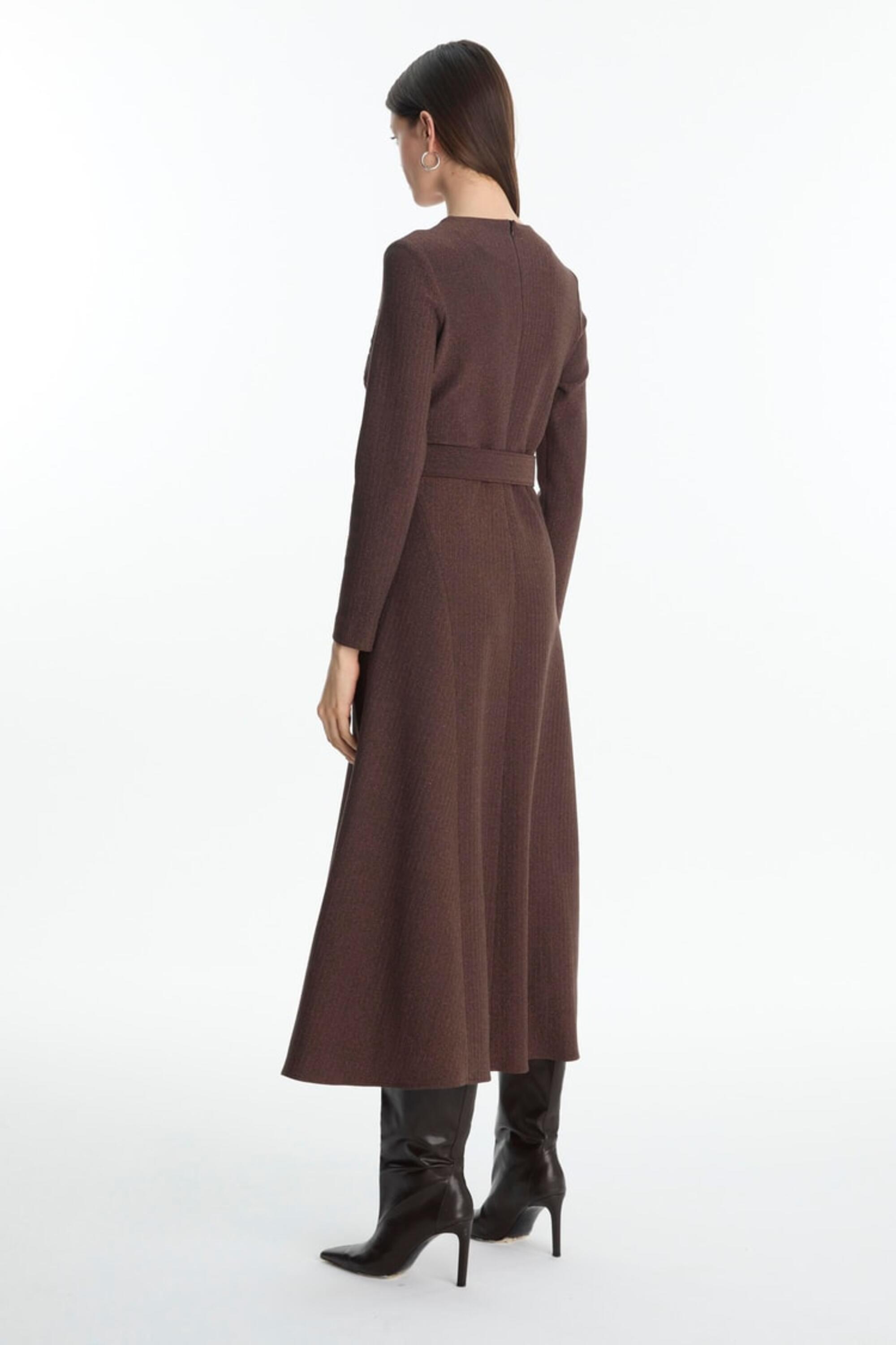 KEMERLİ JAKAR DETAYLI ELBİSE