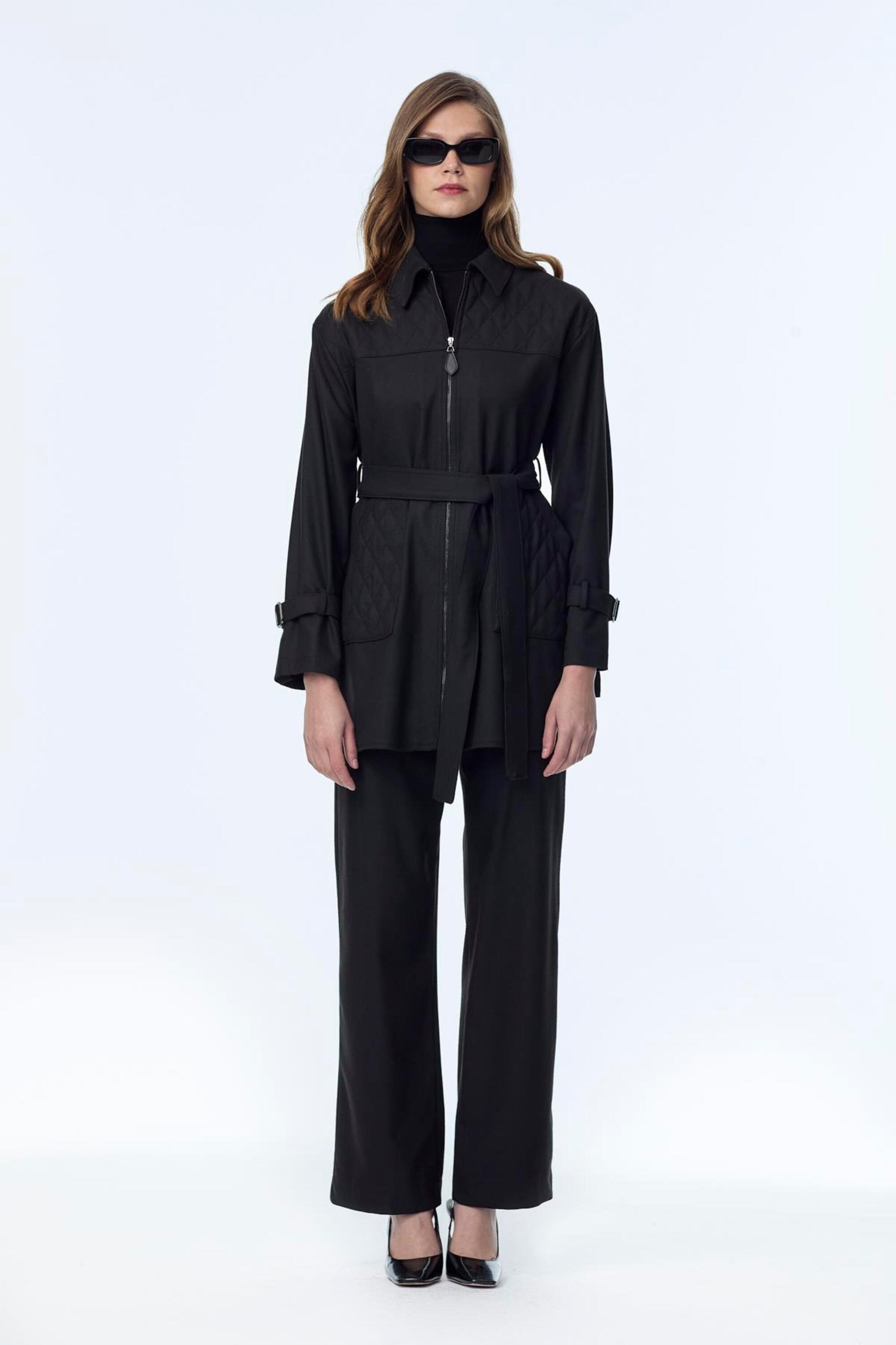 Fermuar kapamalı ceket, Kuşak detaylı, Cepli tasarım, Uzun kol, Düz kesim pantolon, Rahat kalıp