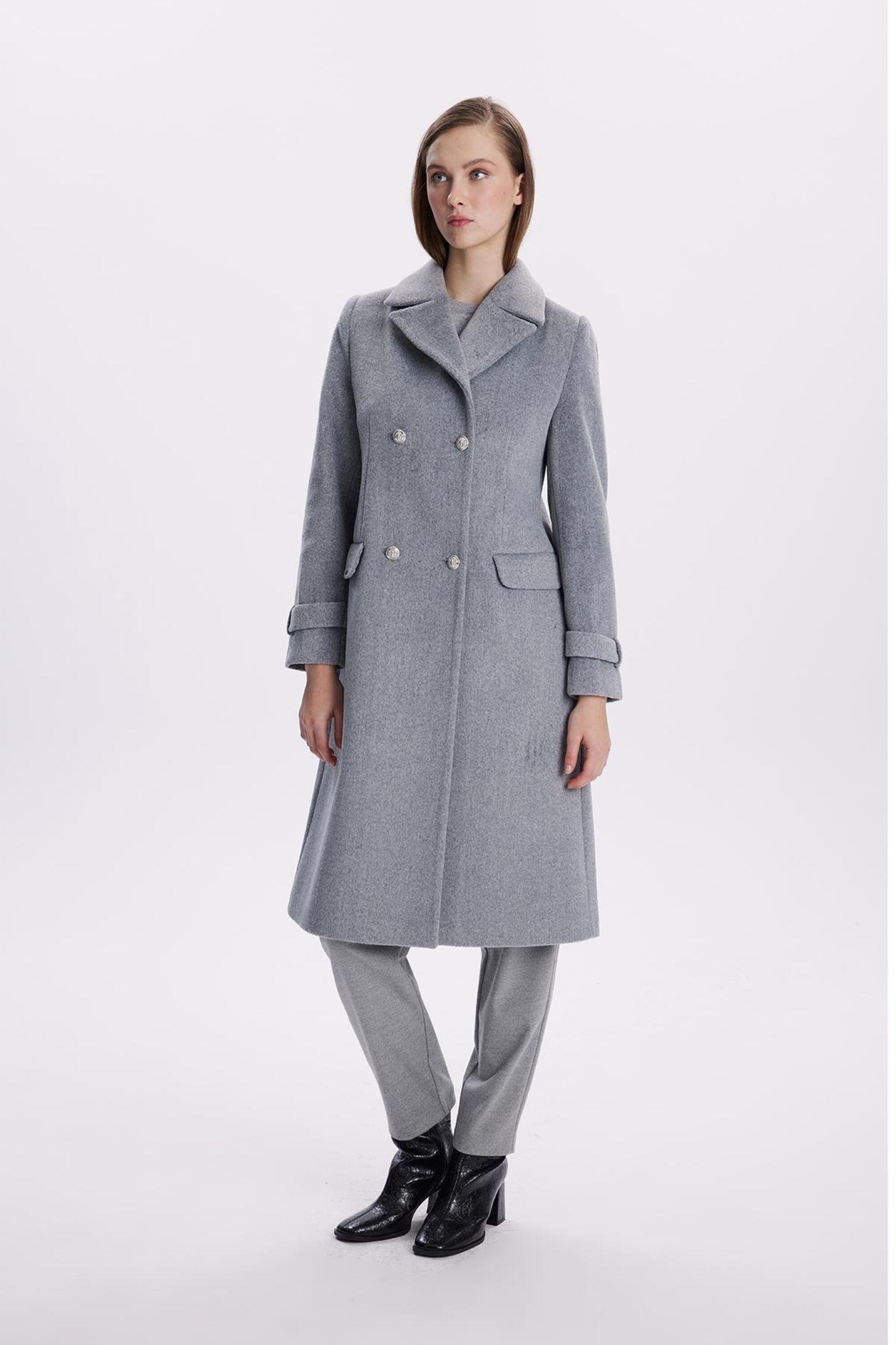 KRUVAZE YAKA ÇİFT DÜĞME KABAN