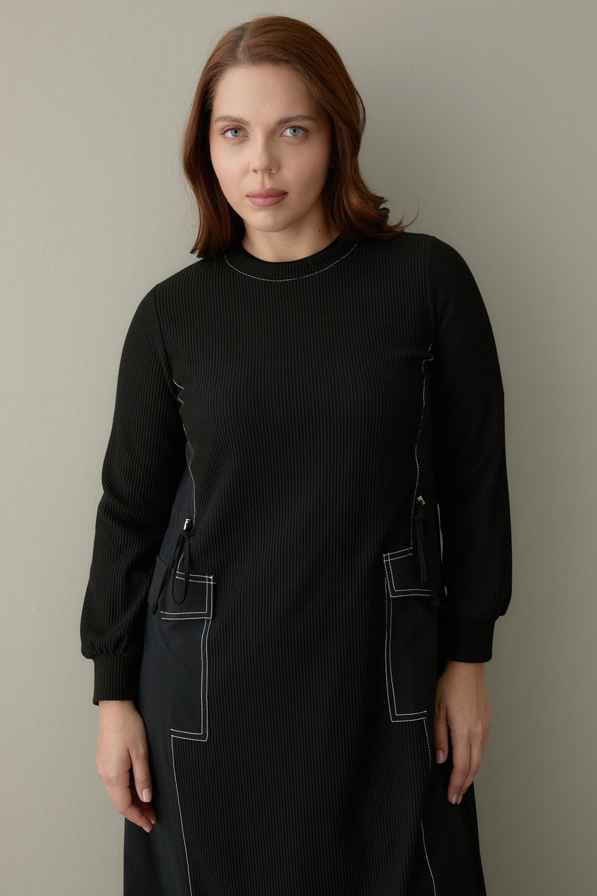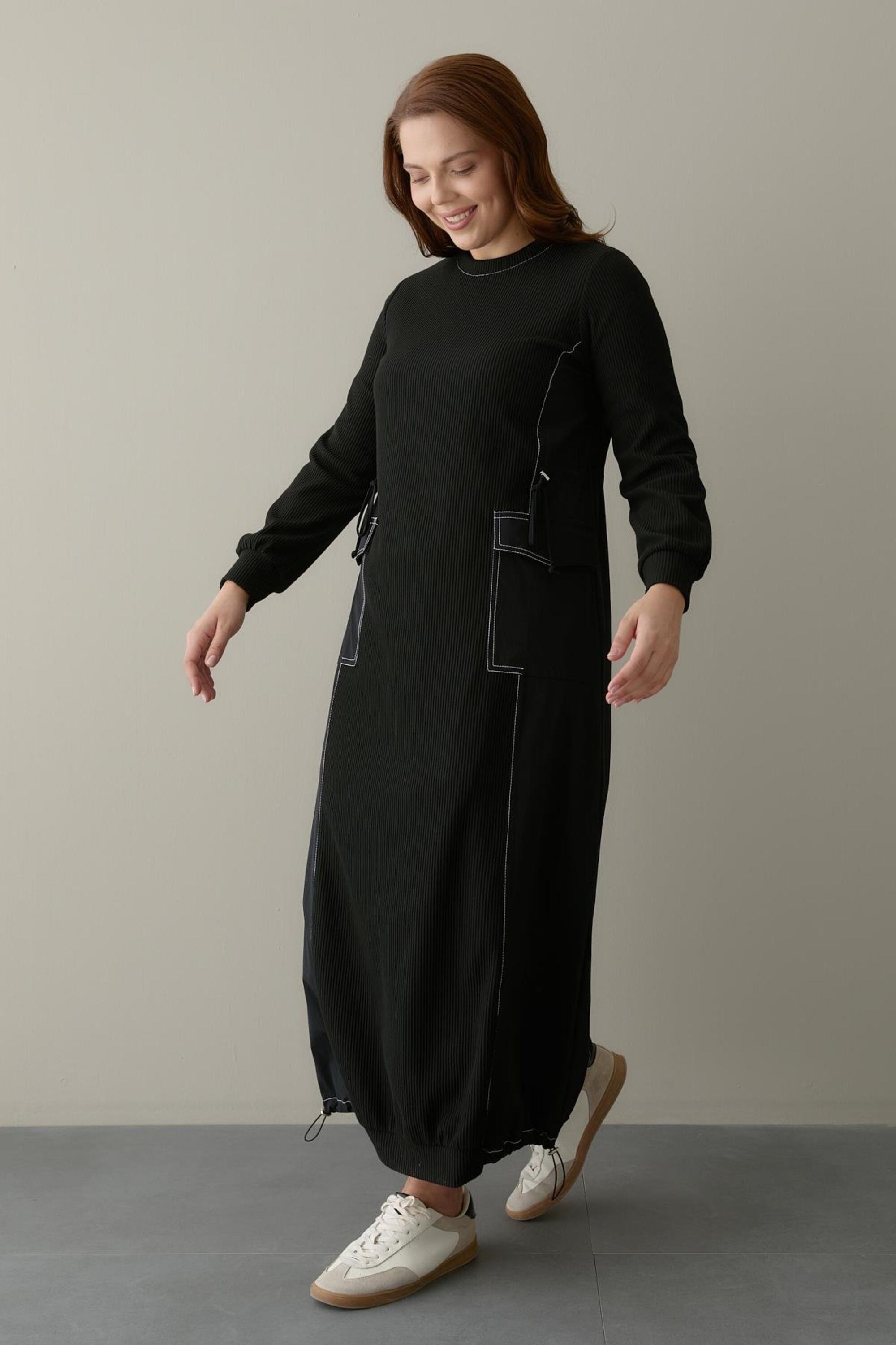 KUPLARI DİKİŞ DETAYLI ELBİSE