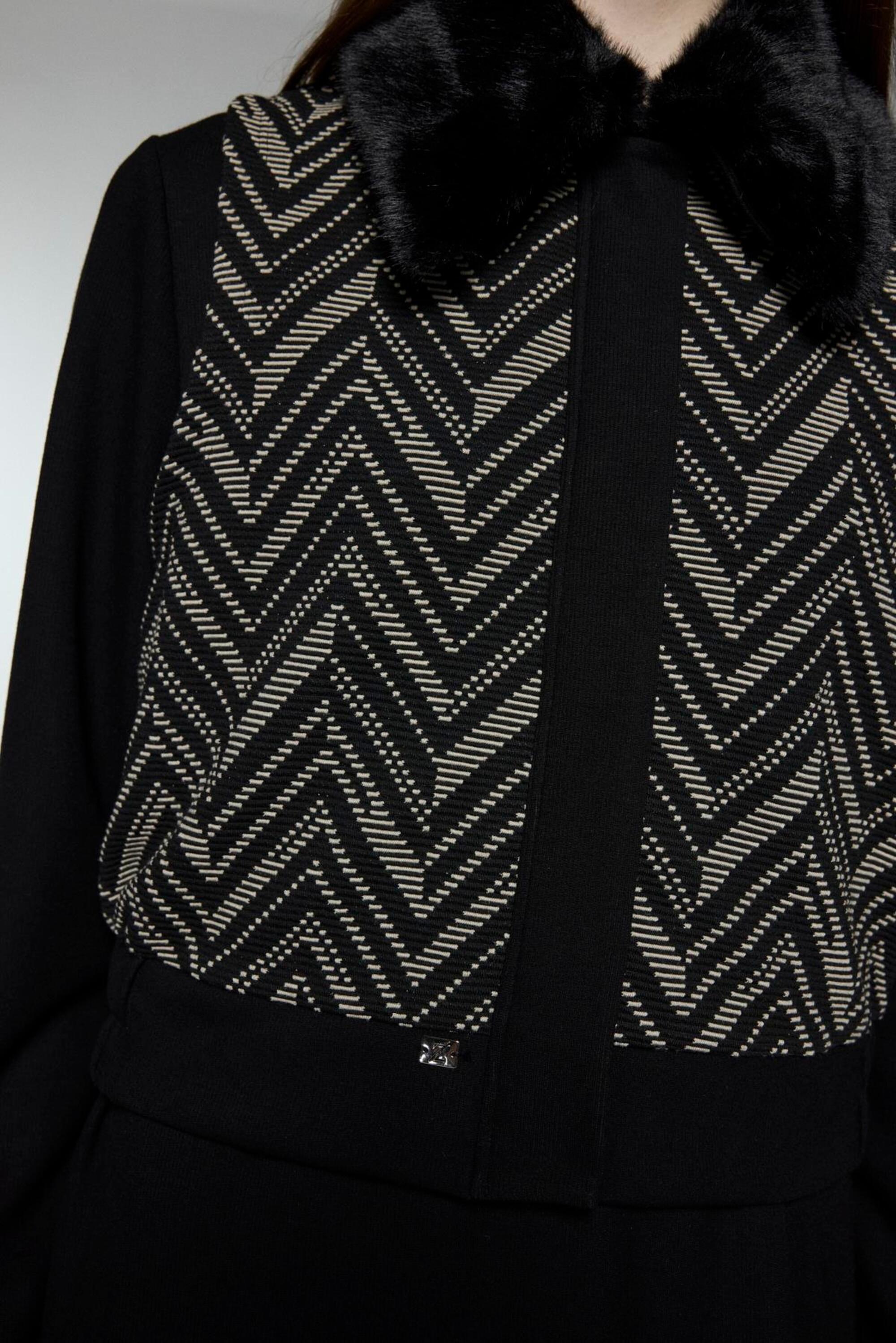 Ürün Detayları:Desenli ön yüzeyli üst parça, Çıkarılabilir kürk yakalı, Önden fermuar kapamalı, Metal logo detaylı, Düz kesim içlik elbise