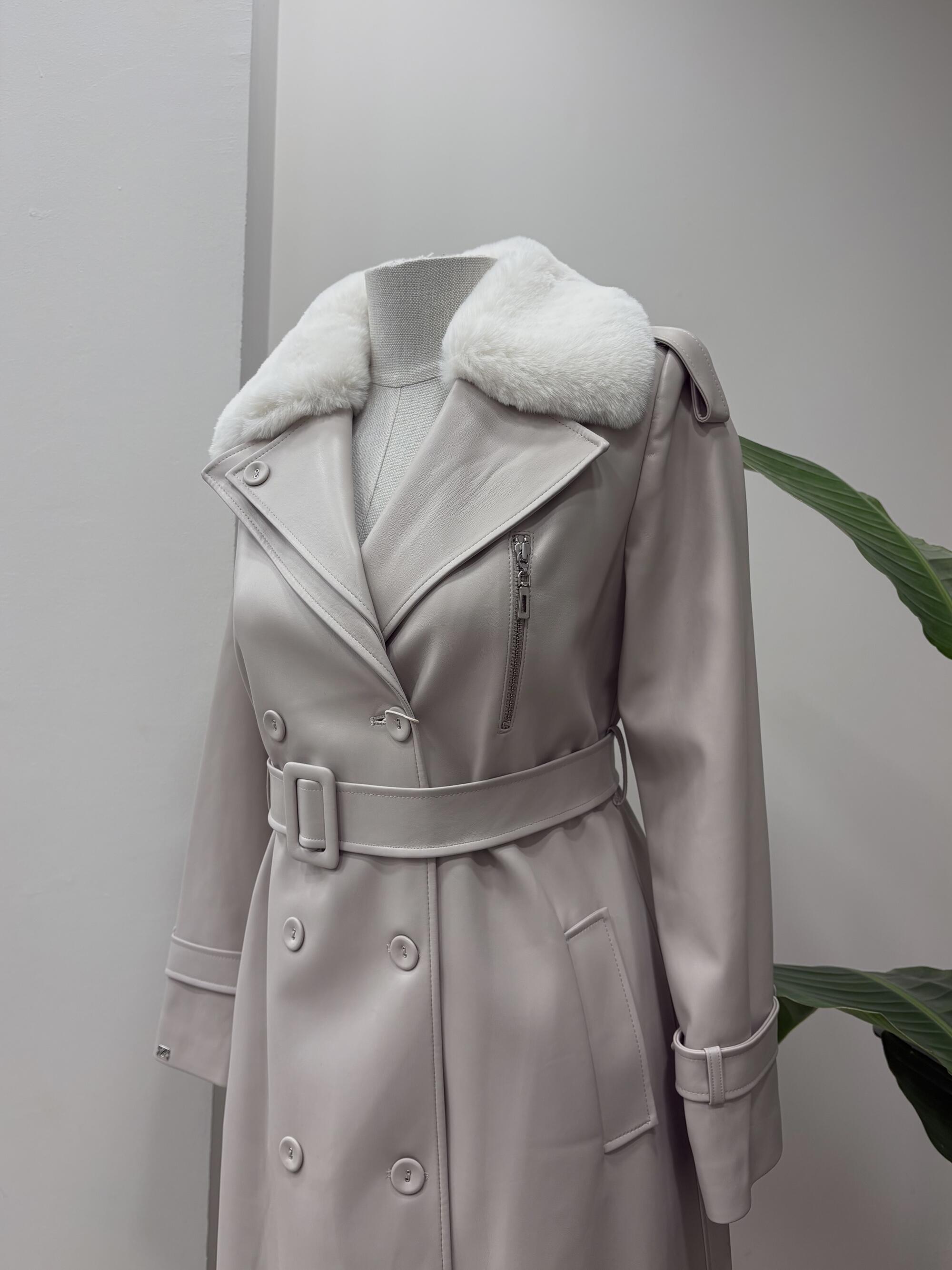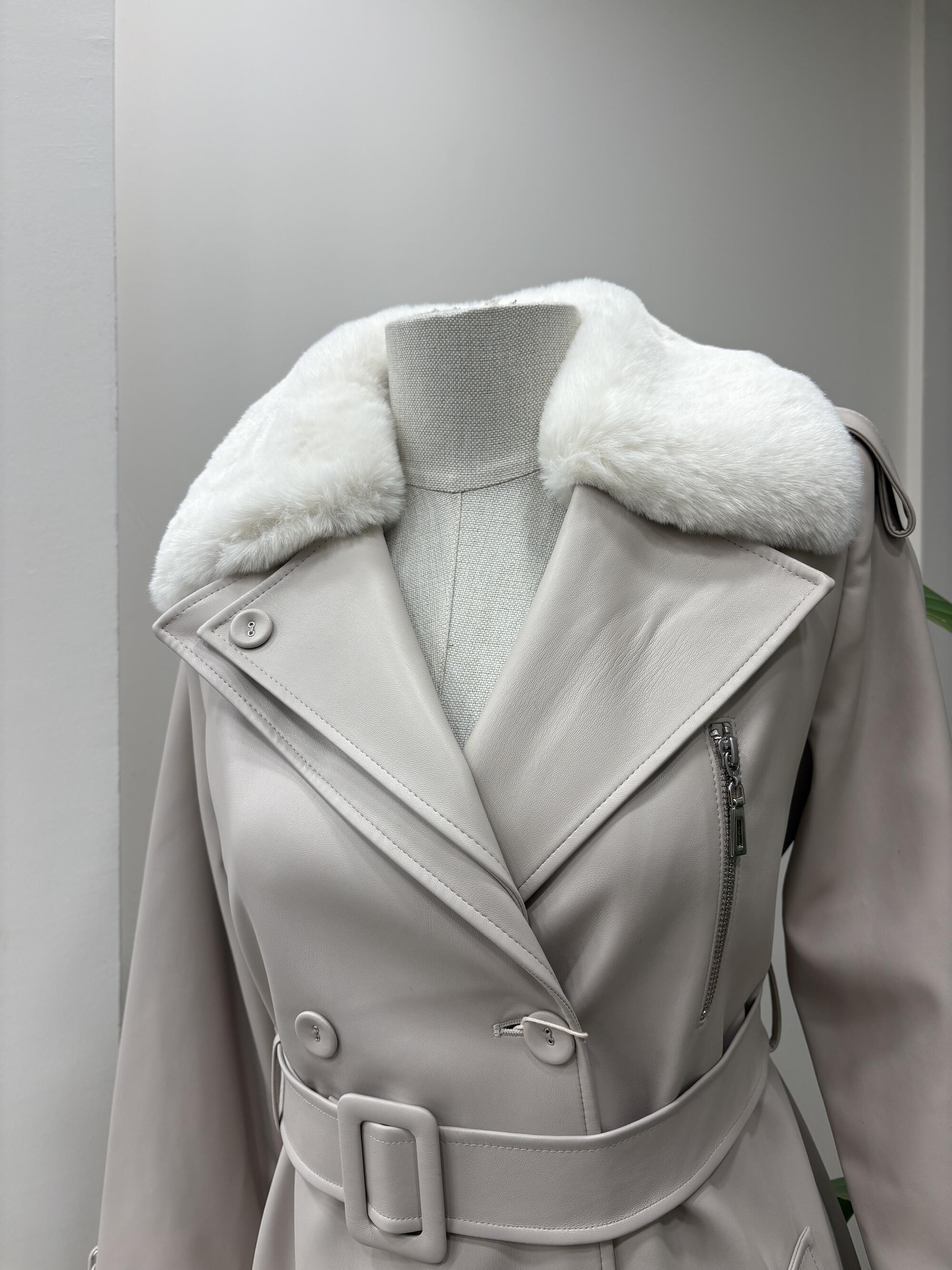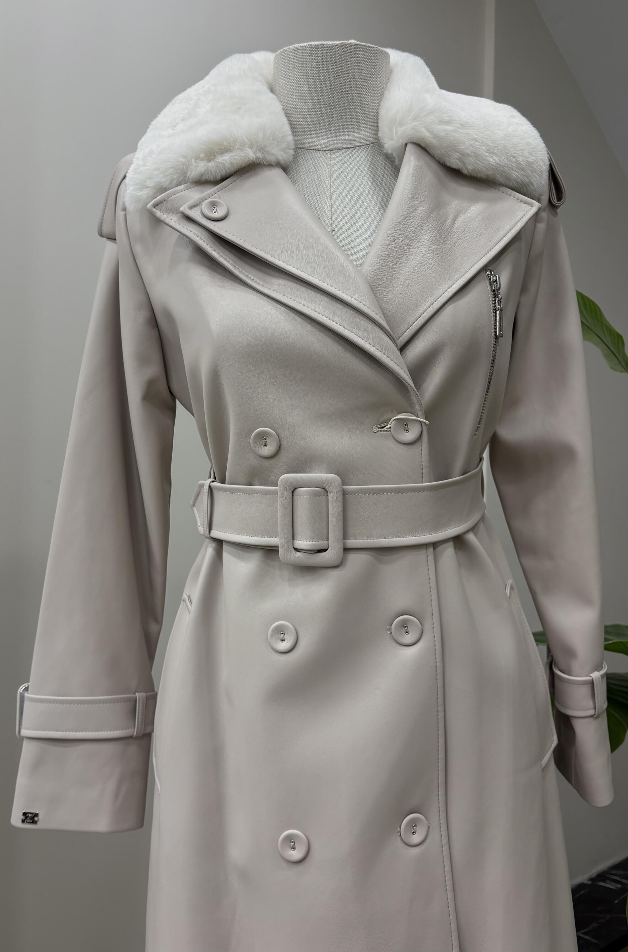 KÜRK YAKA KEMERLİ DERİ TRENÇKOT