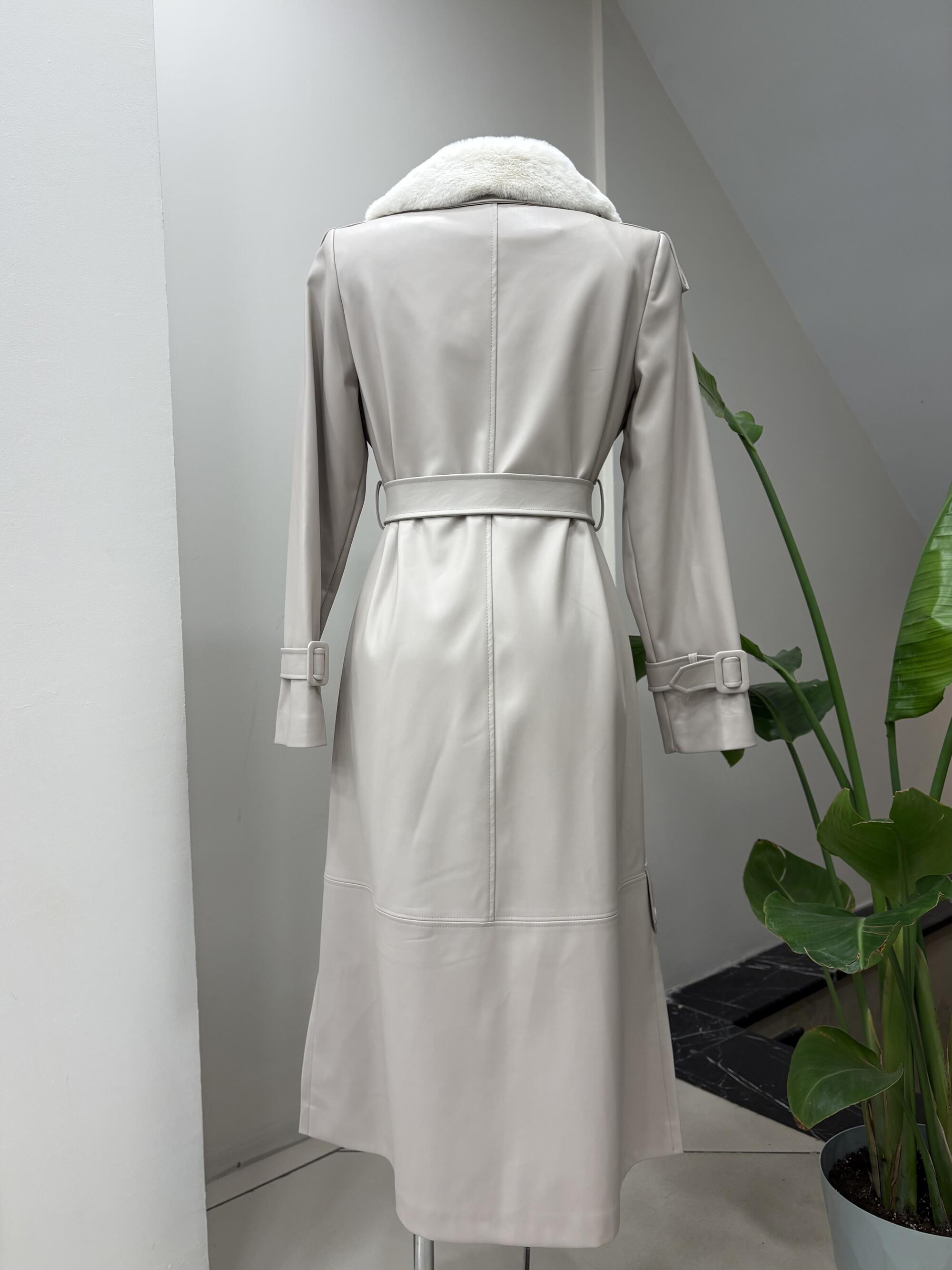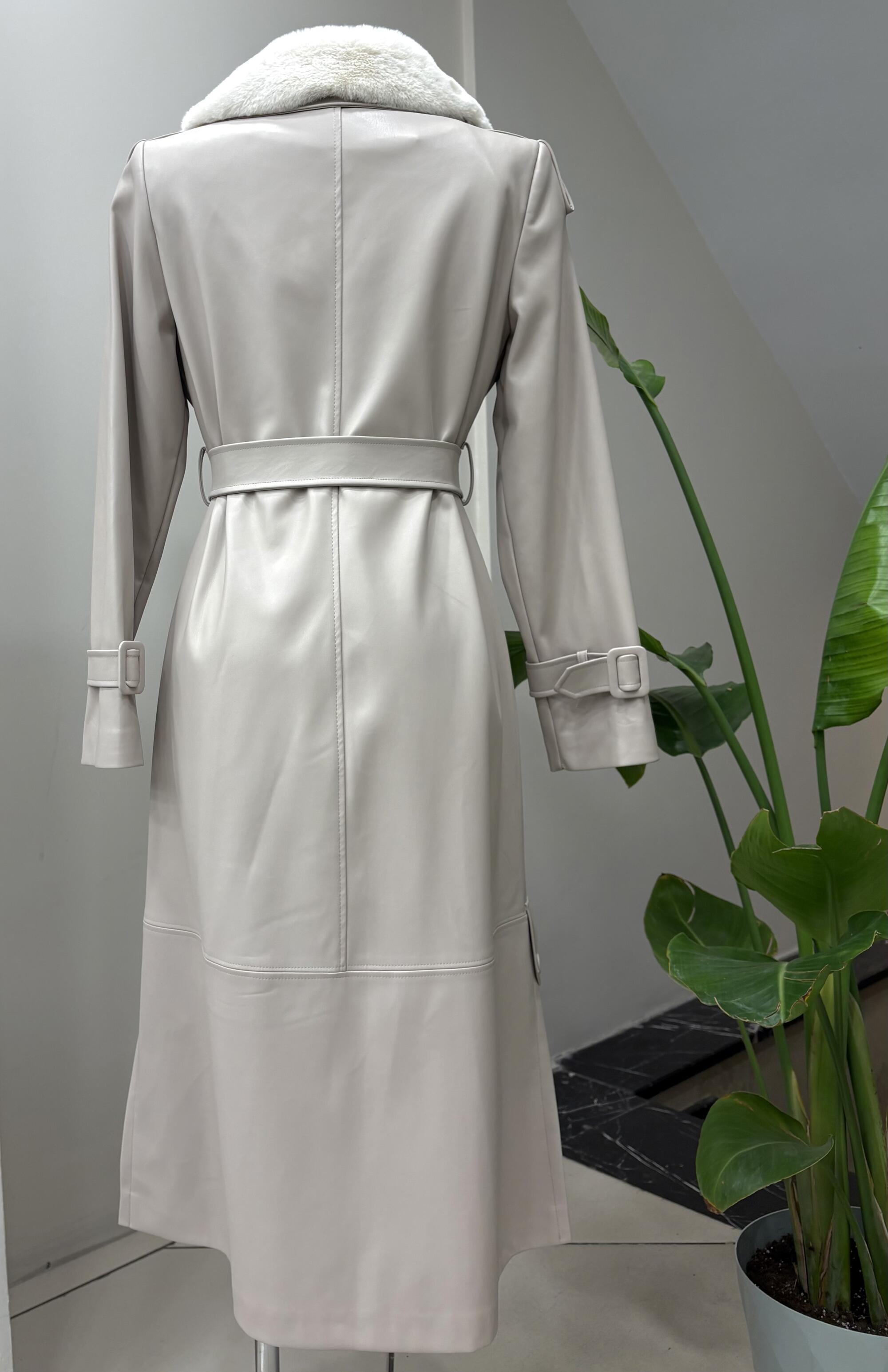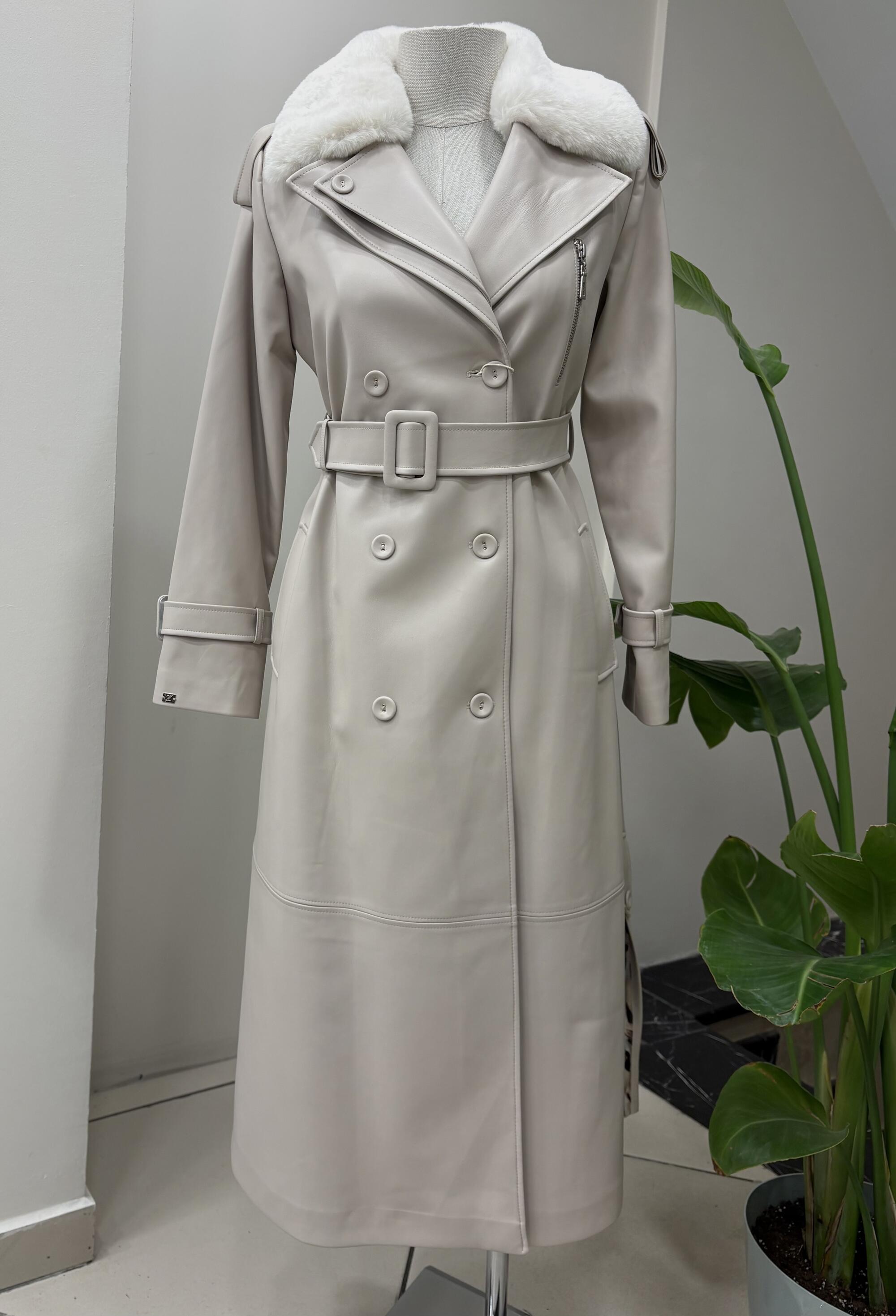 KÜRK YAKA KEMERLİ DERİ TRENÇKOT