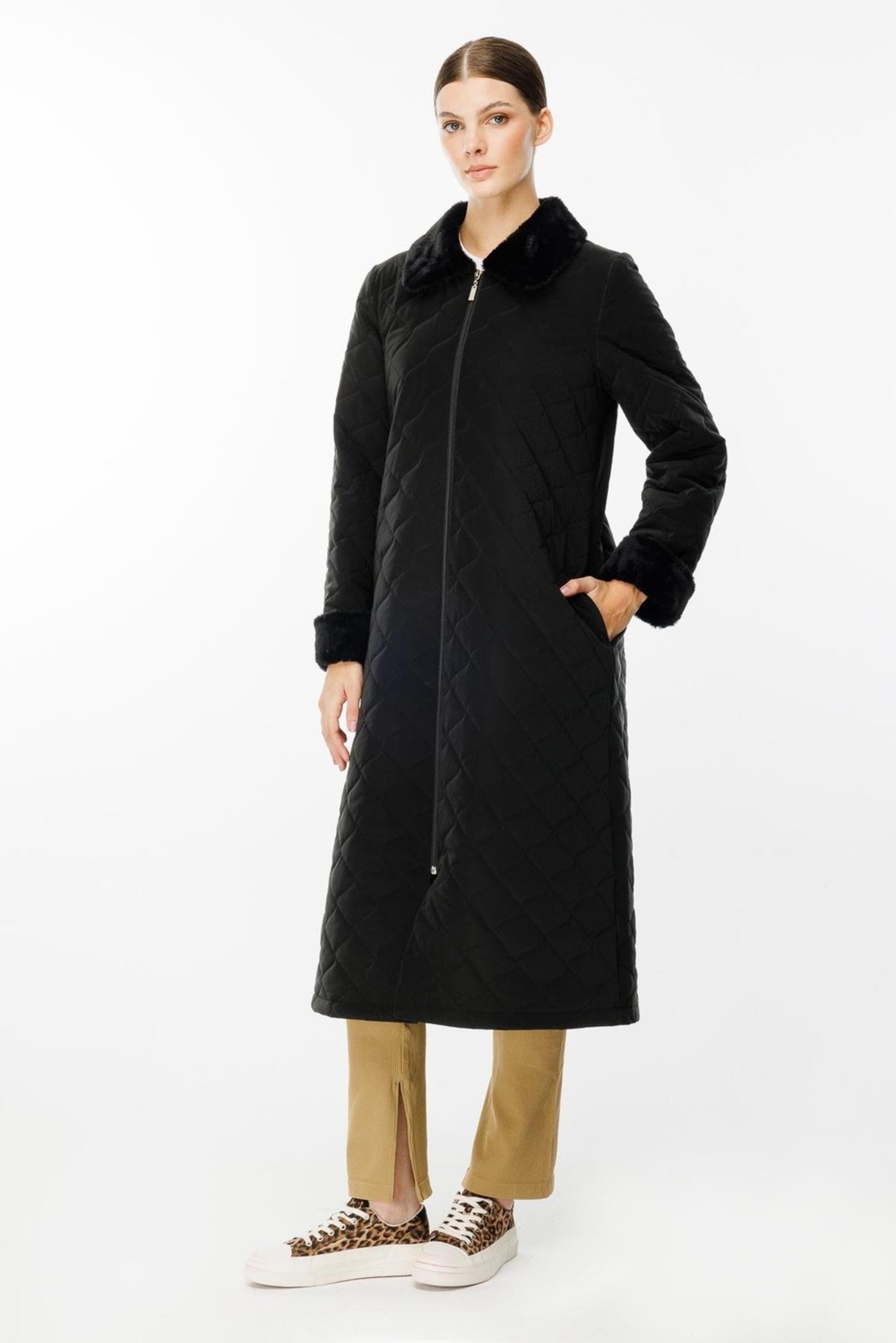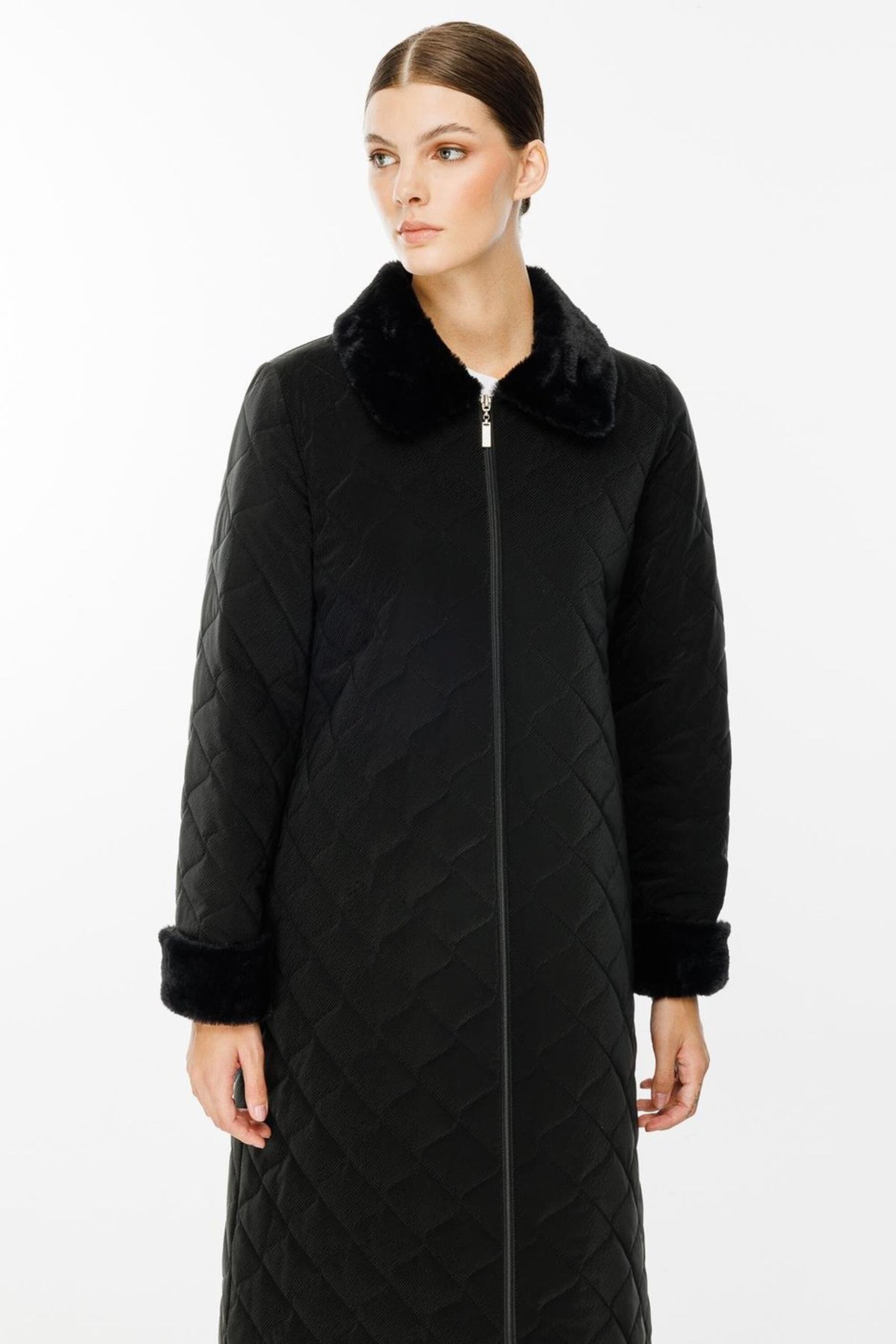 KÜRK YAKALI BAKLAVA DESEN MONT