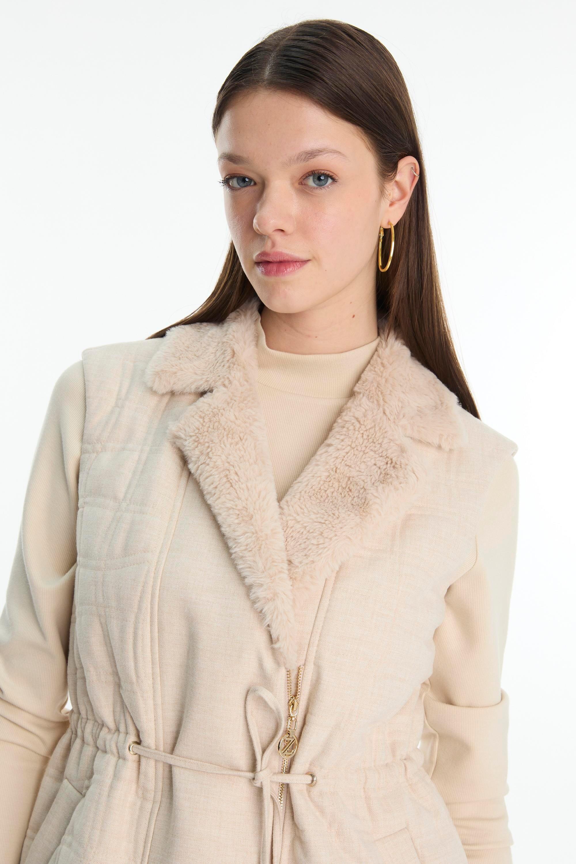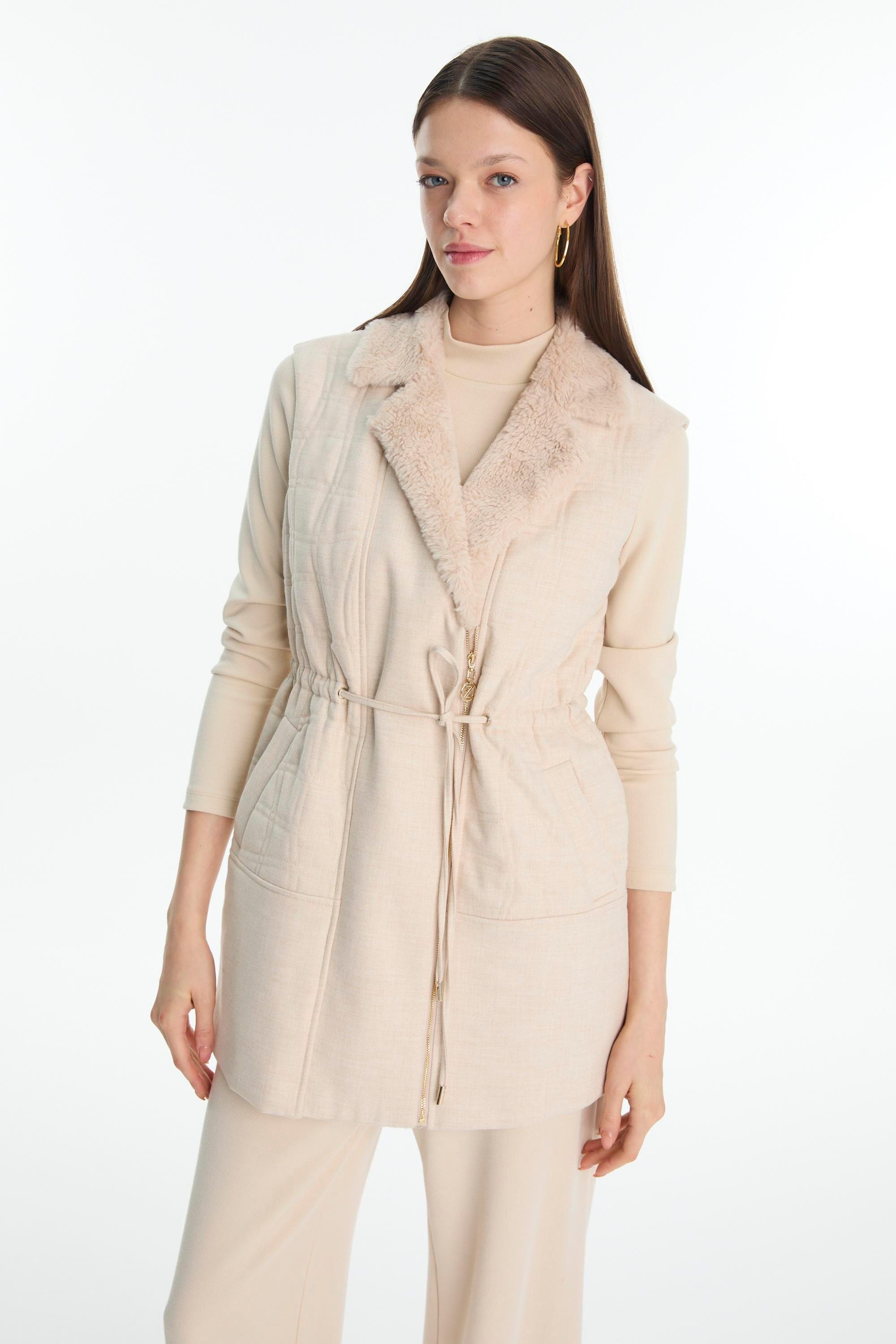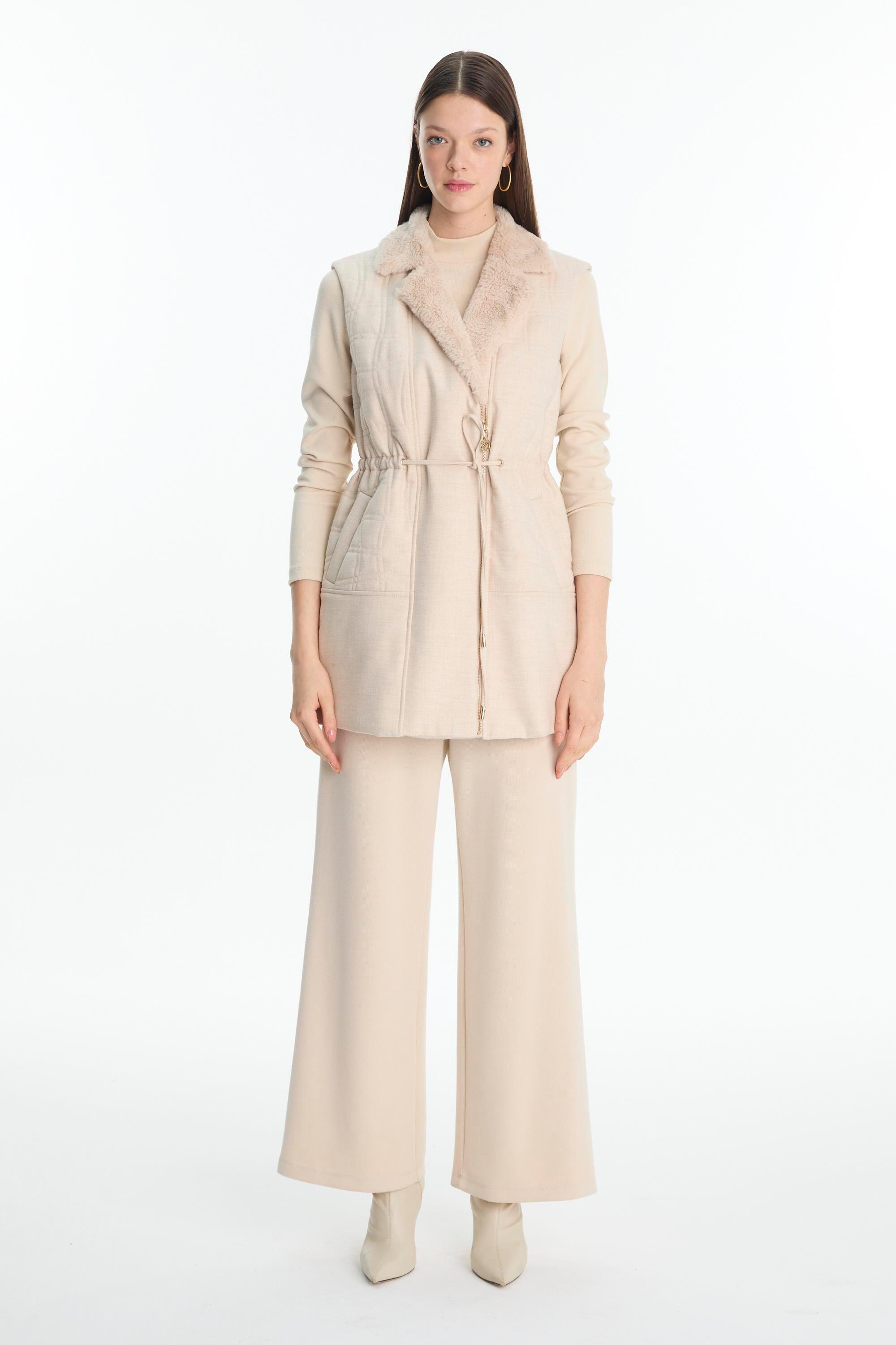 KÜRK YAKALI YELEKLİ PANTOLONLU TAKIM
