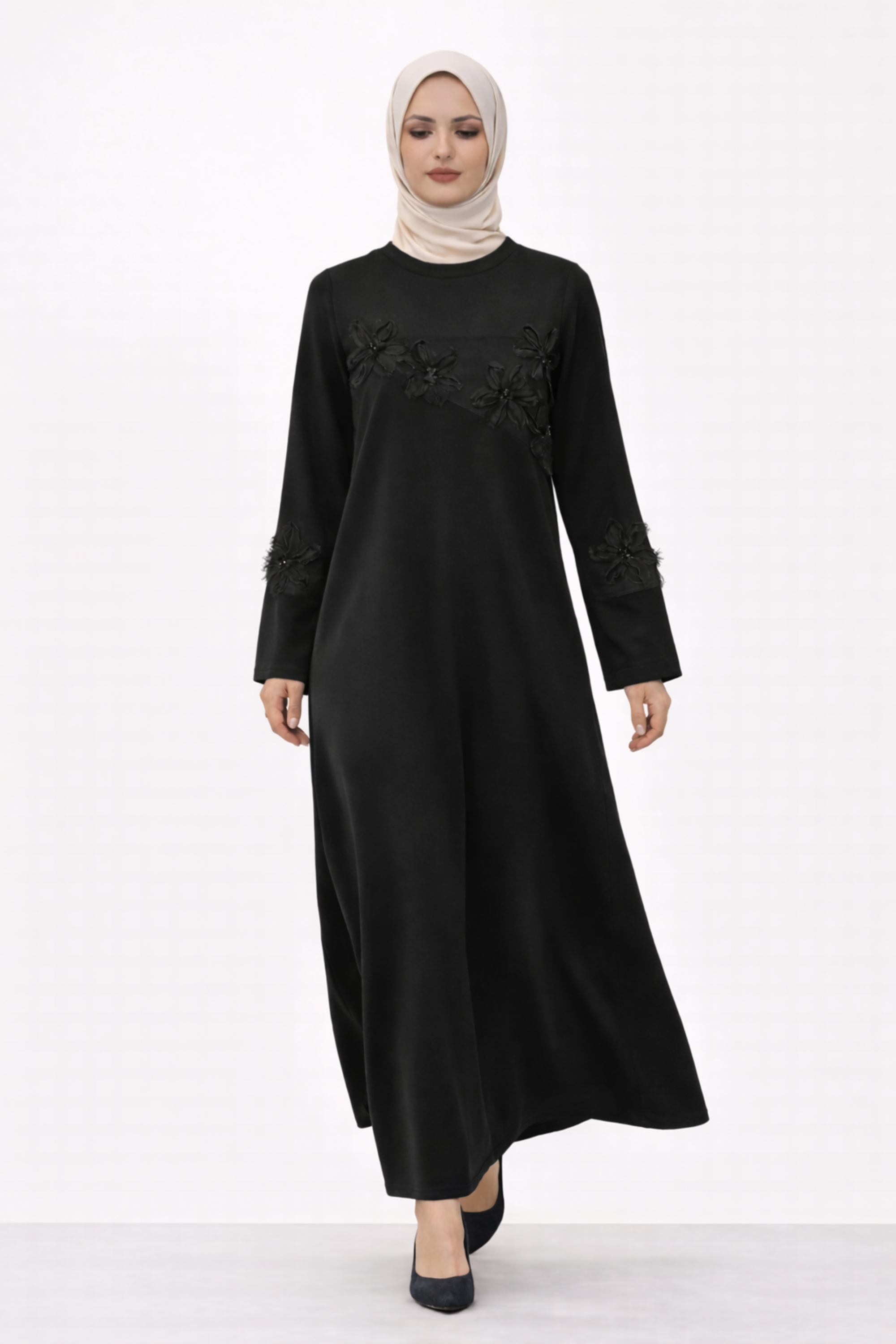 *LAZER KESİM ÇİÇEKLİ ELBİSE