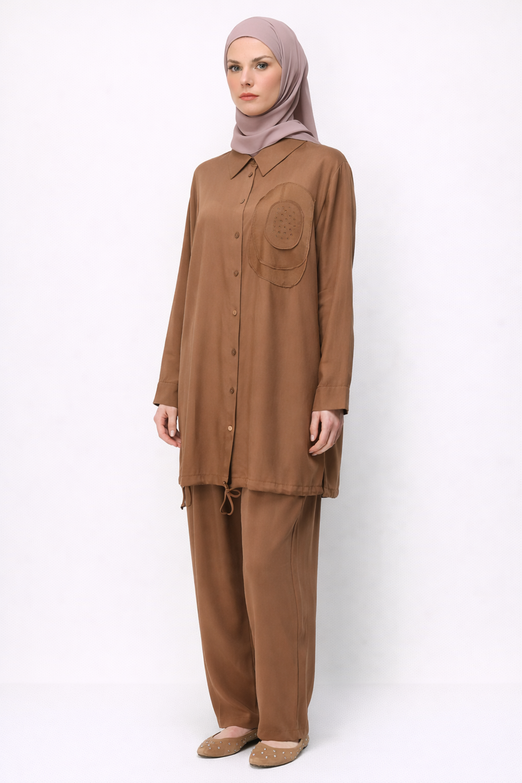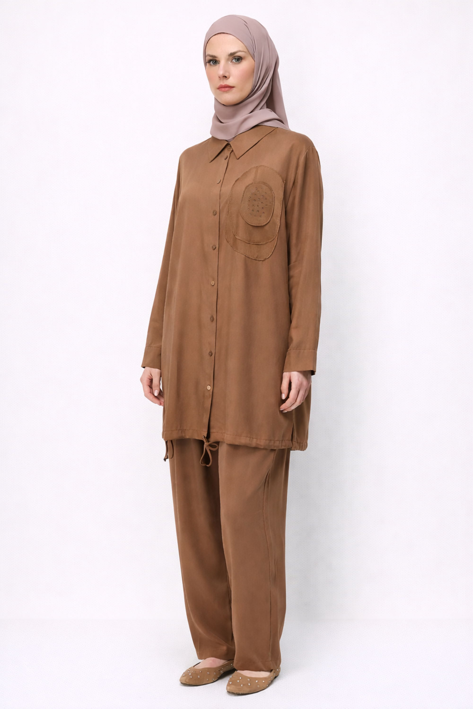 NAKIŞ VE TAŞ İŞLEMELİ PANTOLONLU TAKIM