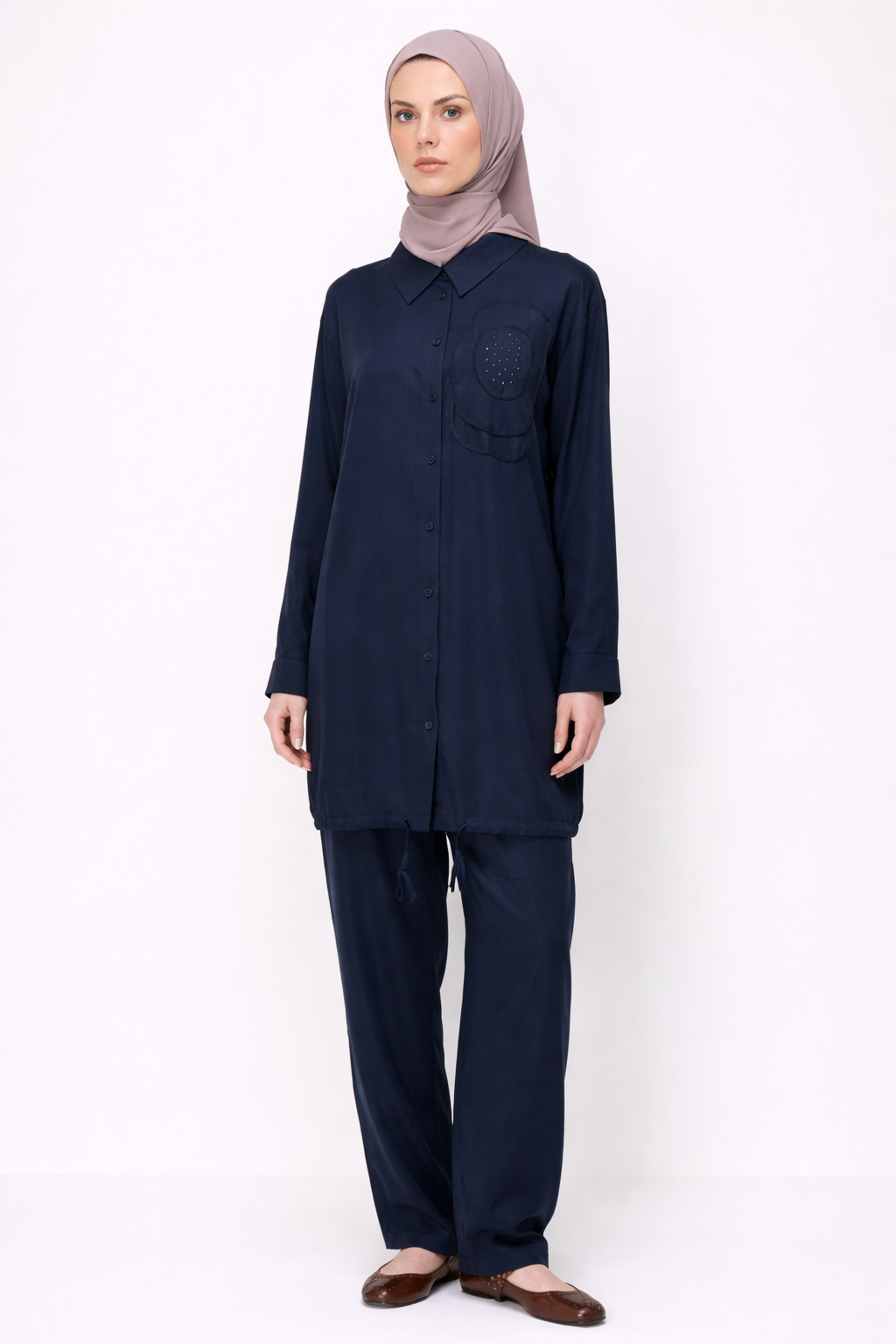 NAKIŞ VE TAŞ İŞLEMELİ PANTOLONLU TAKIM