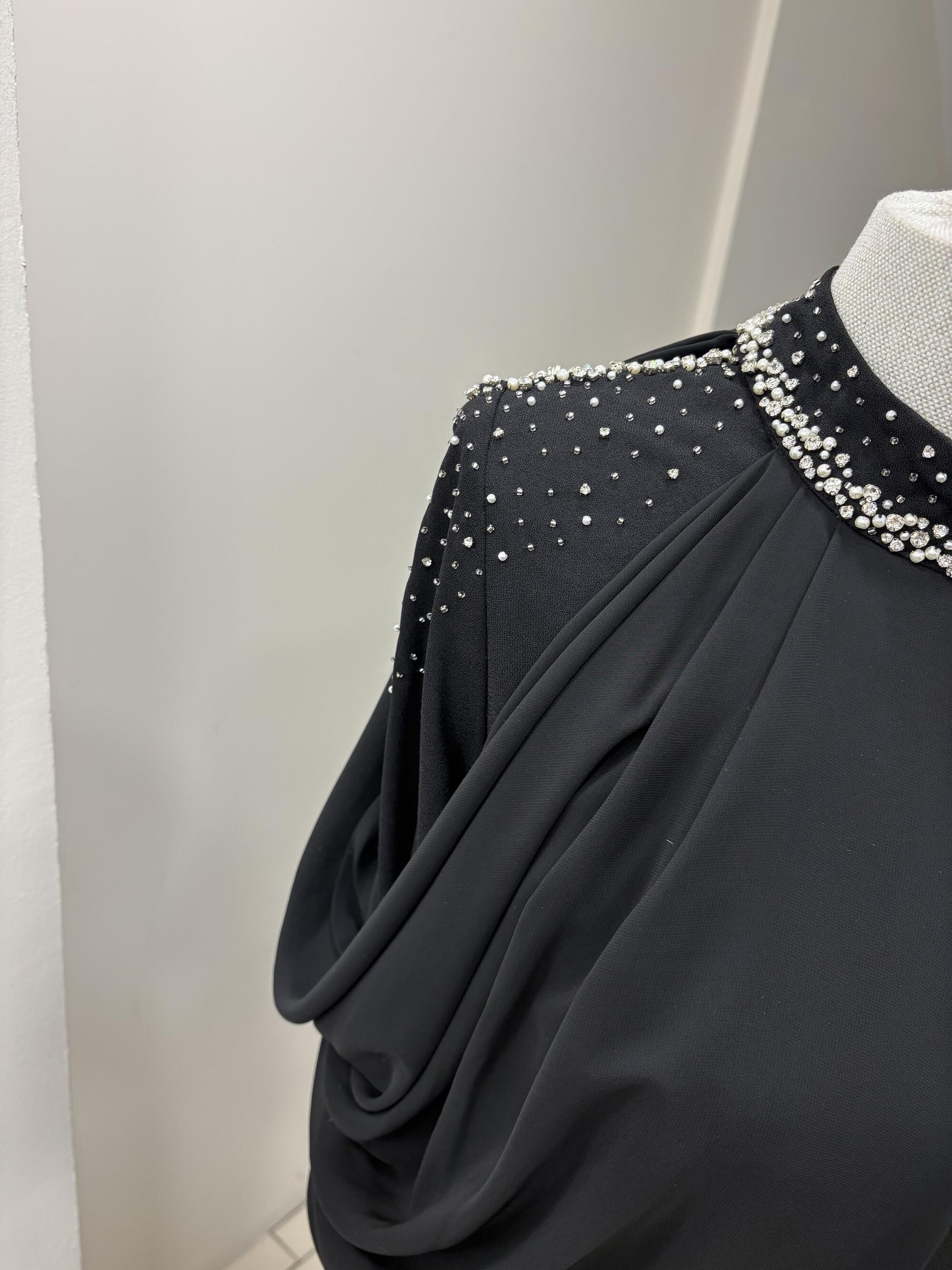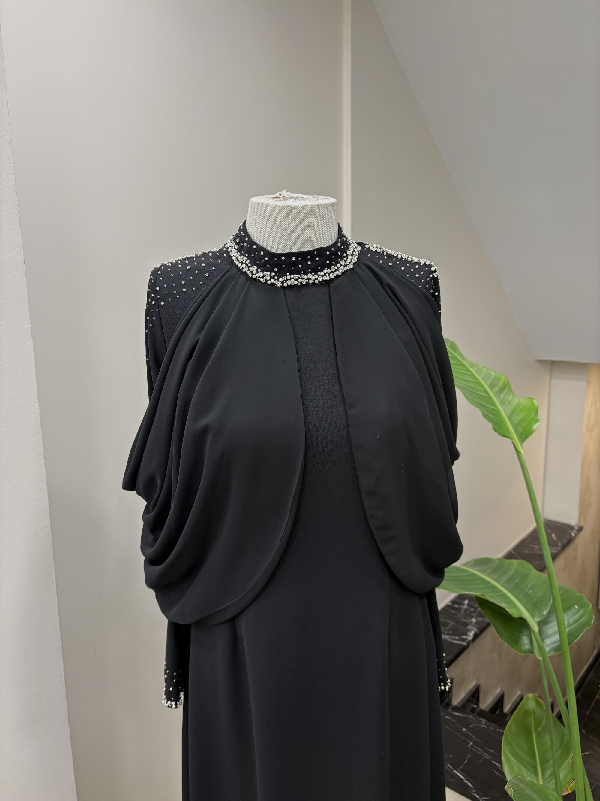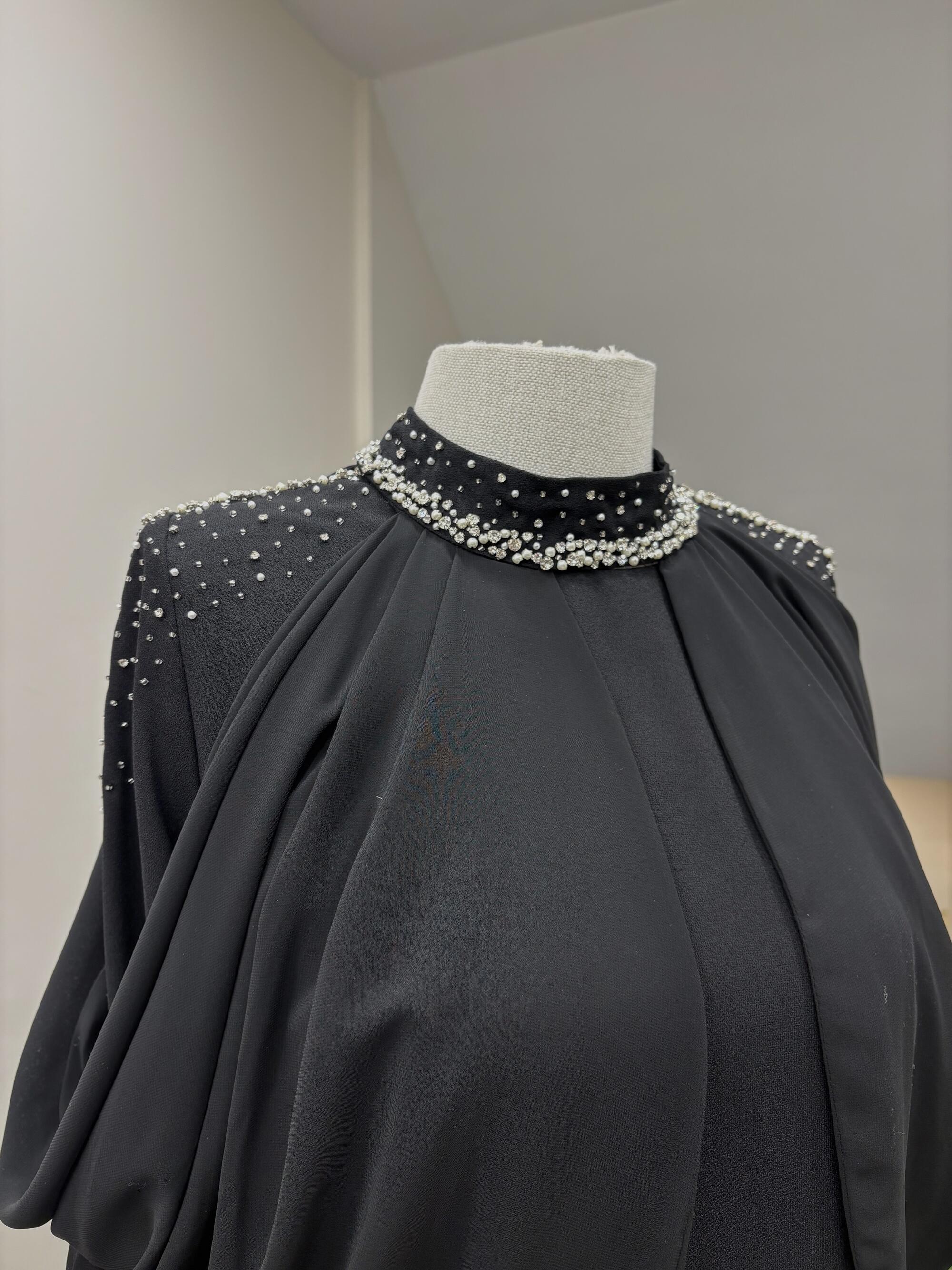 OMUZ DRAPELİ TAŞ İŞLEMELİ ELBİSE