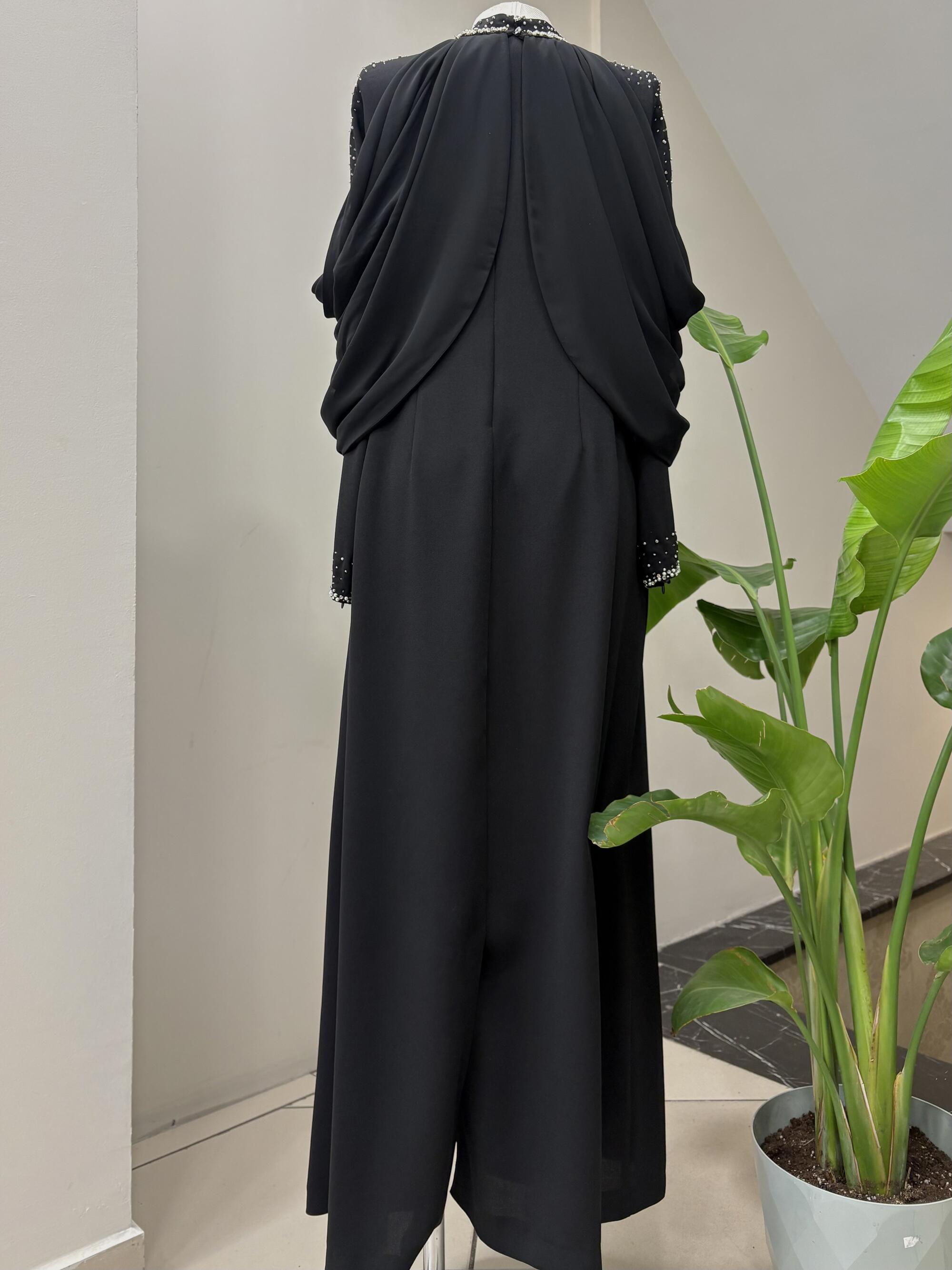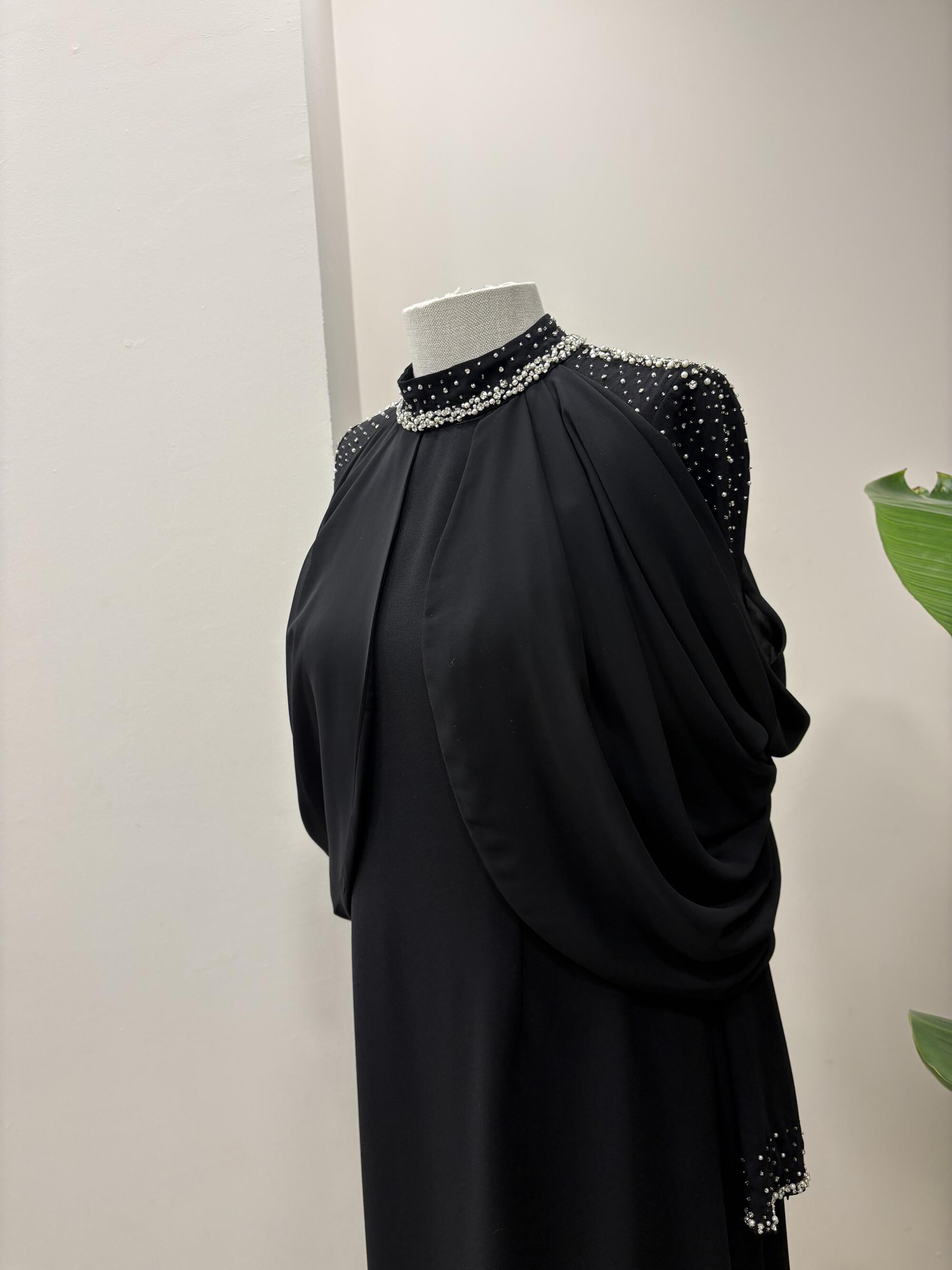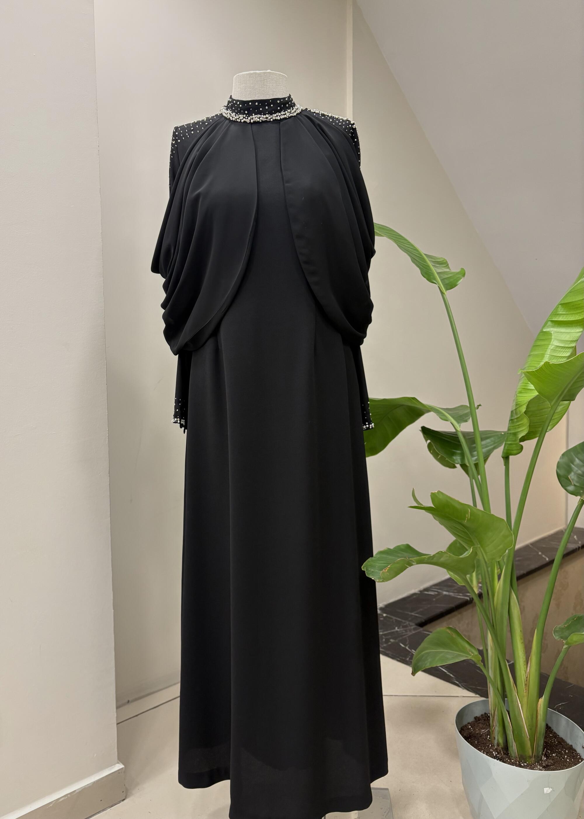 OMUZ DRAPELİ TAŞ İŞLEMELİ ELBİSE