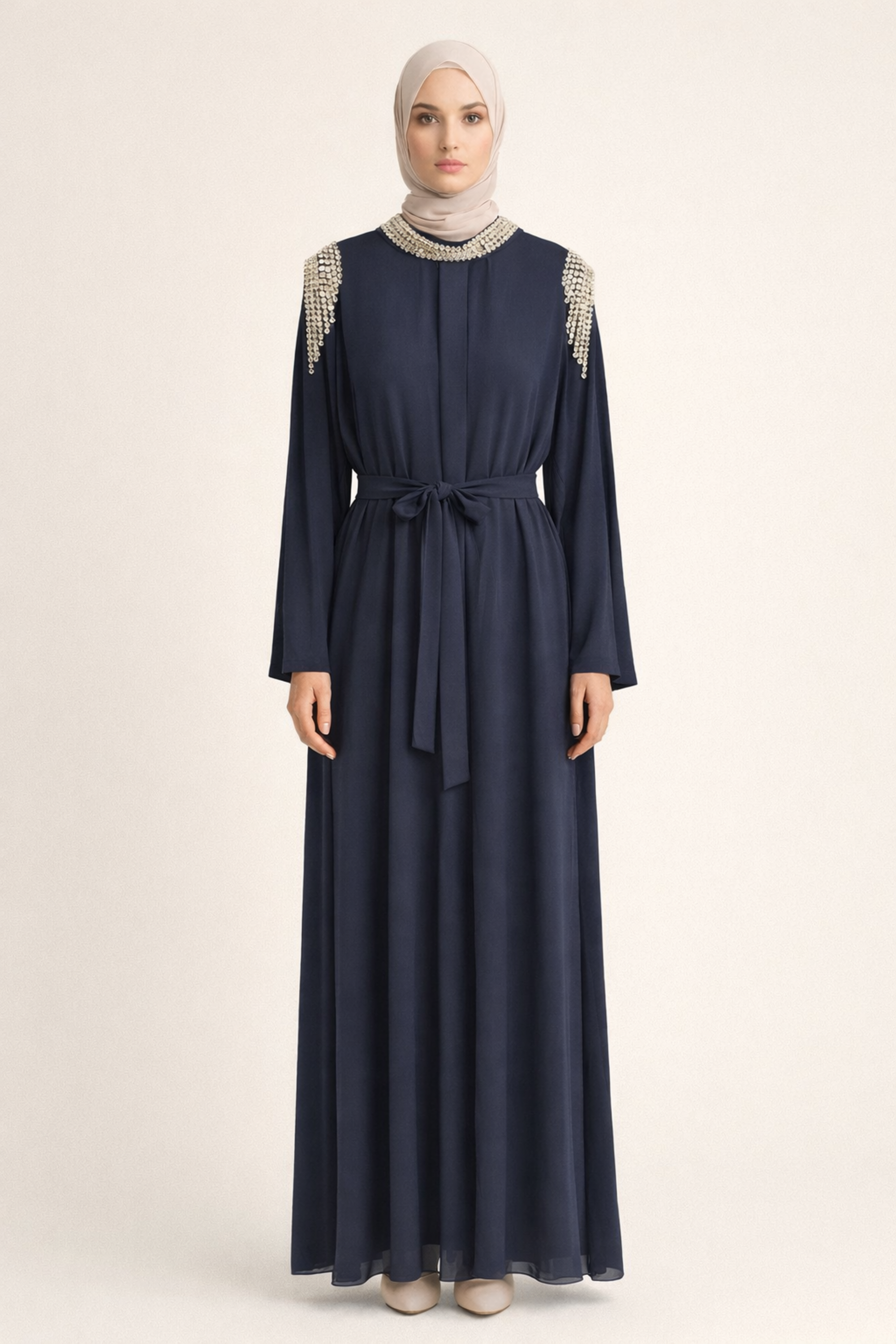 OMUZ TAŞ DETAYLI ZAMBAK ABAYA