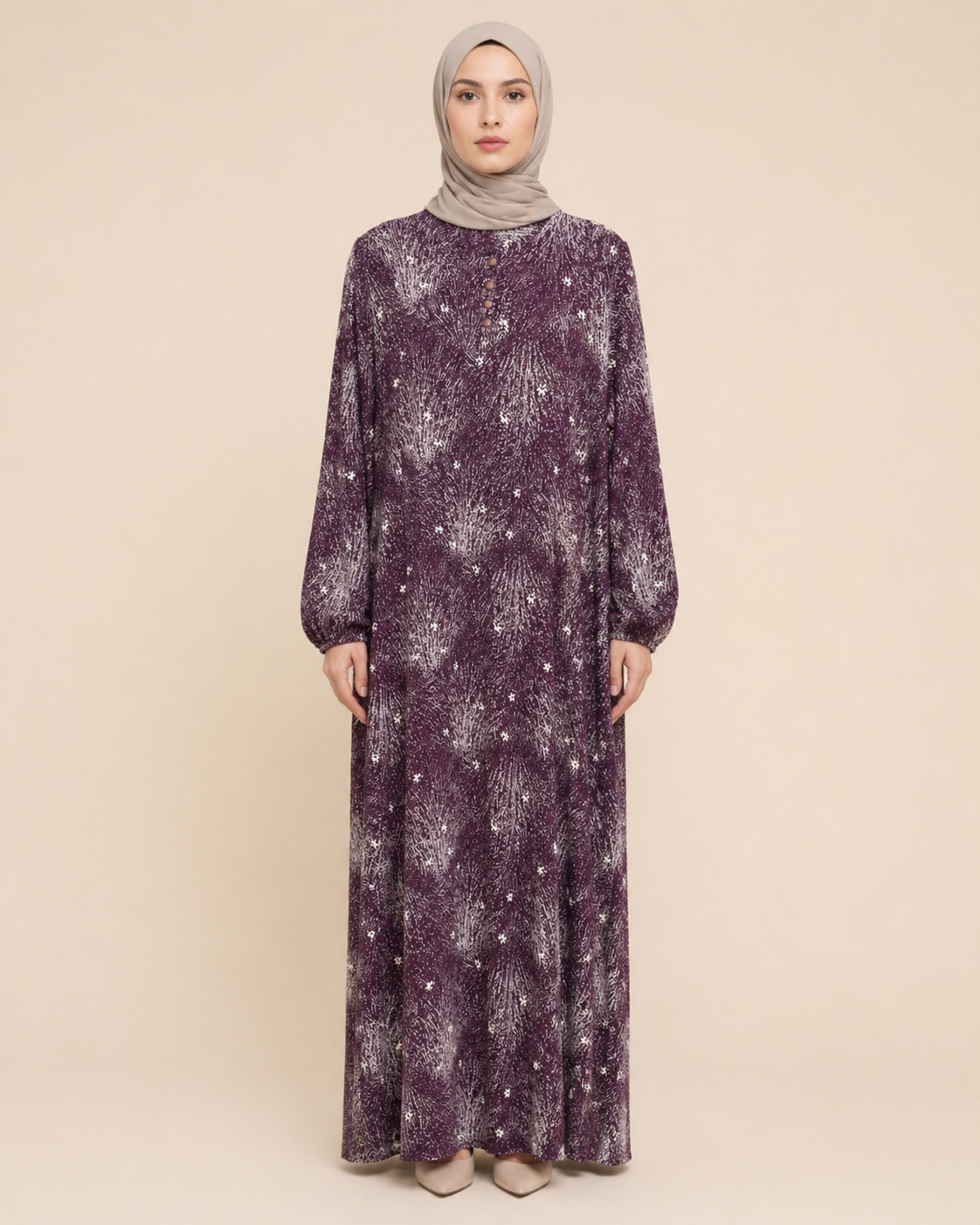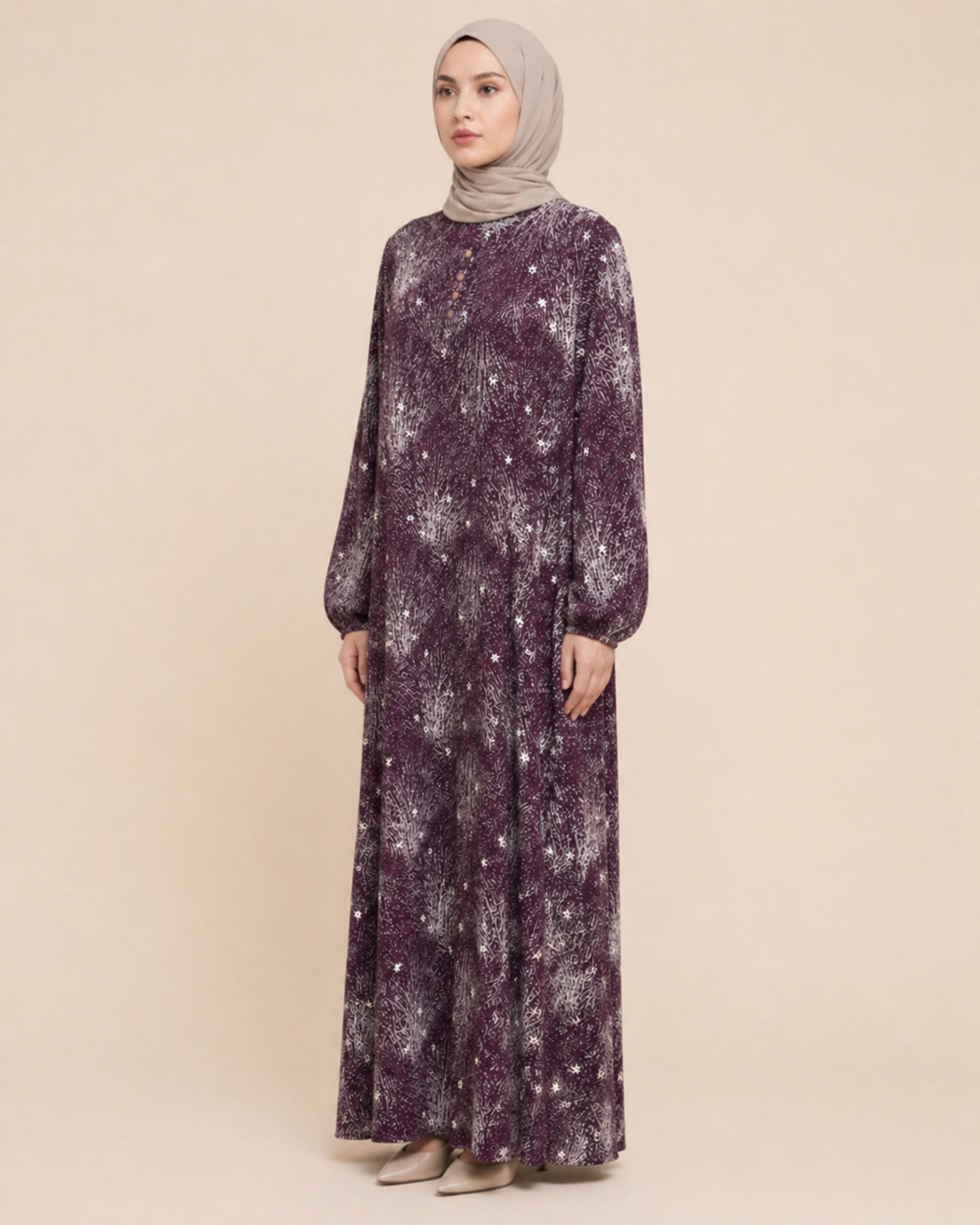 PARÇALI DESENLİ VİSKON ELBİSE