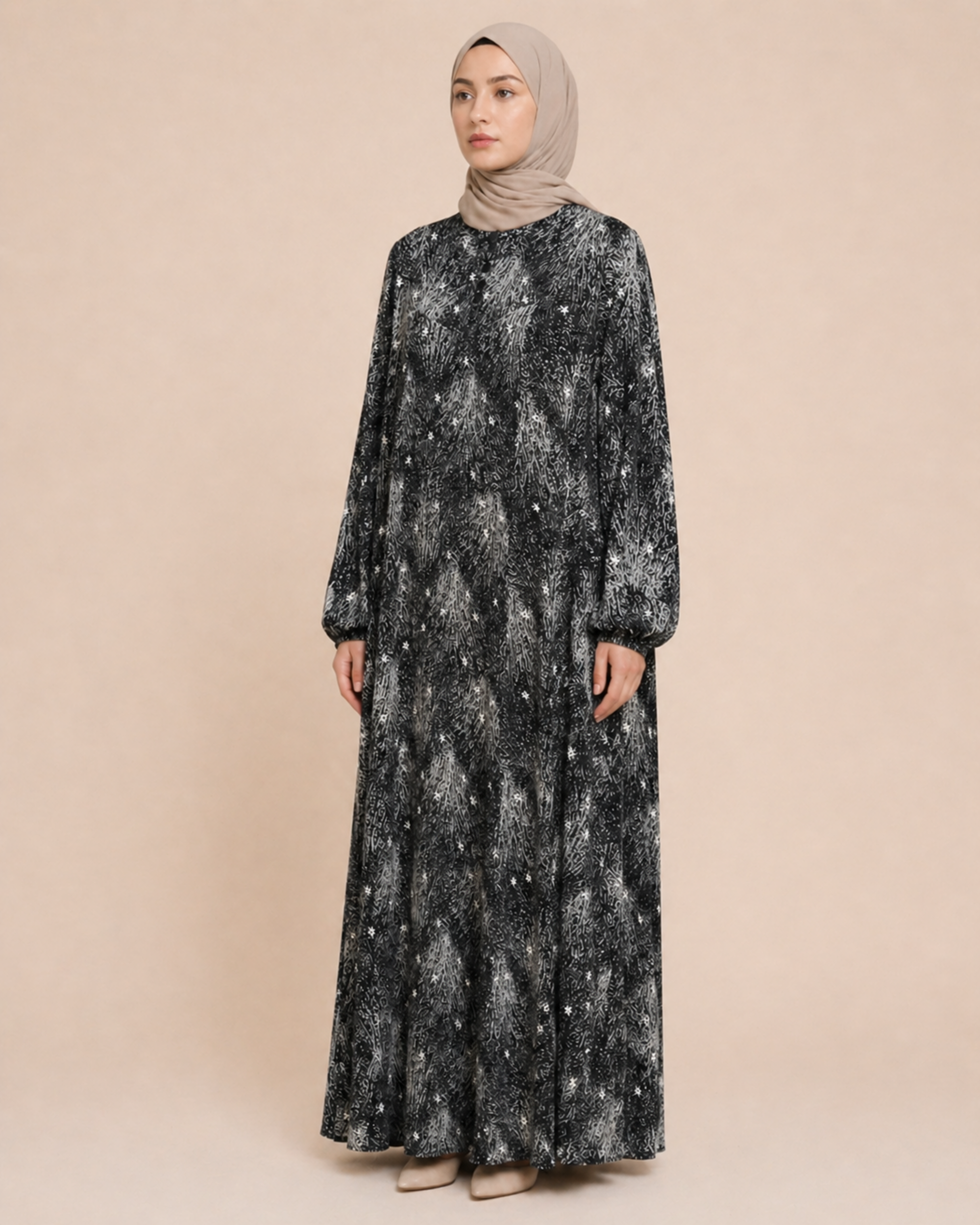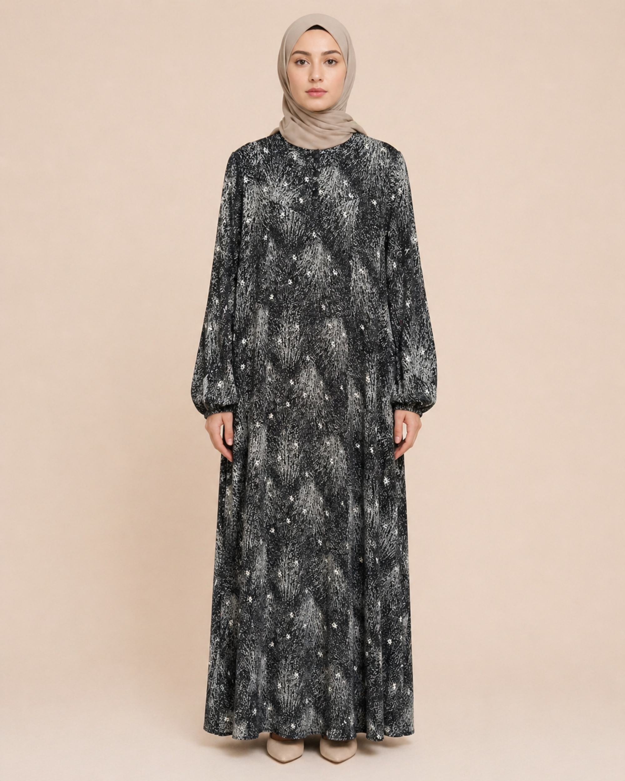 PARÇALI DESENLİ VİSKON ELBİSE