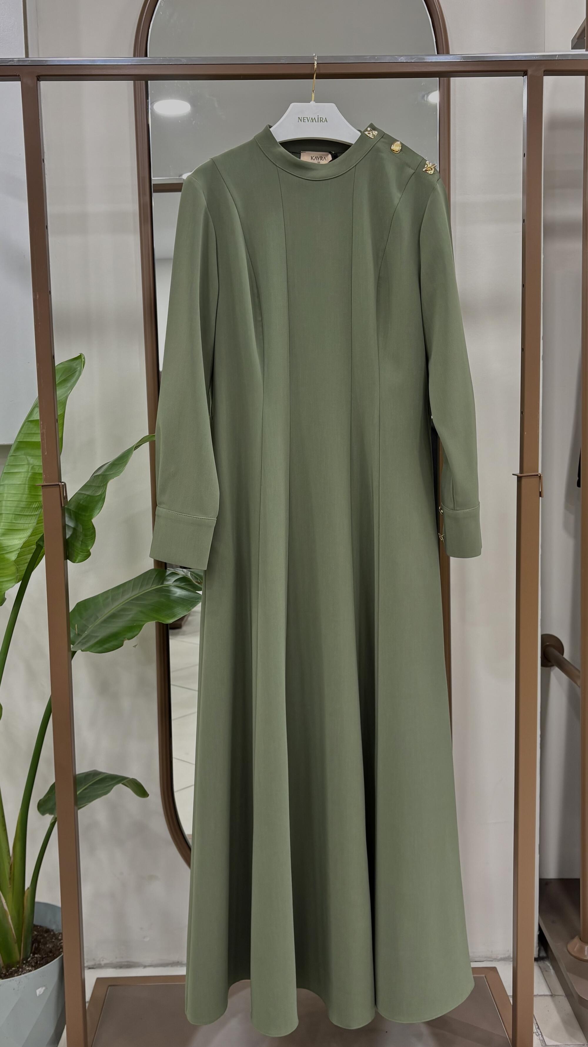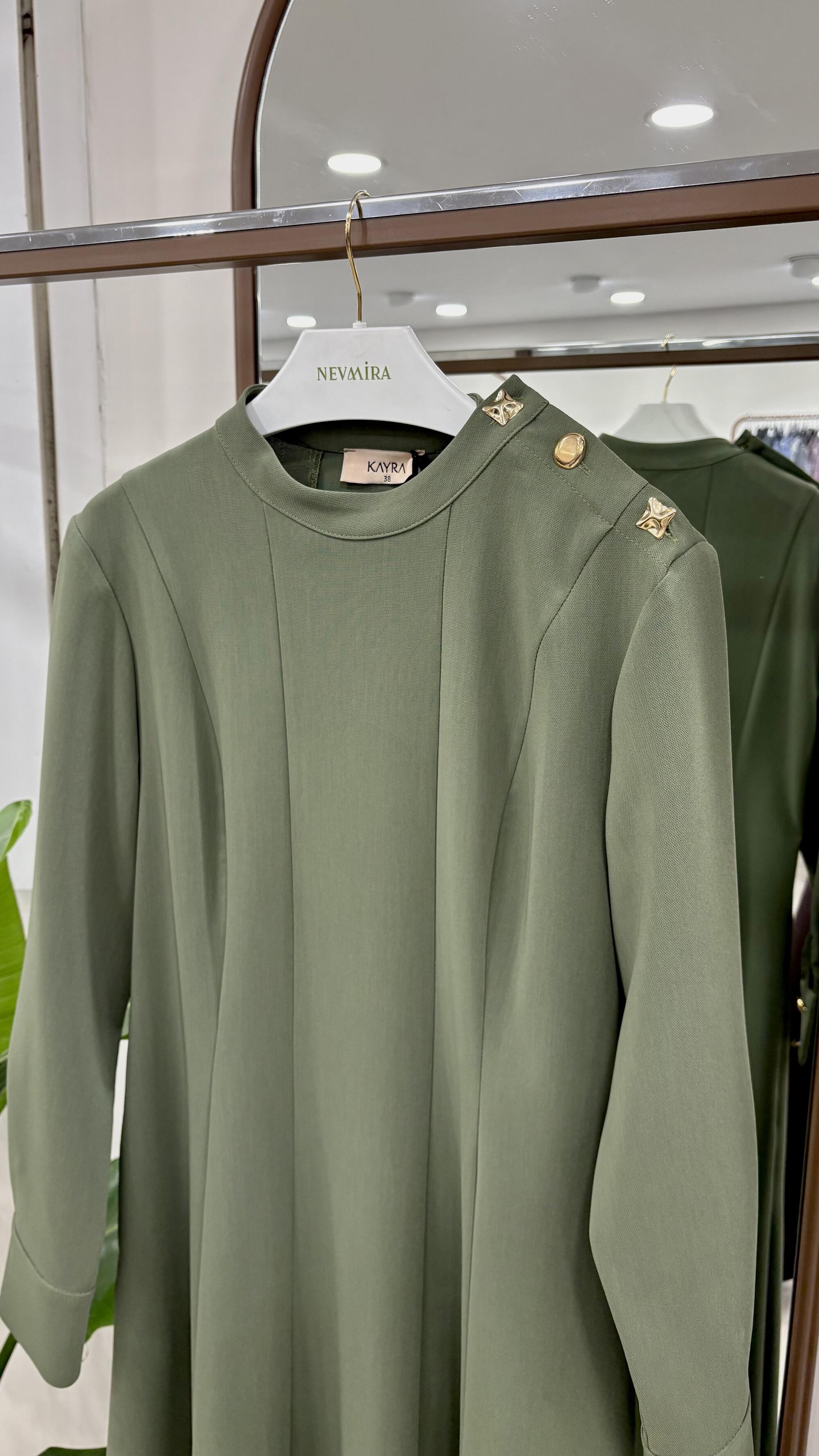 PARLAK DÜĞMELİ PARÇALI ELBİSE