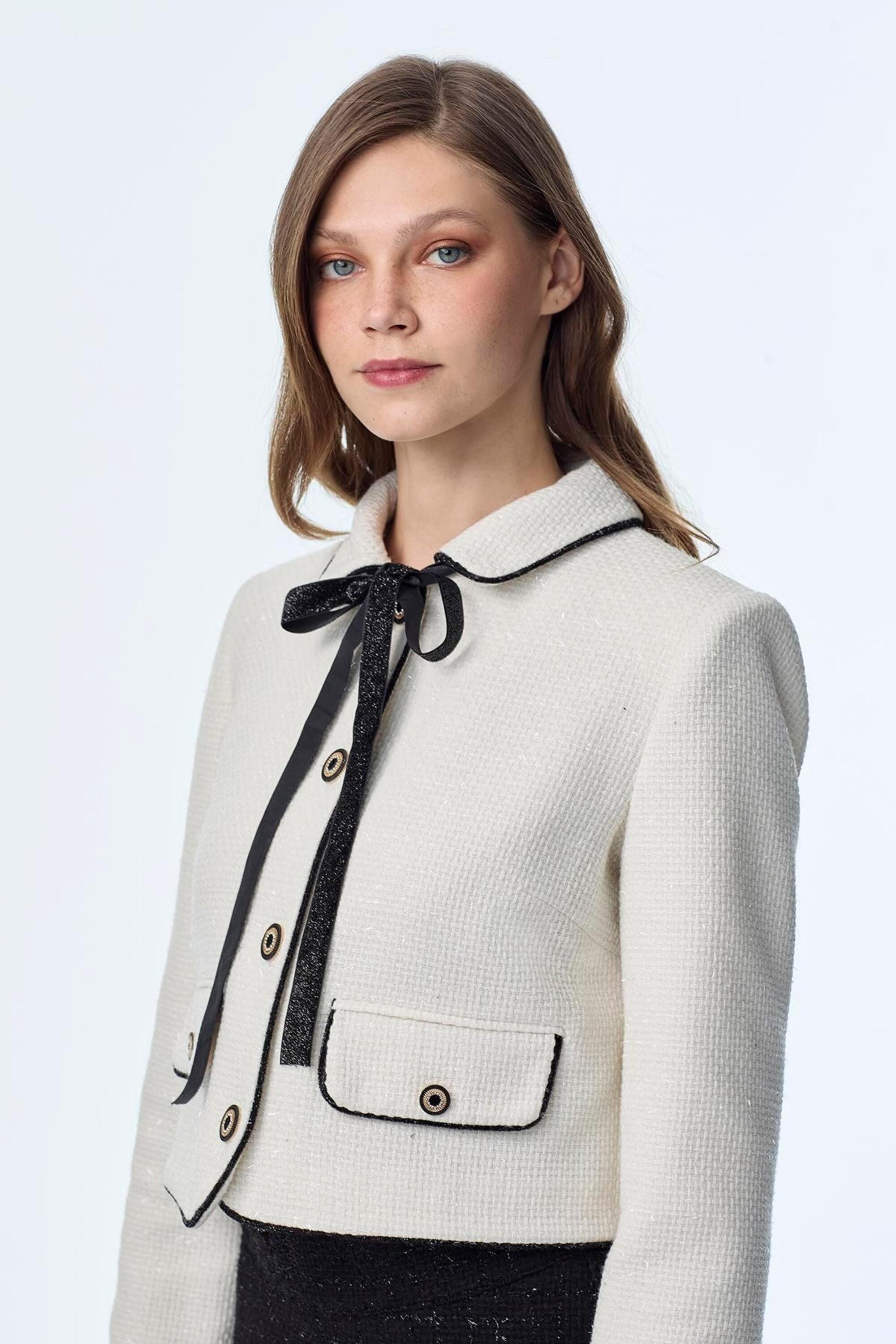 Ceket: Uzun kollu, Gold düğme detaylı, Kruvaze yaka, Kısa kesim,Fiyonk detaylı
