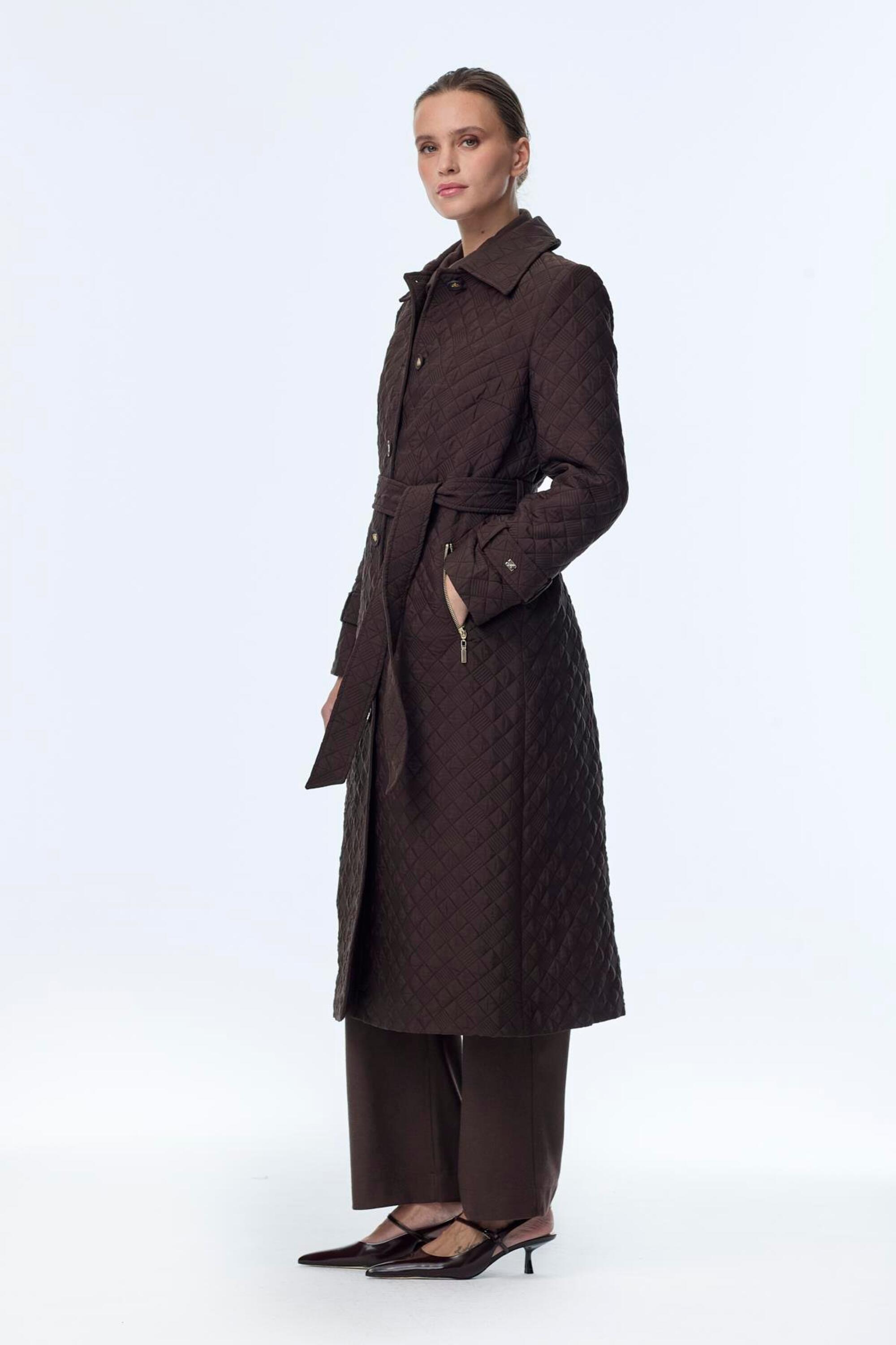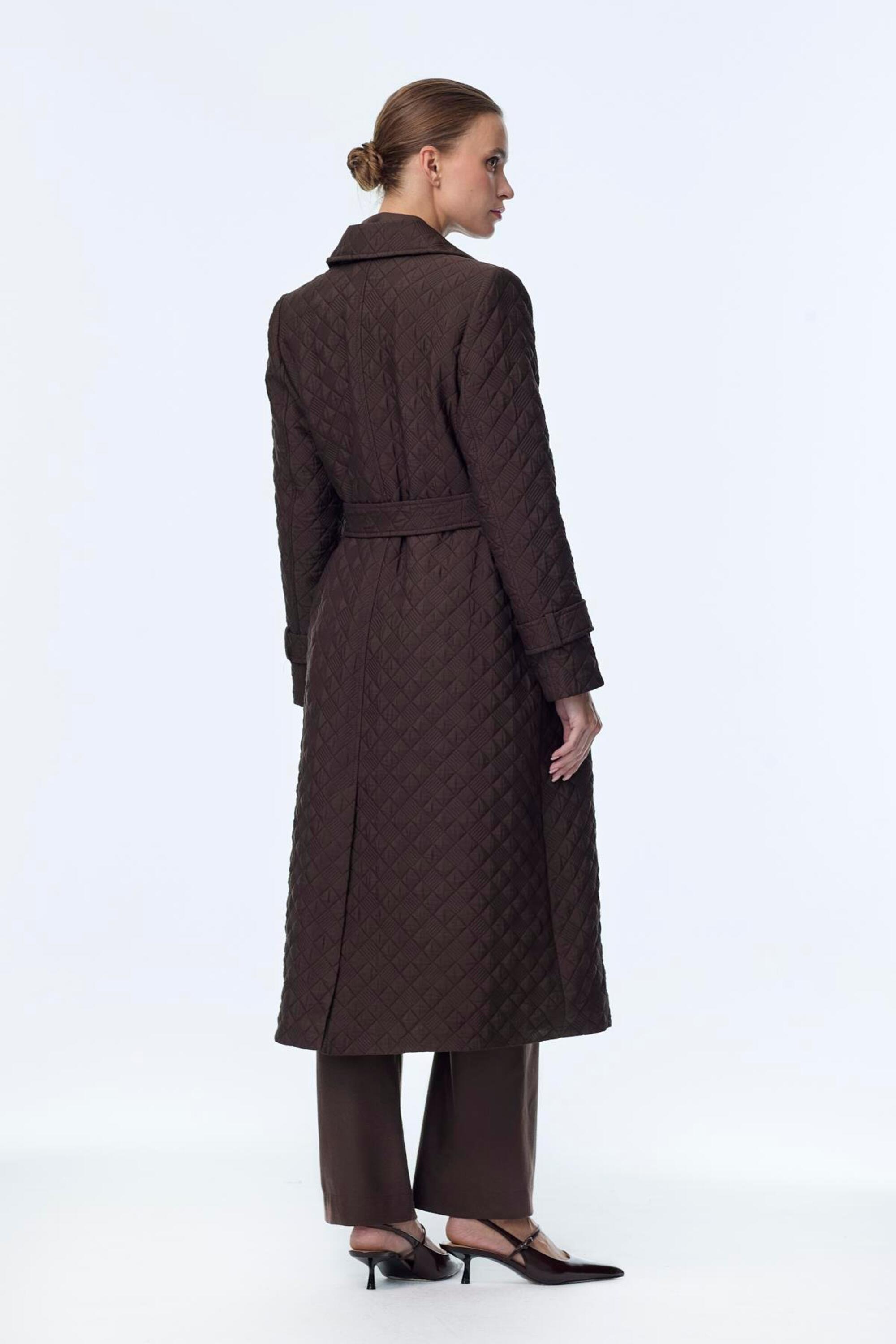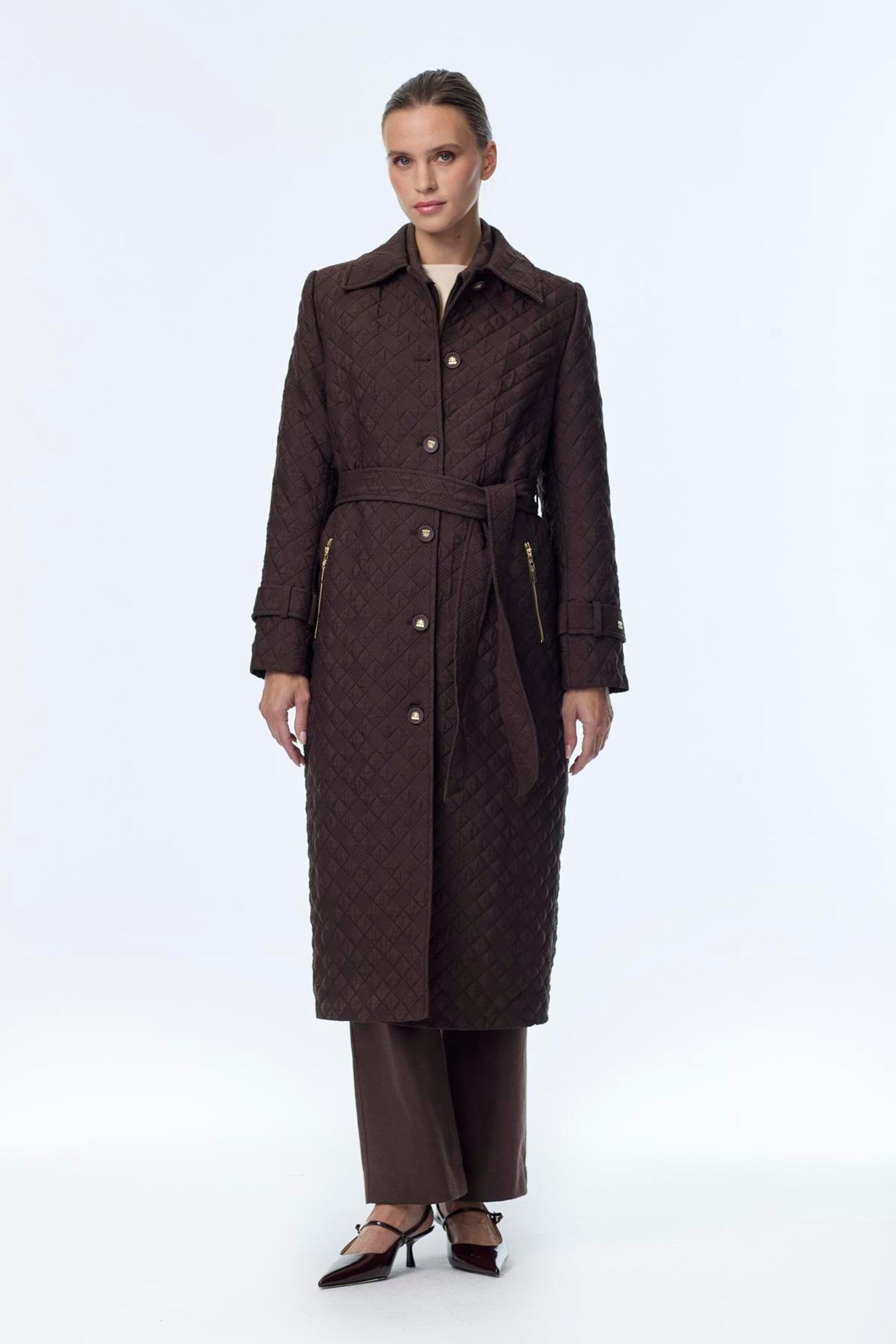 Kapitone desenli, Kuşak detaylı, Önden düğmeli, Uzun kesim, Cepli - AstarlıÜrün Ölçüleri: