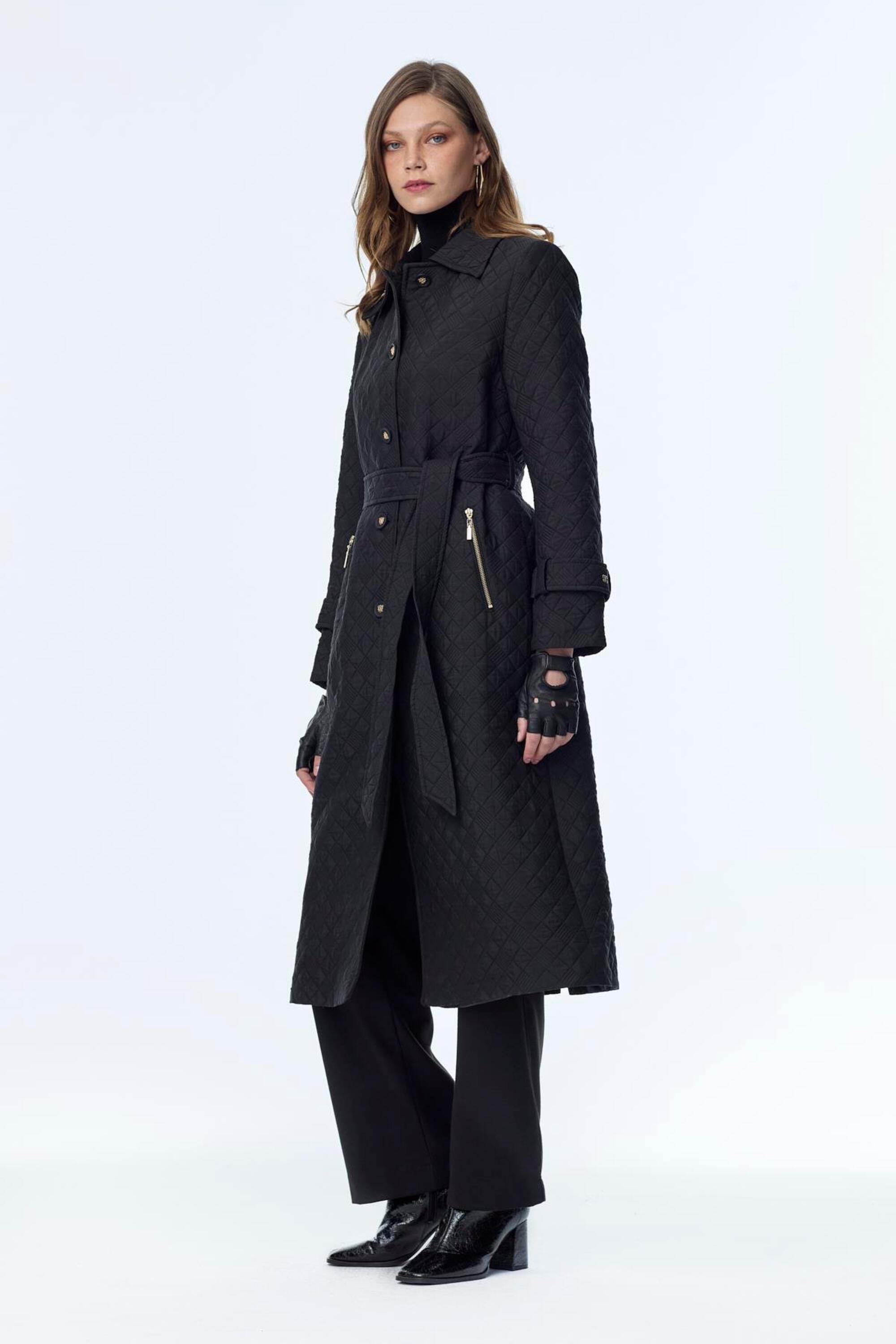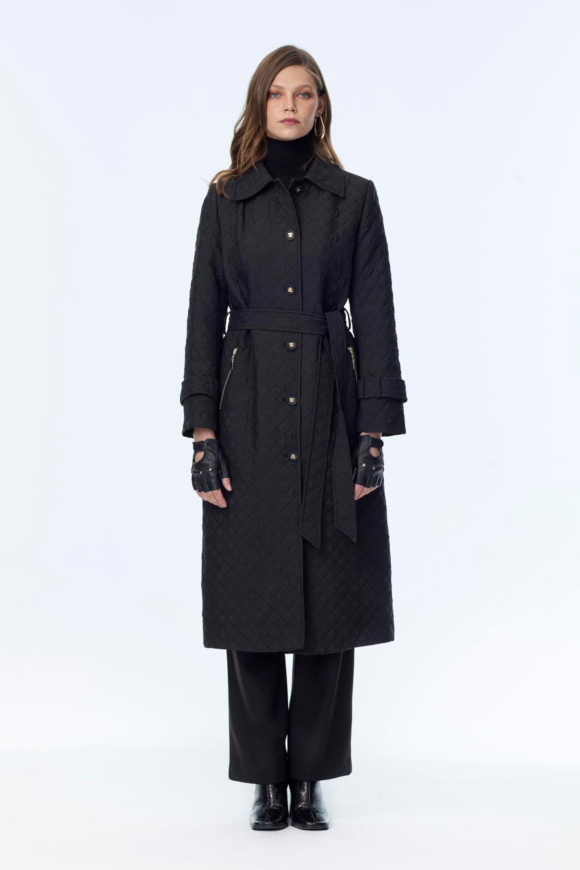 Kapitone desenli, Kuşak detaylı, Önden düğmeli, Uzun kesim, Cepli - AstarlıÜrün Ölçüleri: