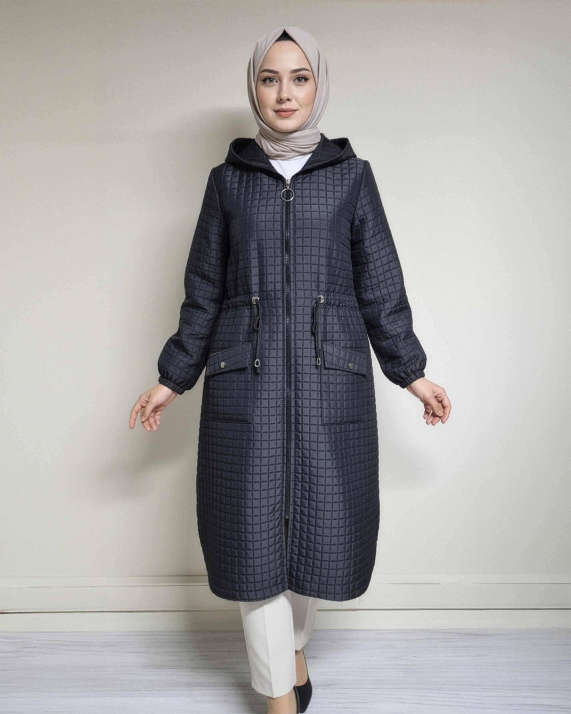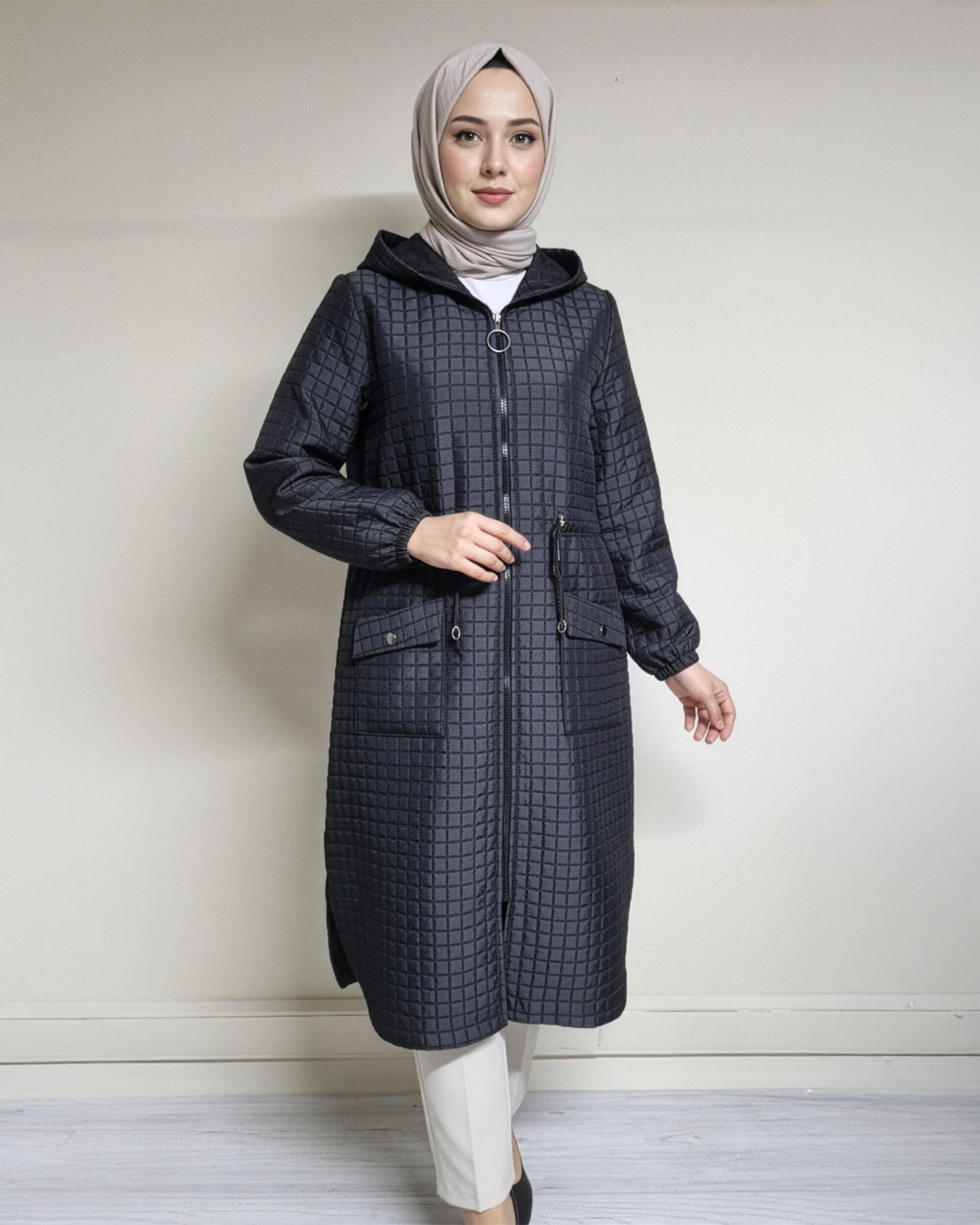 TORBA CEPLİ KAPŞONLU KISA MONT