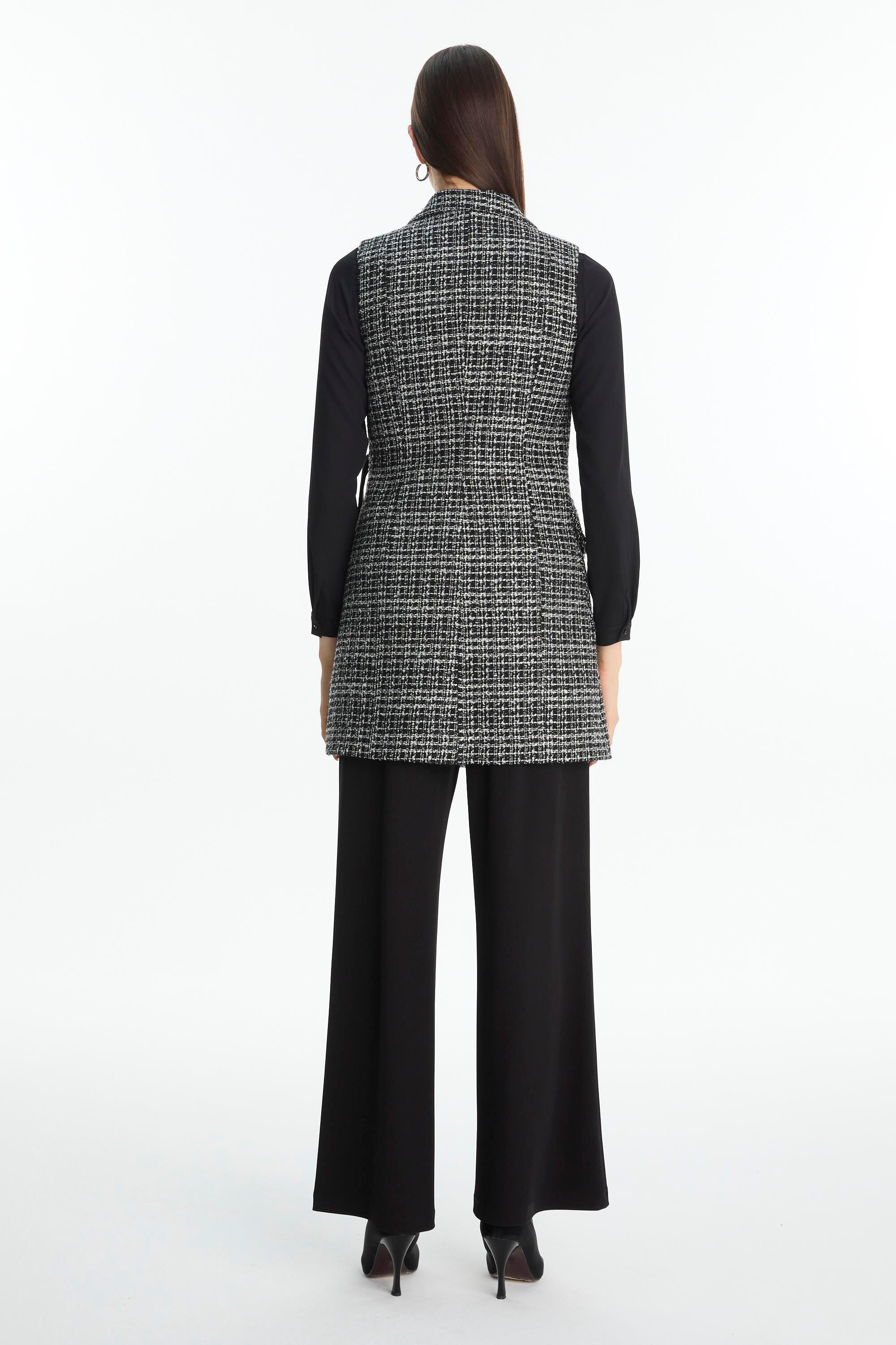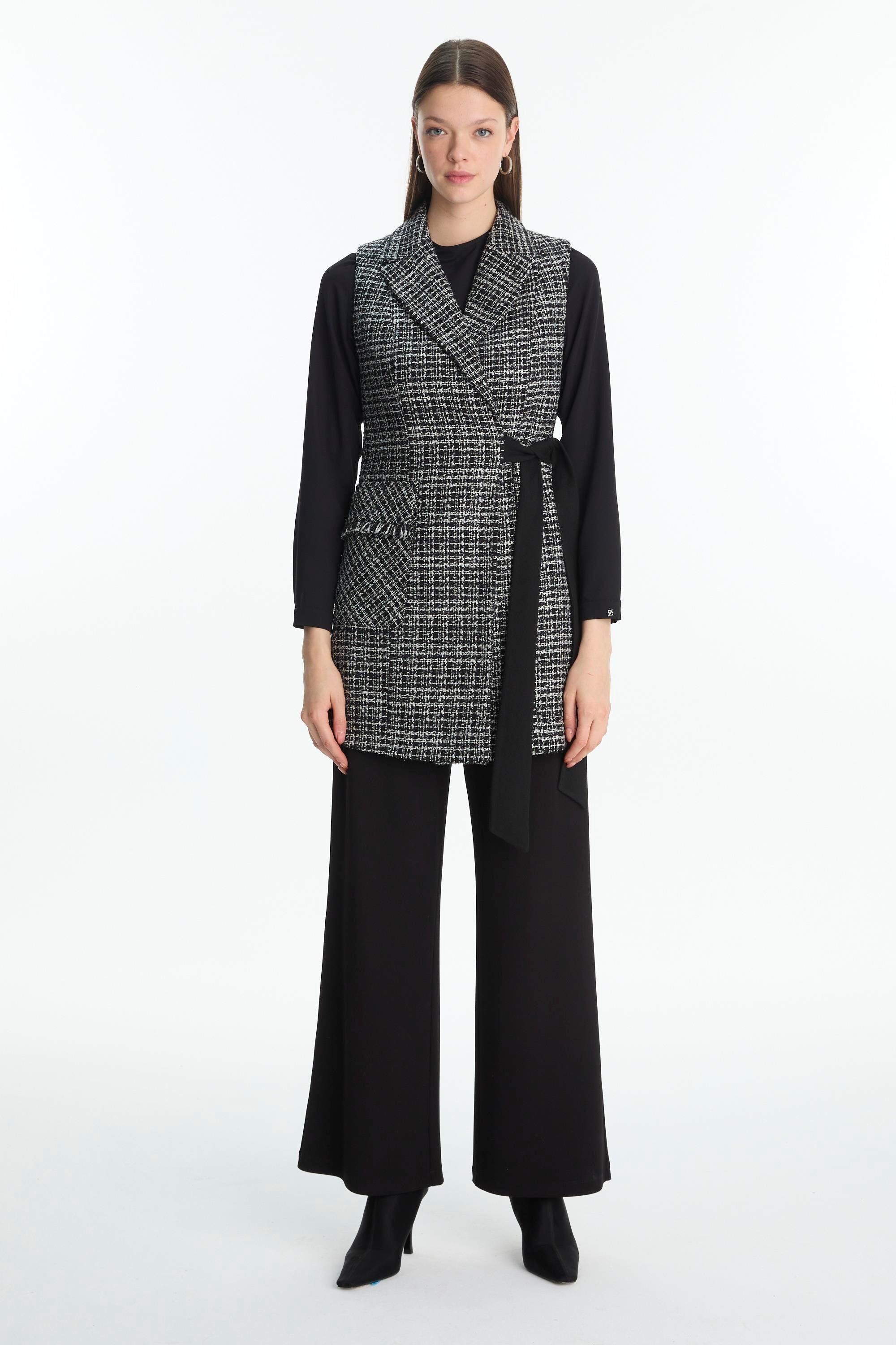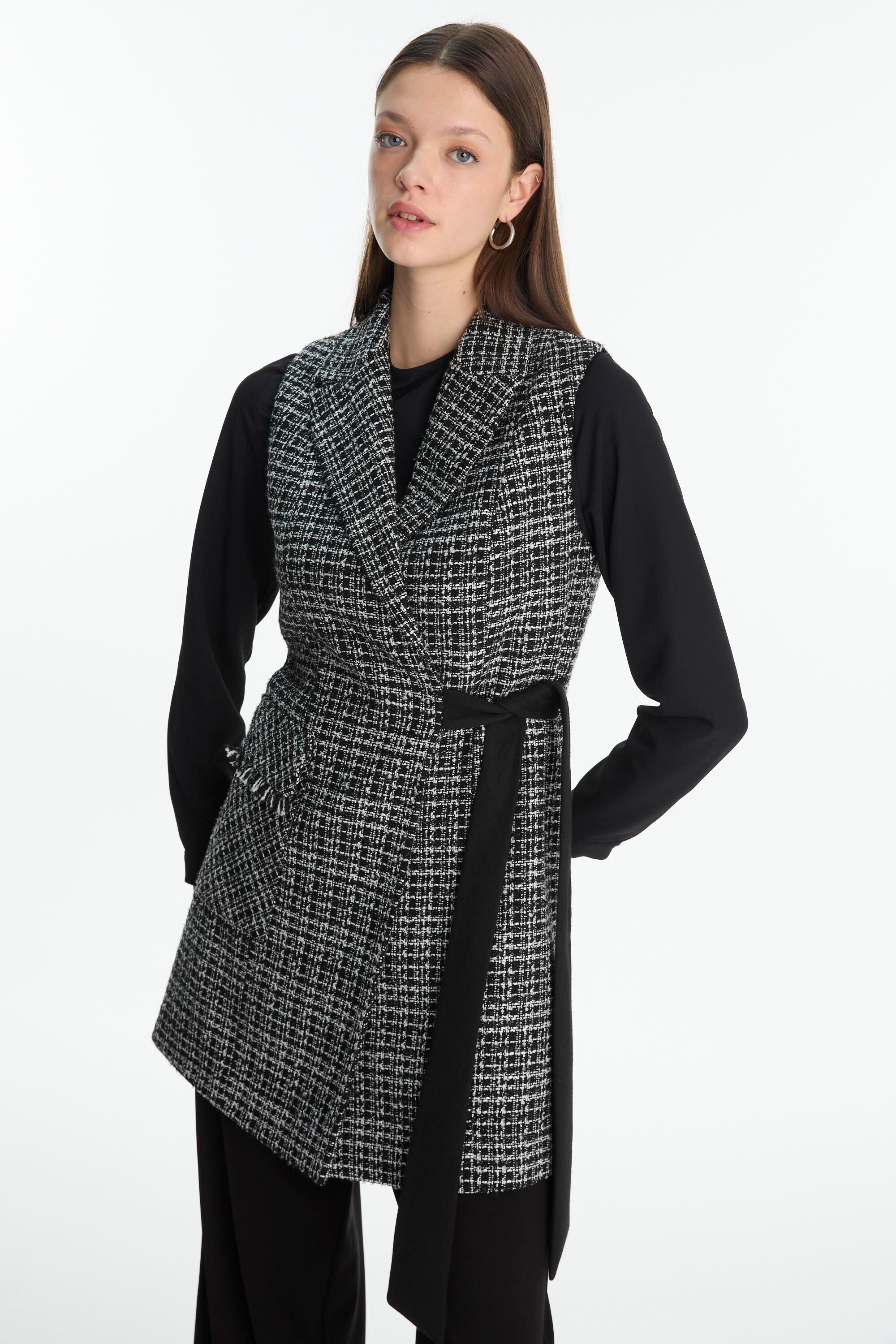 TWEED DESENLİ KUŞAKLI YELEKLİ