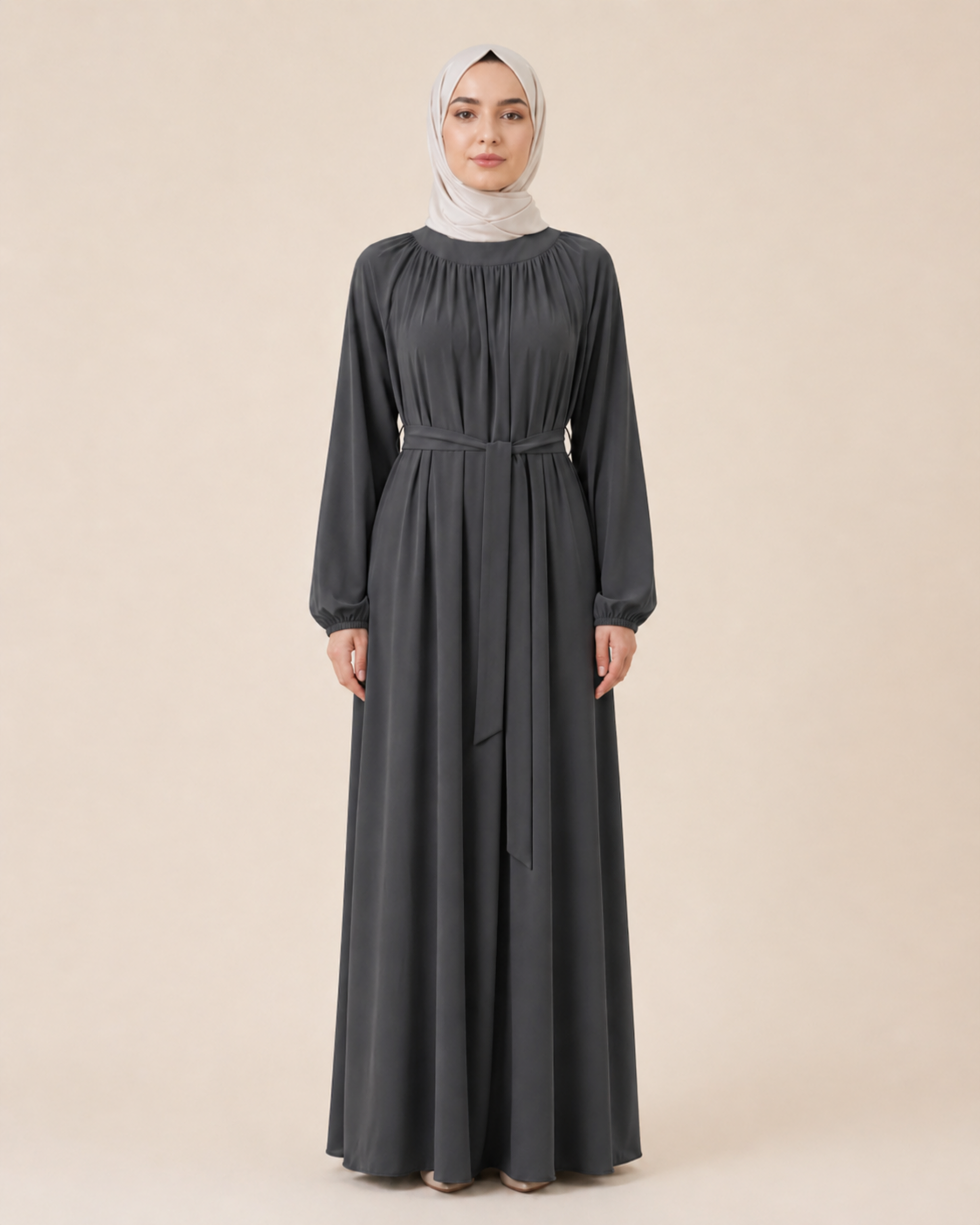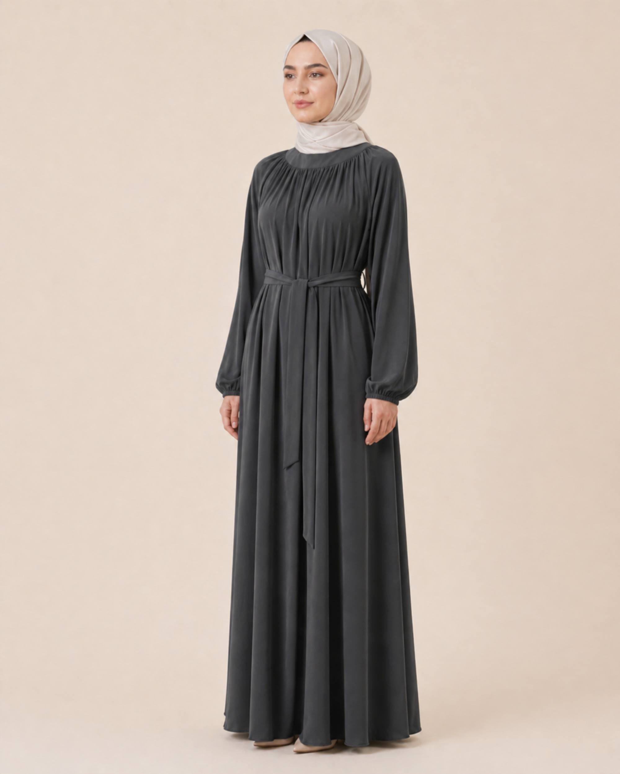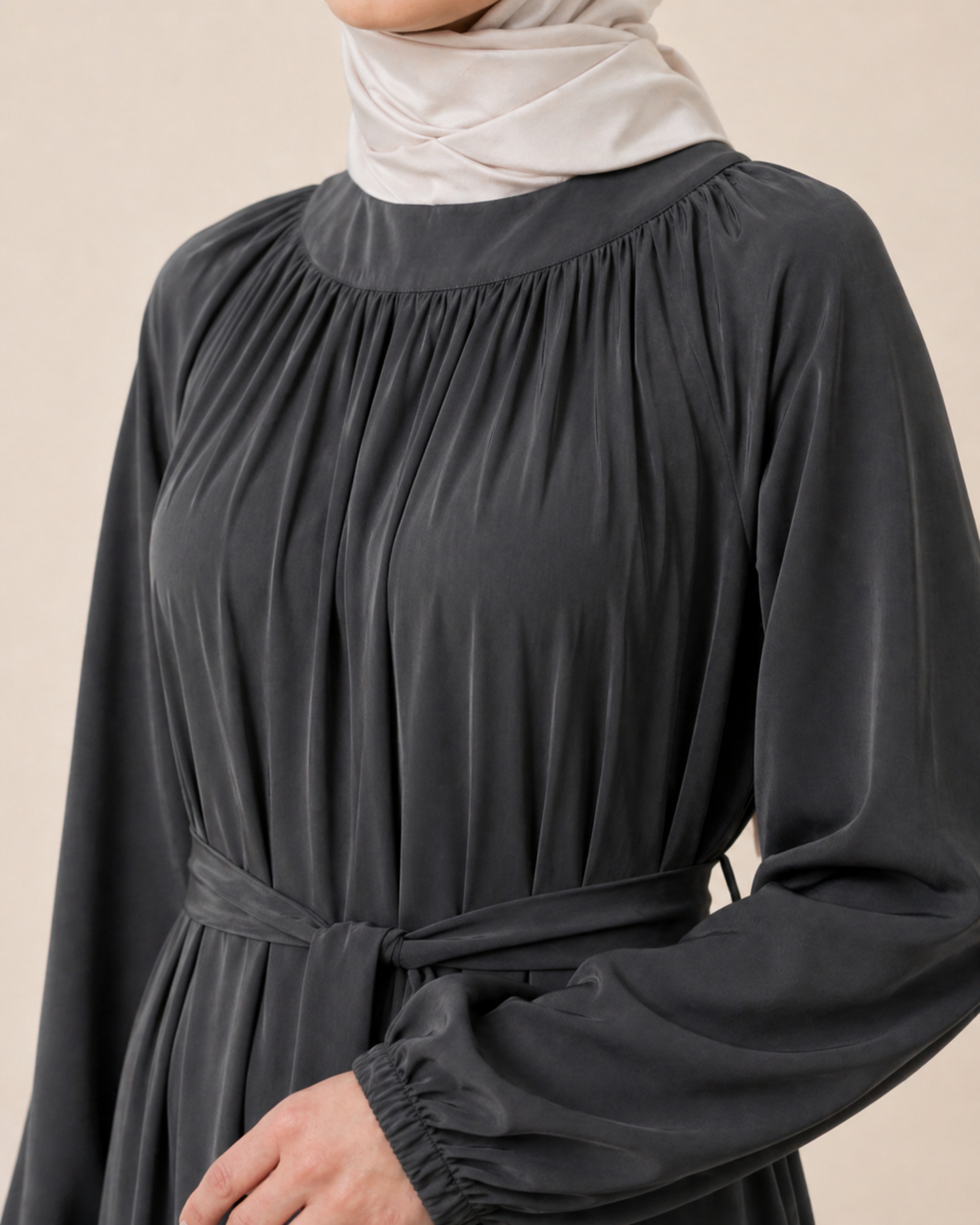 YAKA BÜZGÜLÜ RAHAT KALIP ELBİSE