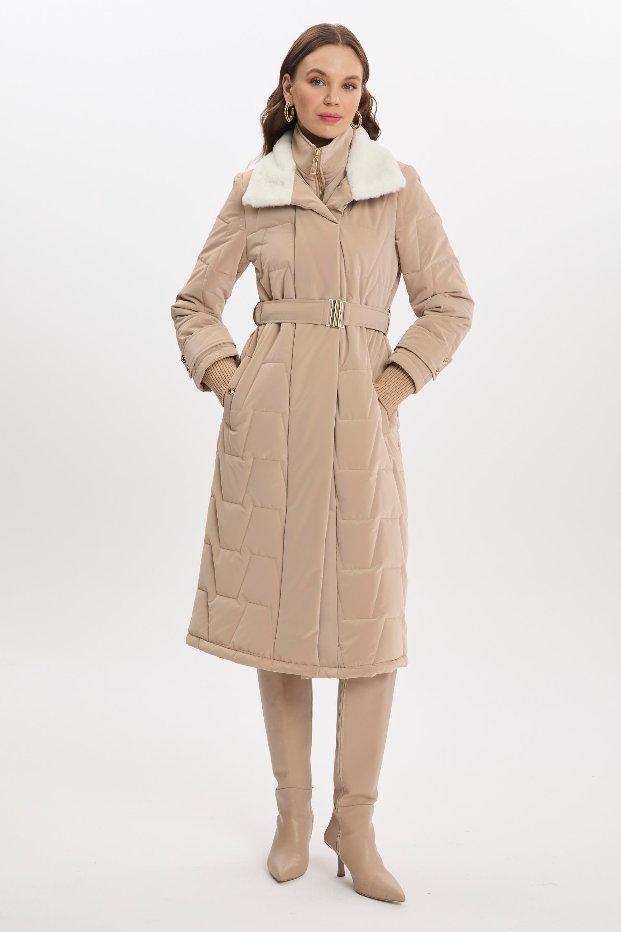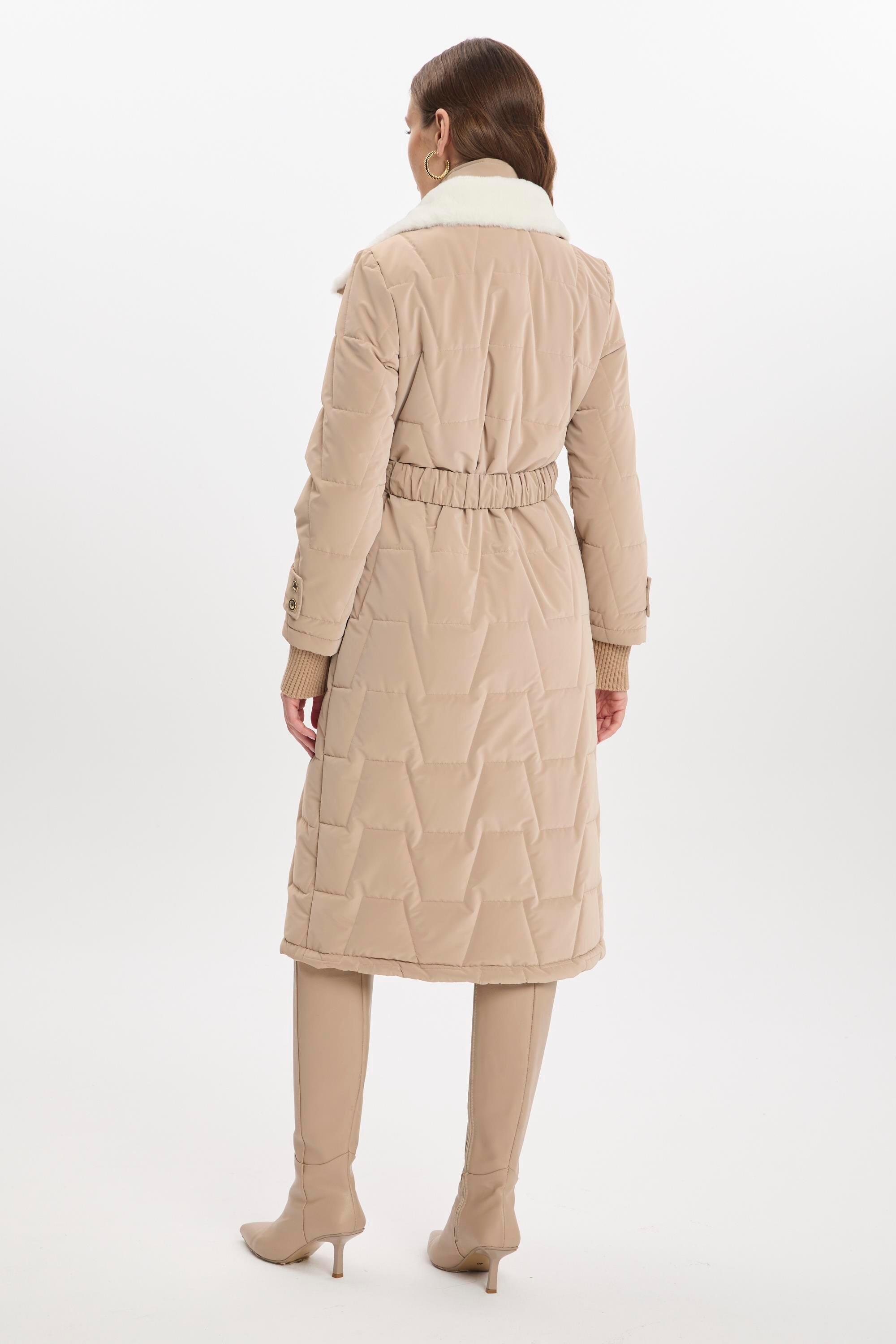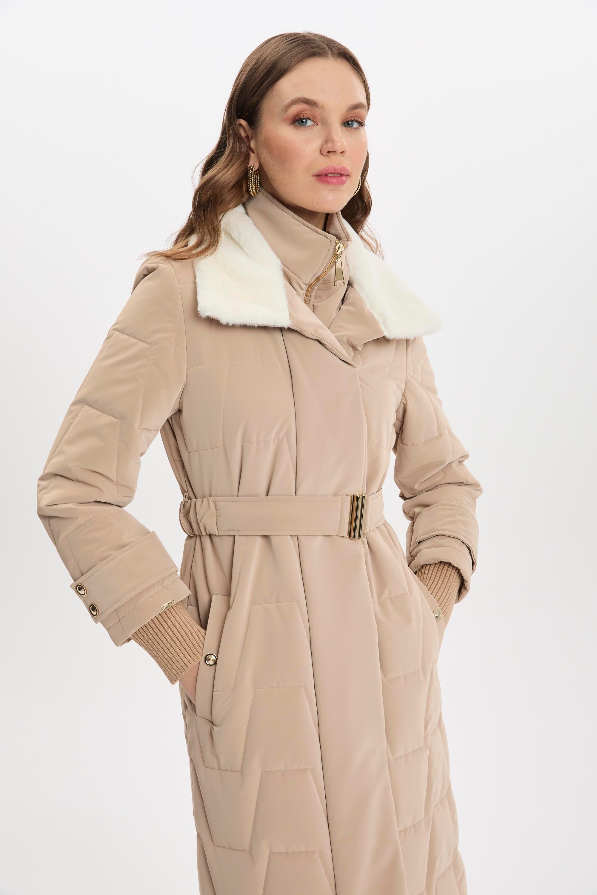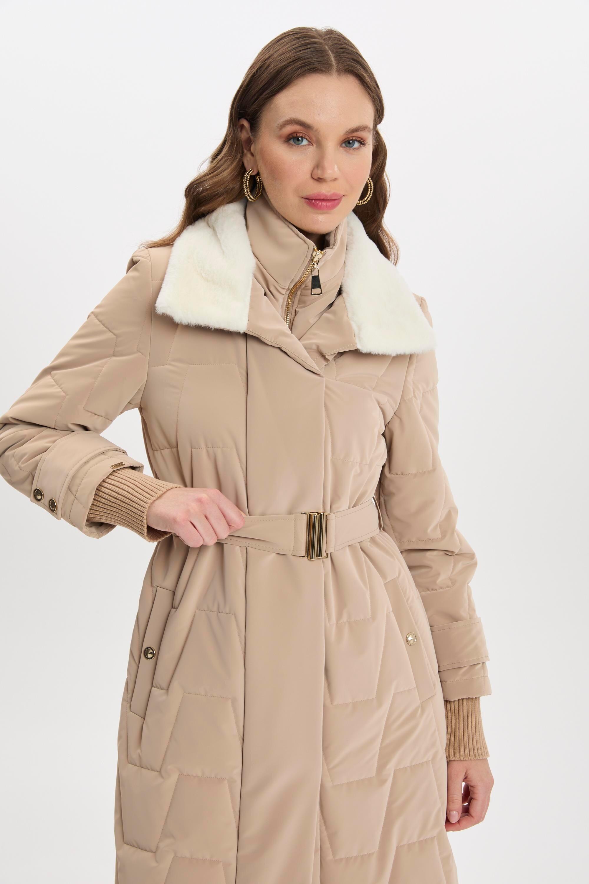 YAKA KÜRK DETAYLI KEMERLİ MONT