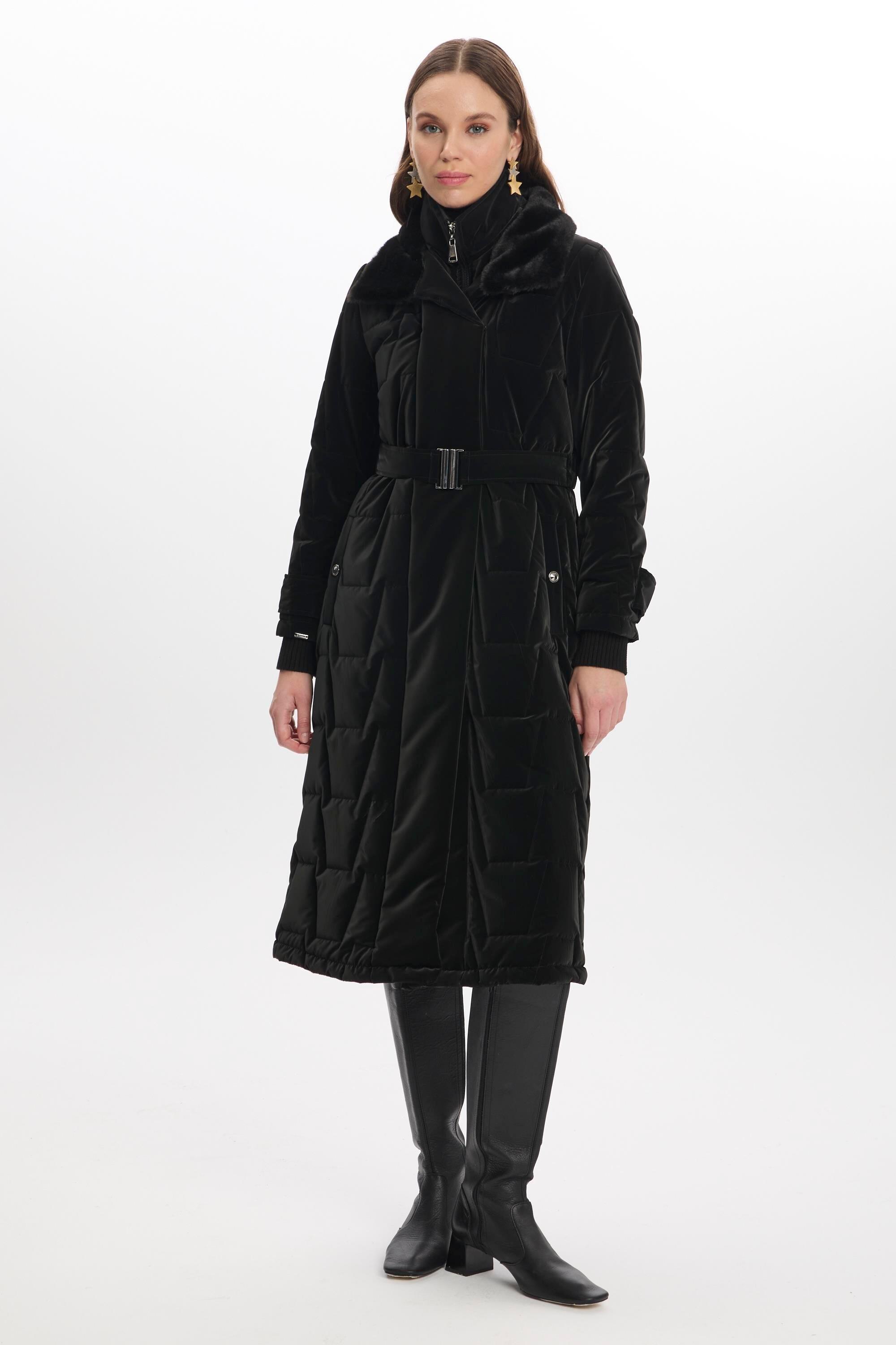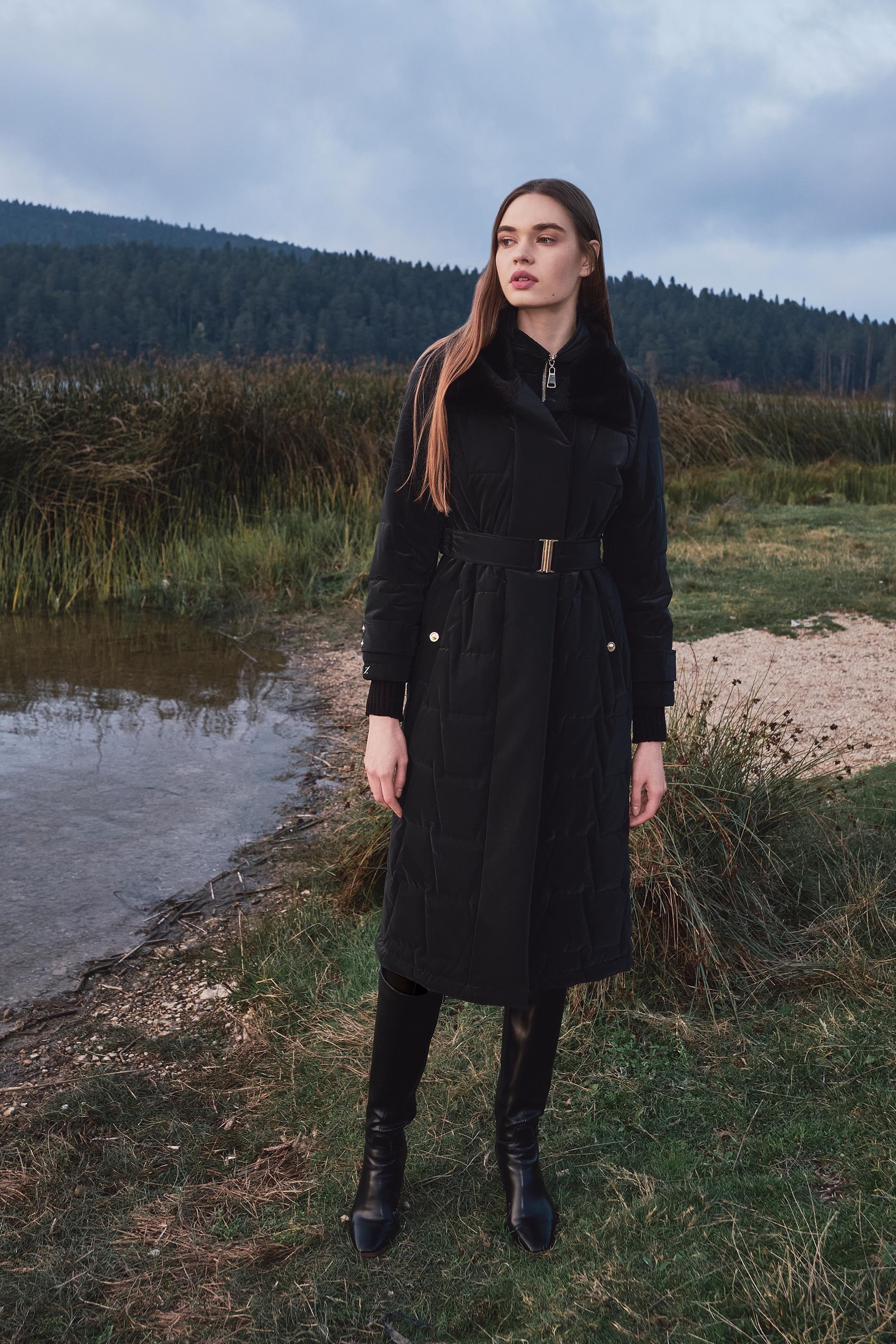 Ürün Detayları:Kürklü yaka, Önden fermuarlı, Tokalı kemer detaylı, Cepli, Uzun kesim, Astarlı