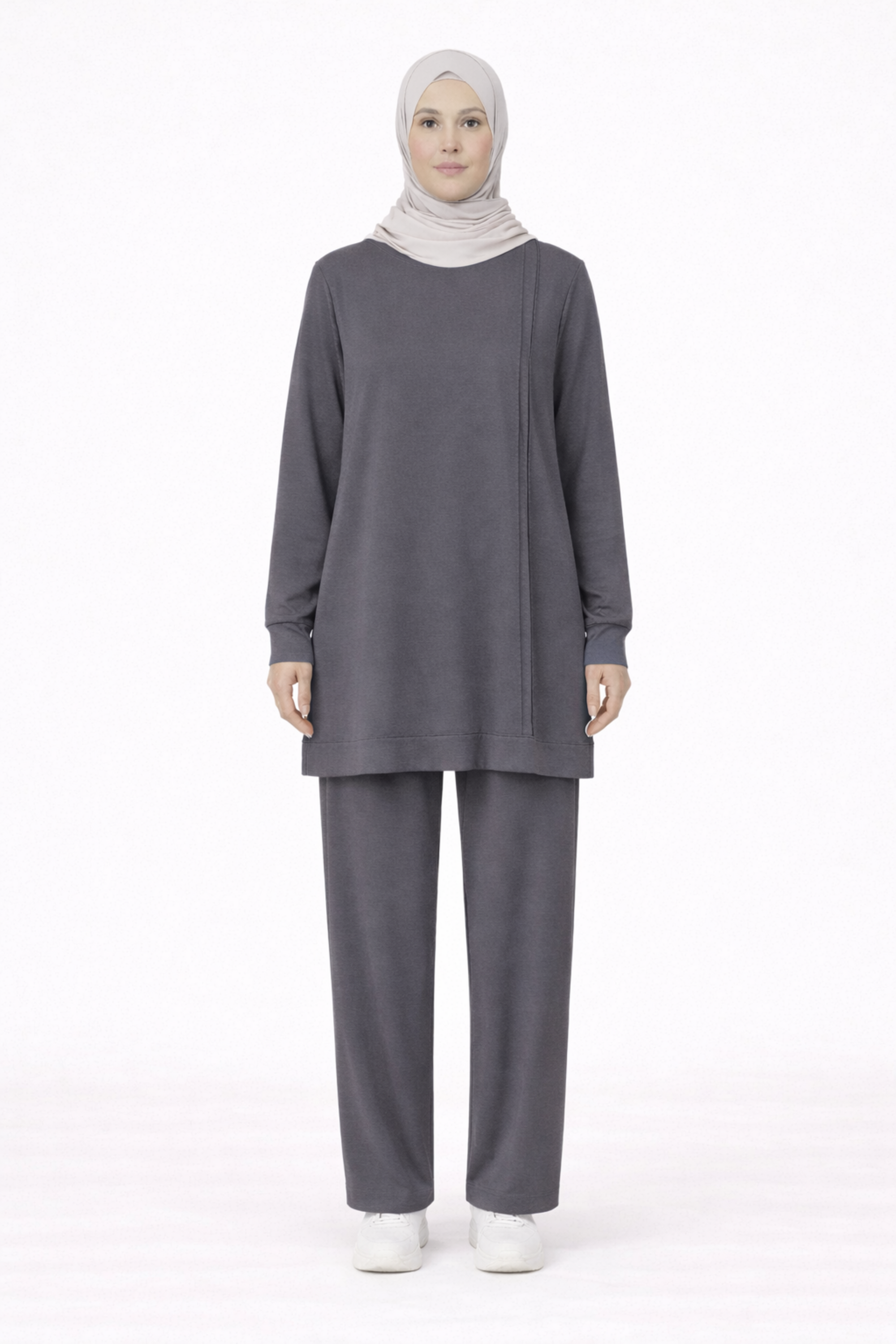 Ürün; üst tunik ve pantolondan oluşmaktadır. Ölçüler elde alınmıştır, üretime bağlı olarak ±1-2 cm farklılık gösterebilir.